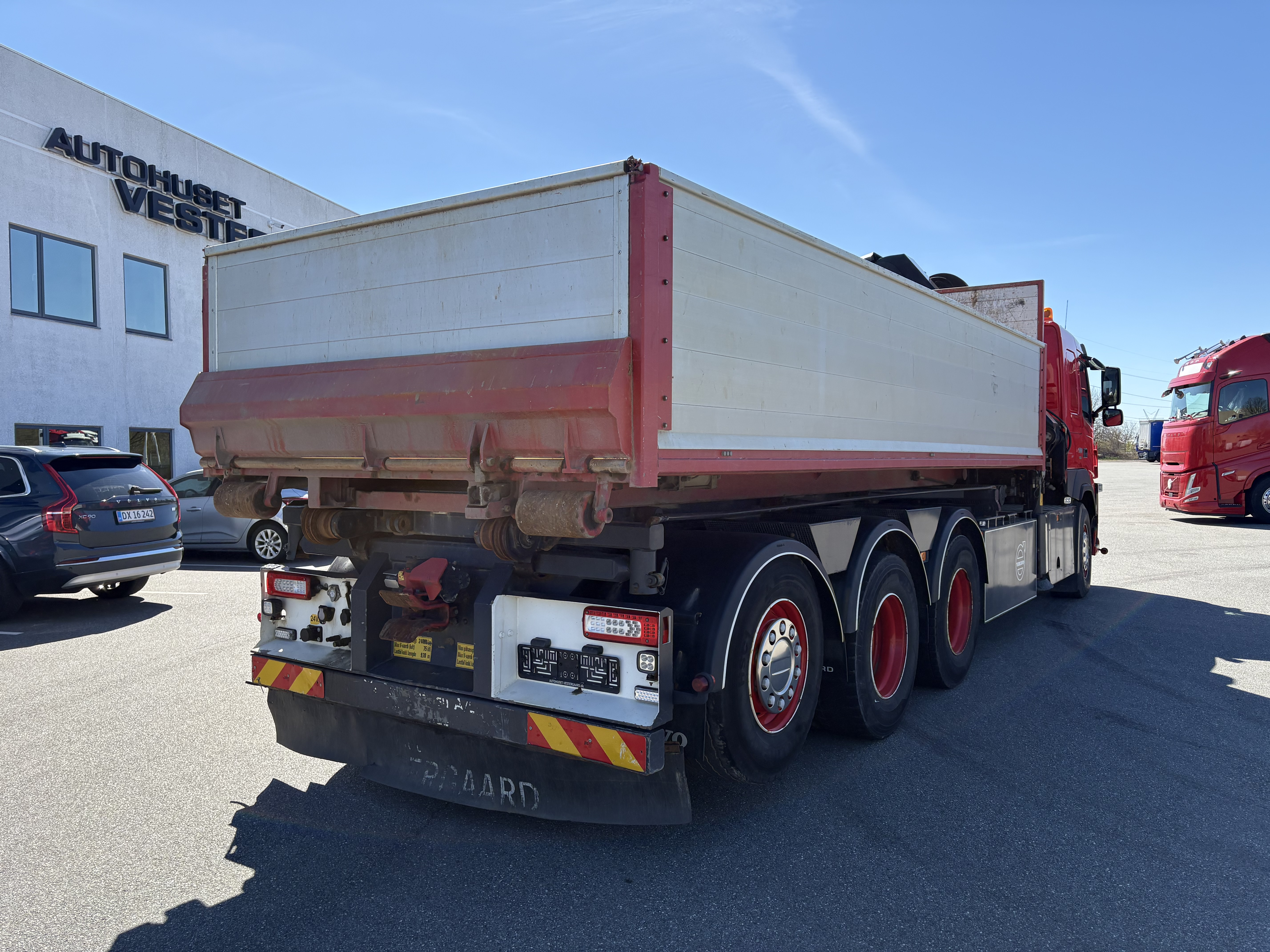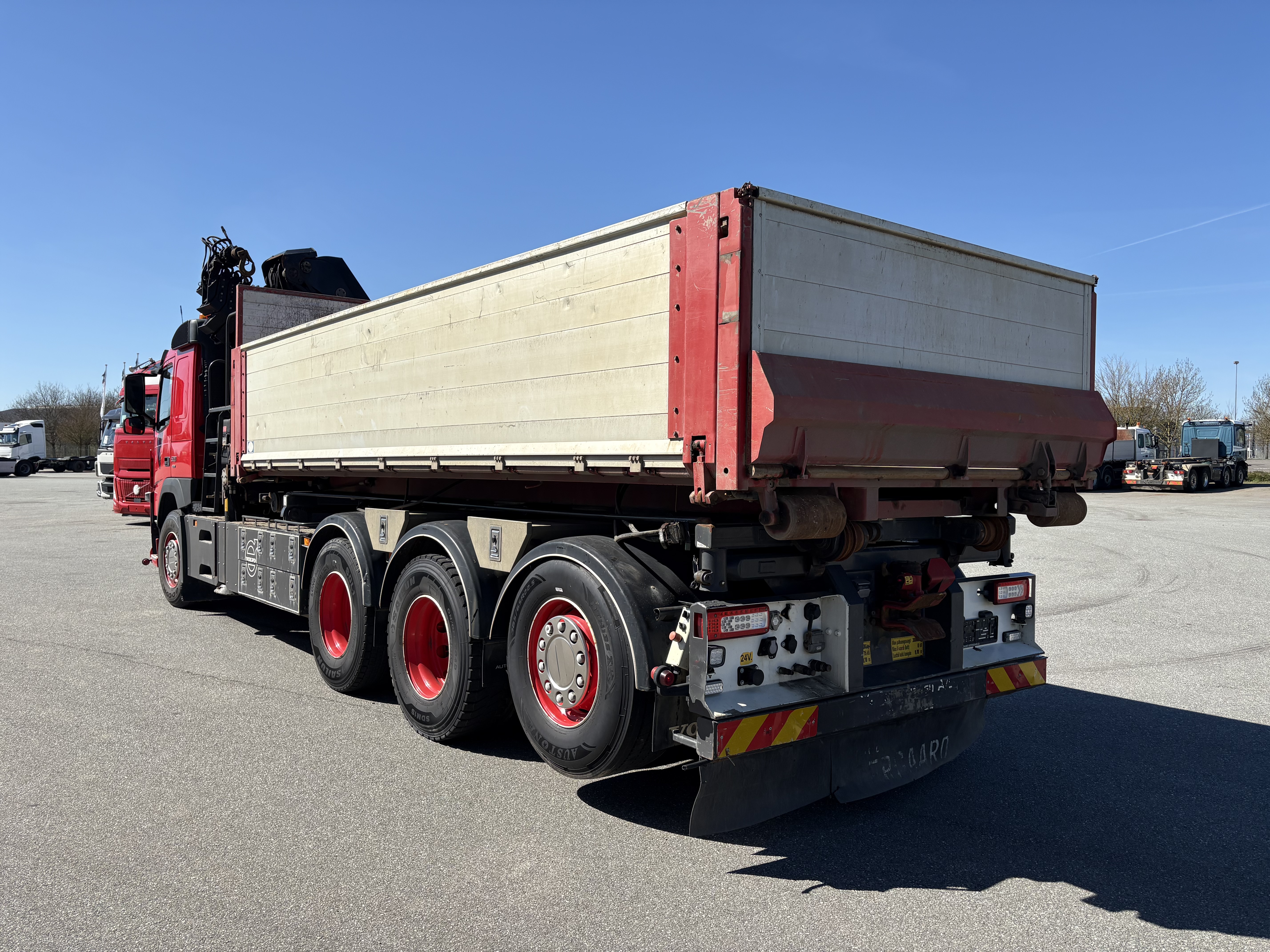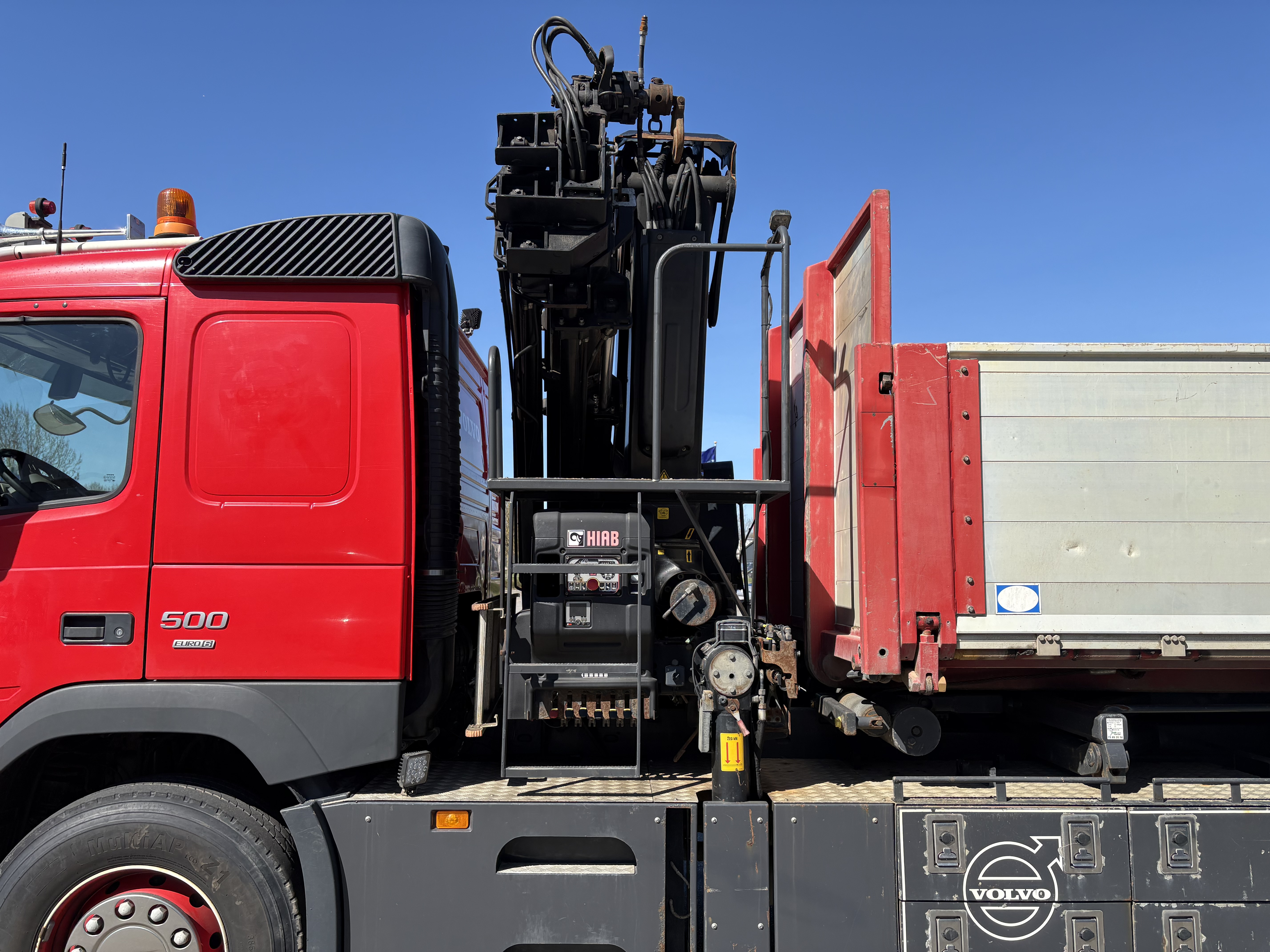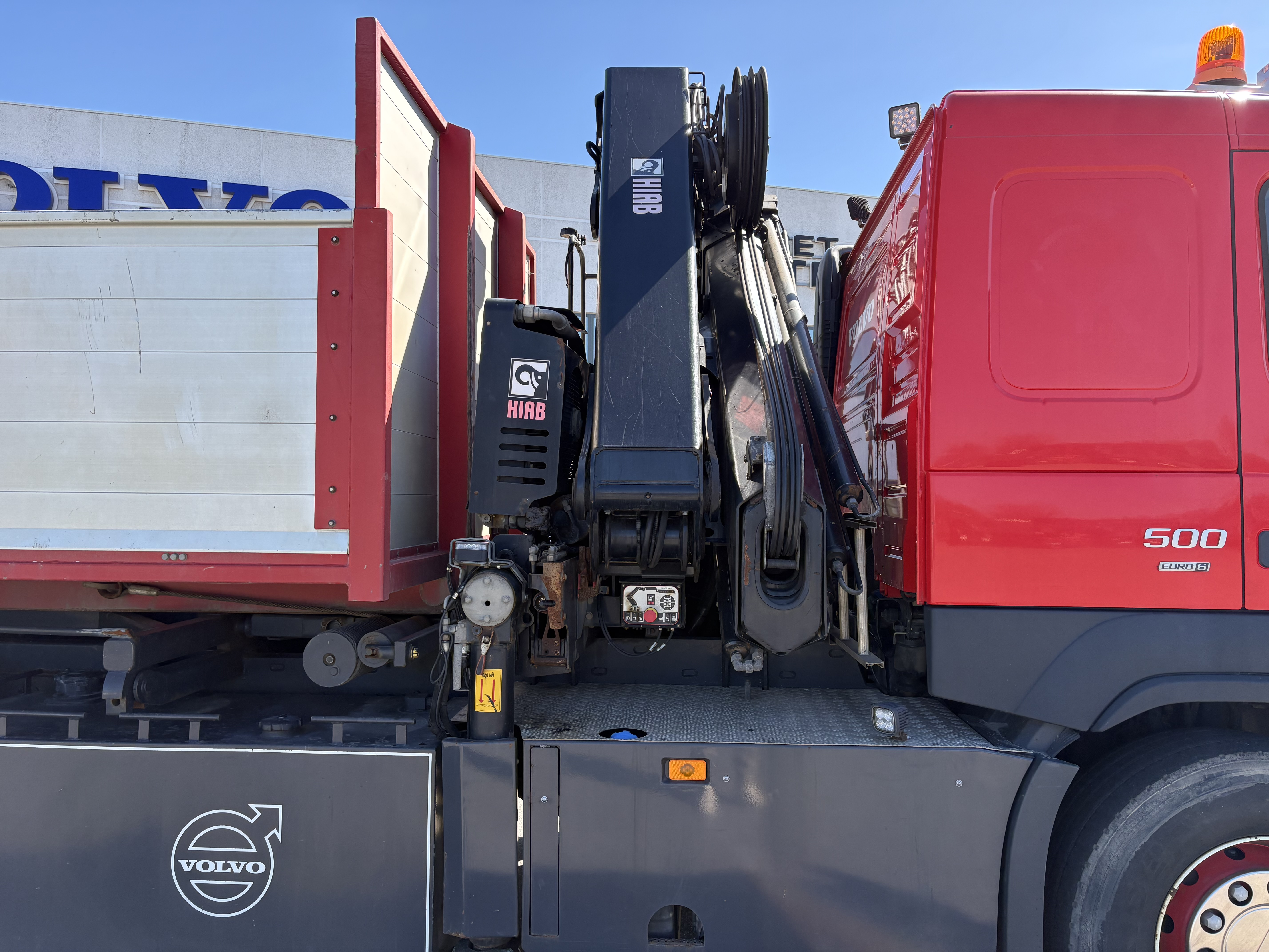 Nysynet Volvo FM500 8x4 tridemtag, fuld luft, i-shift m. crawler gear, Volvo Dynamic Steering, 9 tons foraksel, sawo hejs, HIAB X-Hipro 302 EP-5 kran, kærretræk. Km. 297.000 - incl. ældre tilhørende pendellad
