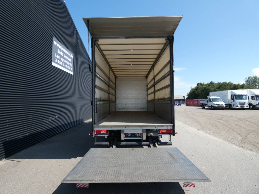 Meget velkørende lastbil med gardinsider og lift.