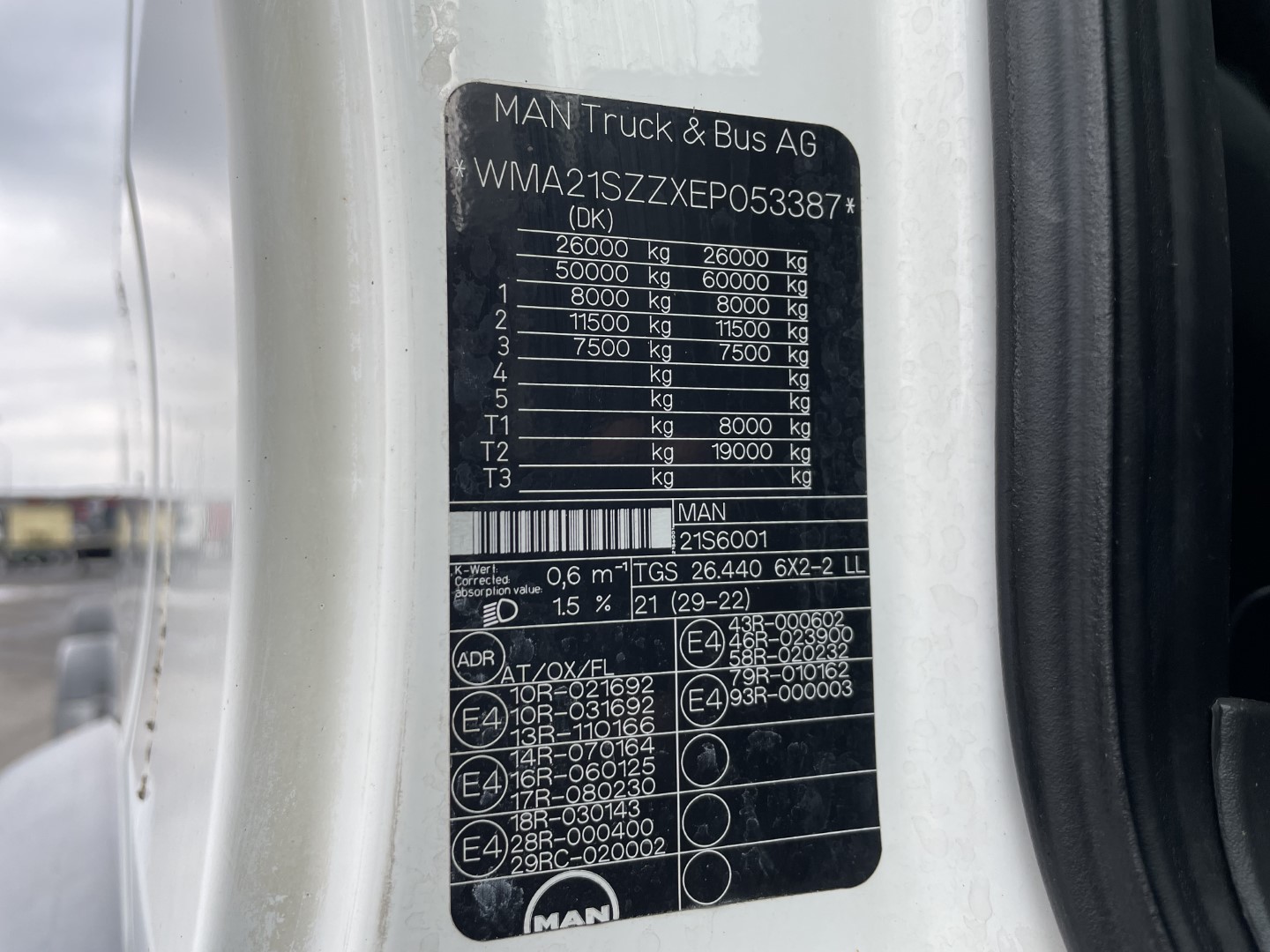 Totalvægt: 26000 kg.