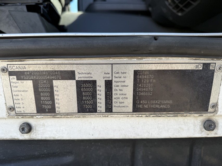 Scania G450 LB 8x2*6 MNB ADR Chassis / Retarder / Euro 6