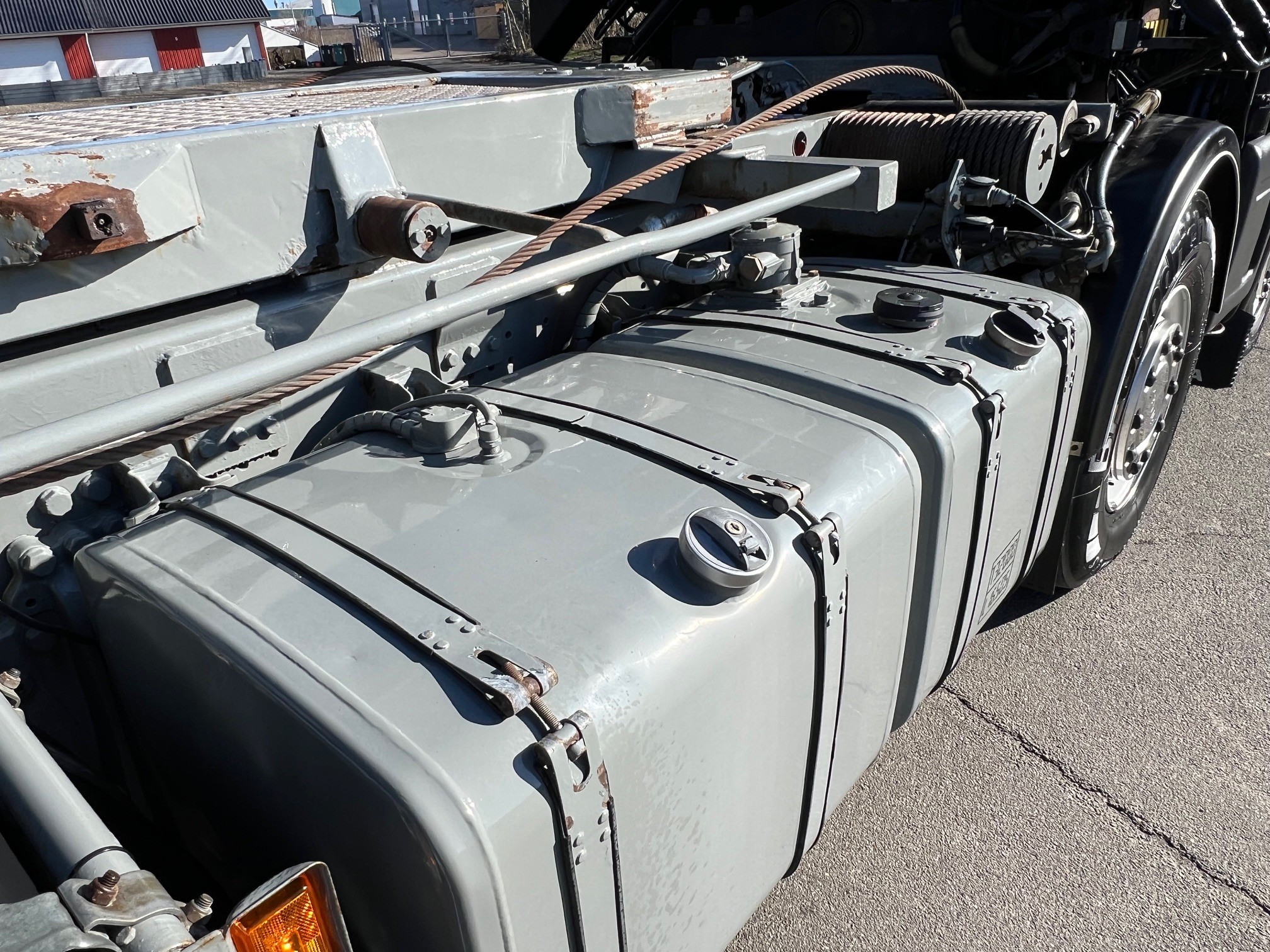 8X2*6 med drejbar løftebogie, med frontmonteret aftagelig Hiab XS 166-4 kran årg 2013 med 4 hydr. udskud, dobbelt olie ført ud på slangerulle, tilhørende rotator, med radiostyring. 3-vejs Sawo hejselad, med variabel pumpe med LS styring, fuld luft, dobbelt skabe, VBG kærretræk med retur olie ført ud, aut. gear, lædersæder, kaffemaskine, køleskab, hvile køje, står pæn i maling både kabine og chassis - skal ses.