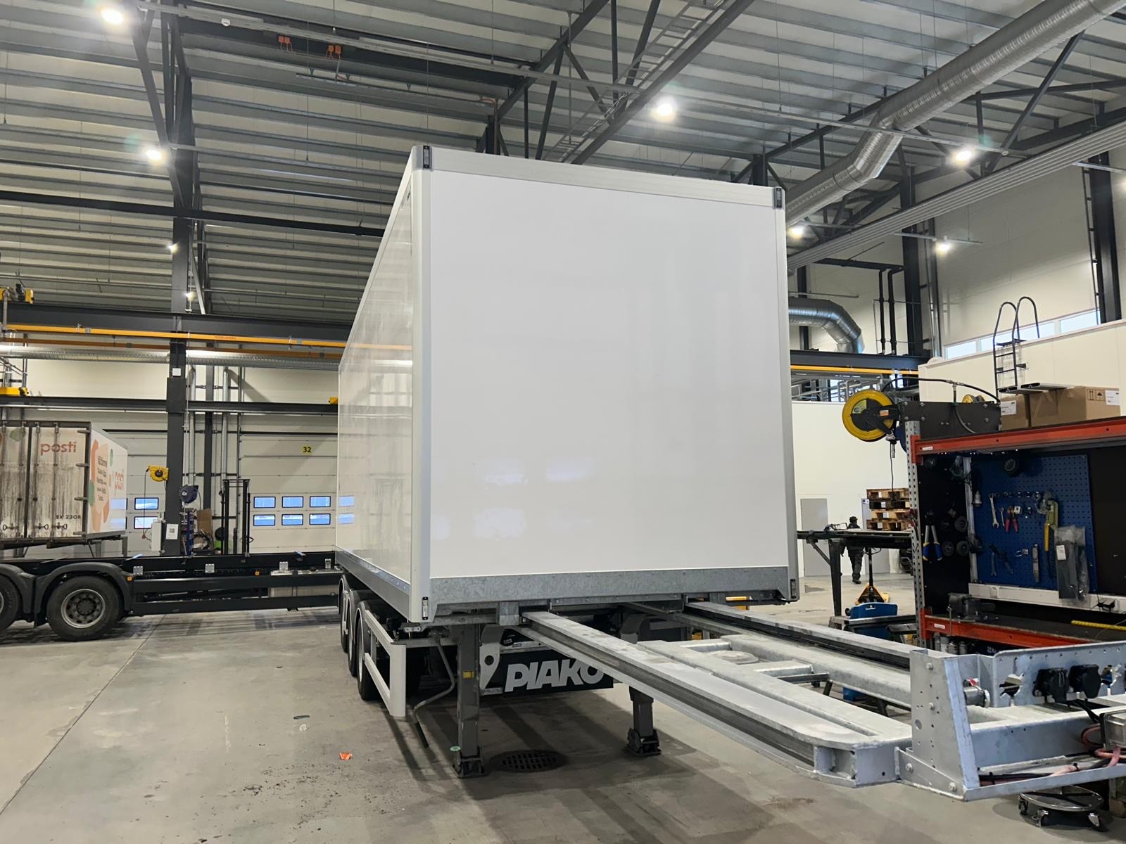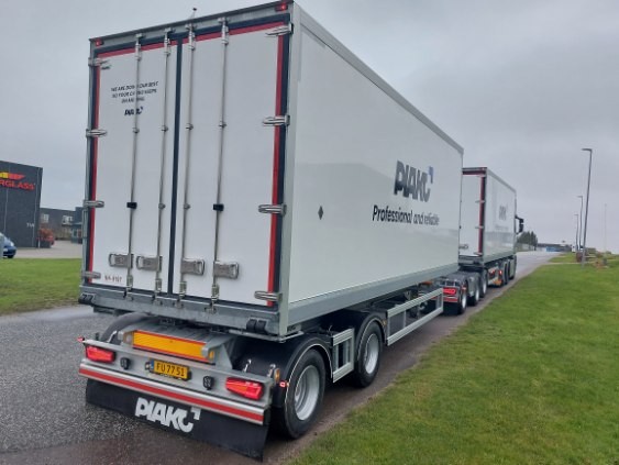 Fabriksny Kvalitets - linktrailer fra Piako OY i Finland. Fuld Sideåbning og dobbeltstock. Hydraulisk ud- og indtræk. Wabco Ecas Optilevel samt 2 kørestillinger. Snekædeskab og værktøjsskab samt skab til el / Hydraulik og betjening.