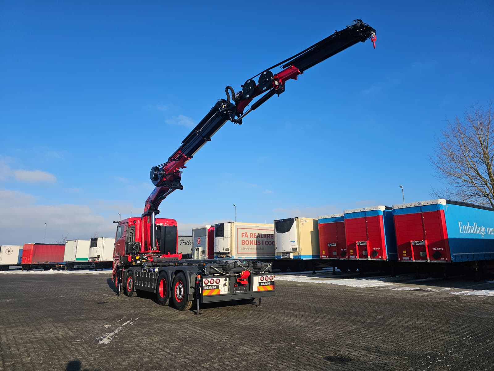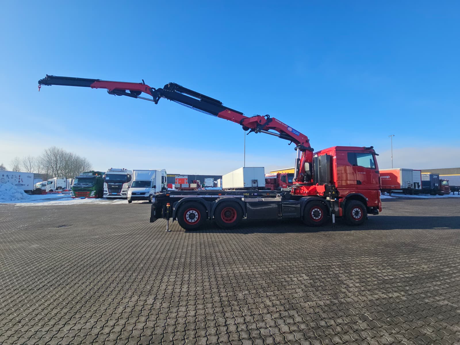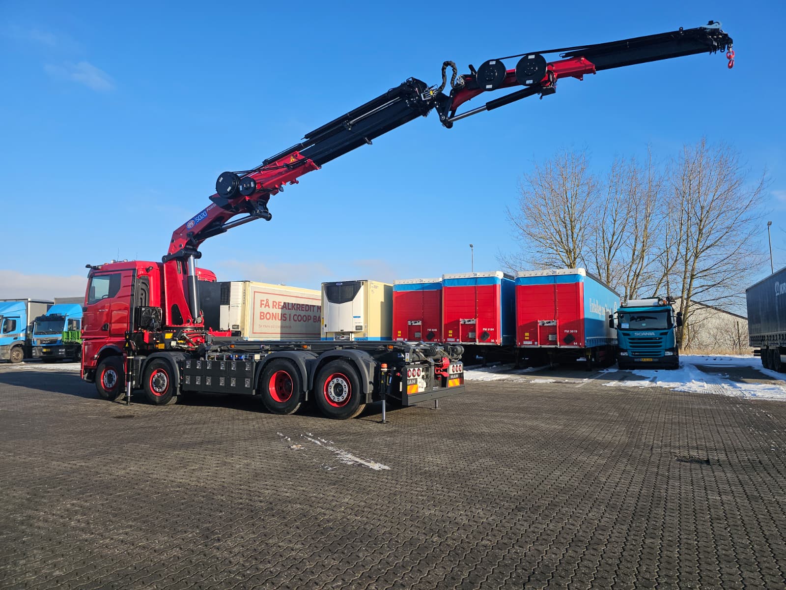 * HMF 5020K 5 kran med fly-jeep dobbelt slangeruller på kran og fly-jeep monteret med dobbelt ventilblok og 2 pumper for hurtig arbejdsgang