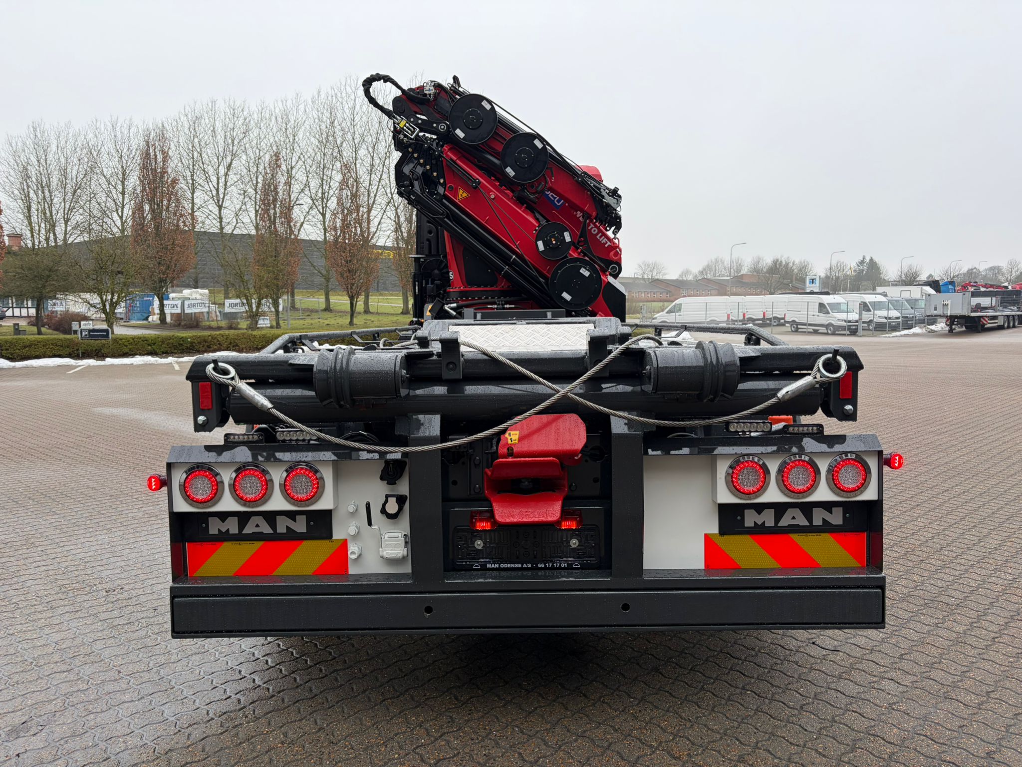 * Opbygget med 3 vejs HMF hejs til 6,25-6,50 meter lad frontstop,2 typer stop samt multilåse bag, olie til pendel side samt luftbagsmæk, olie lys og luft for påhængsvogn/kærre med VBG træk