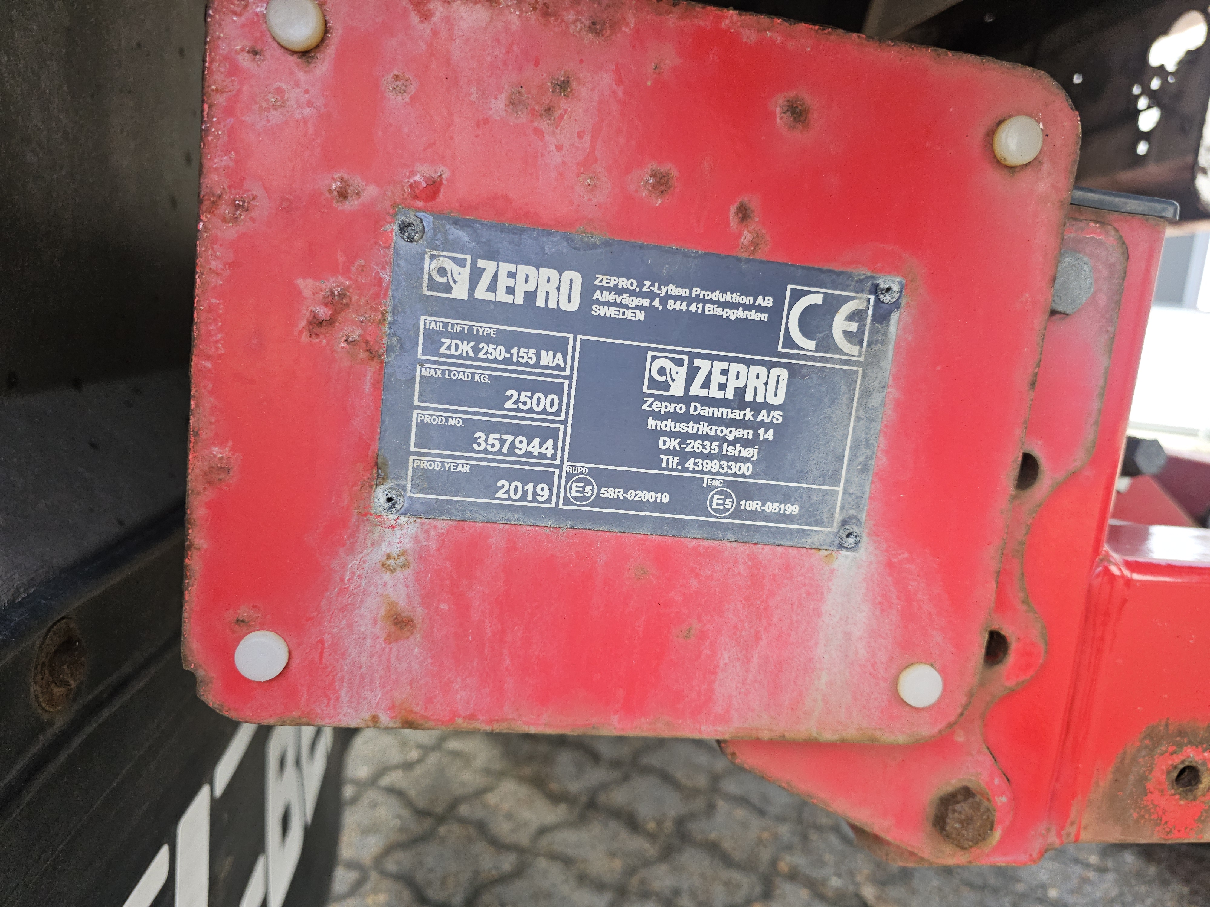* 2500 kg. Zepro lift med stålplade 2000 mm. Indvendig liftbetjening samt fjernbetjening