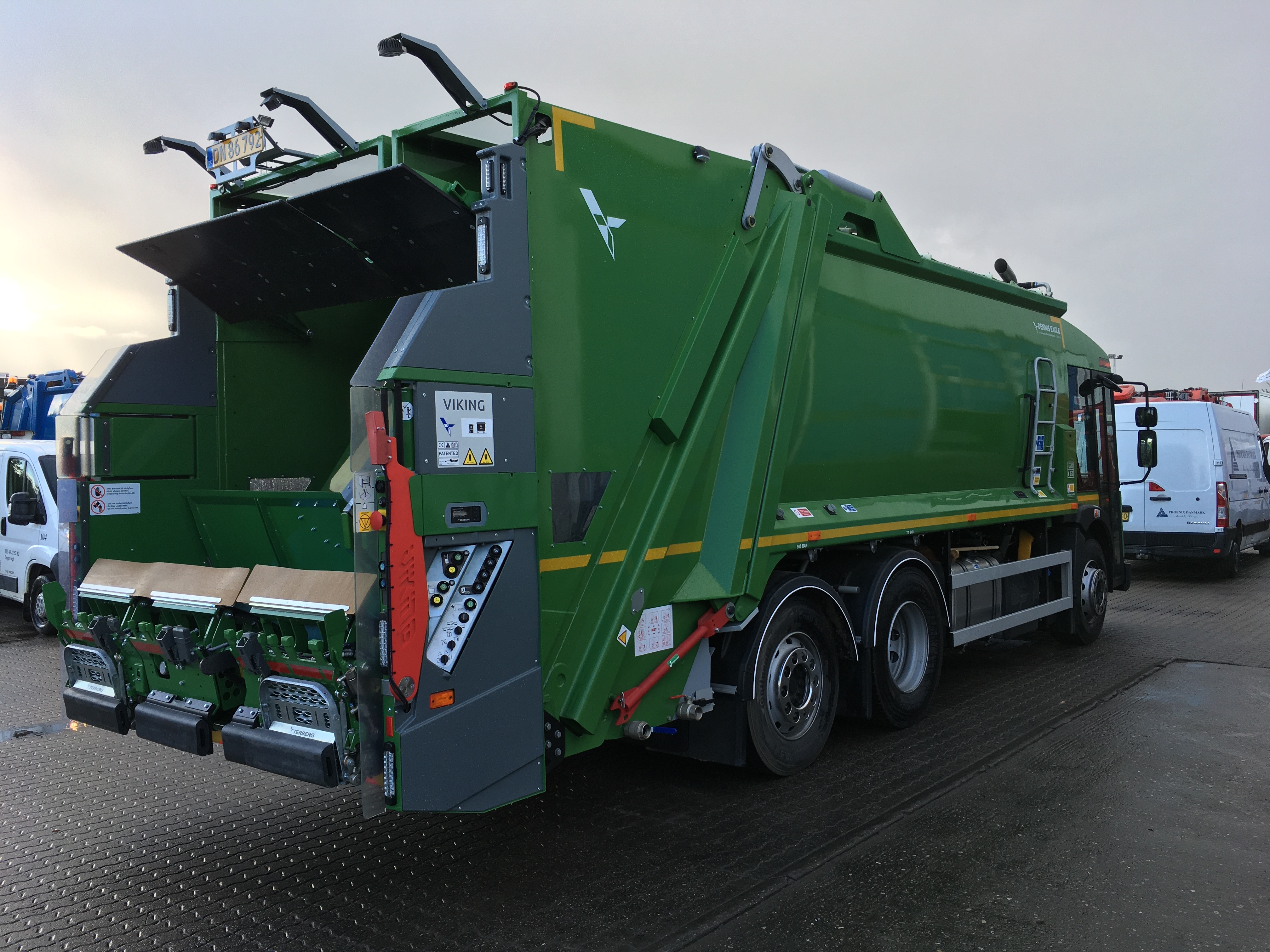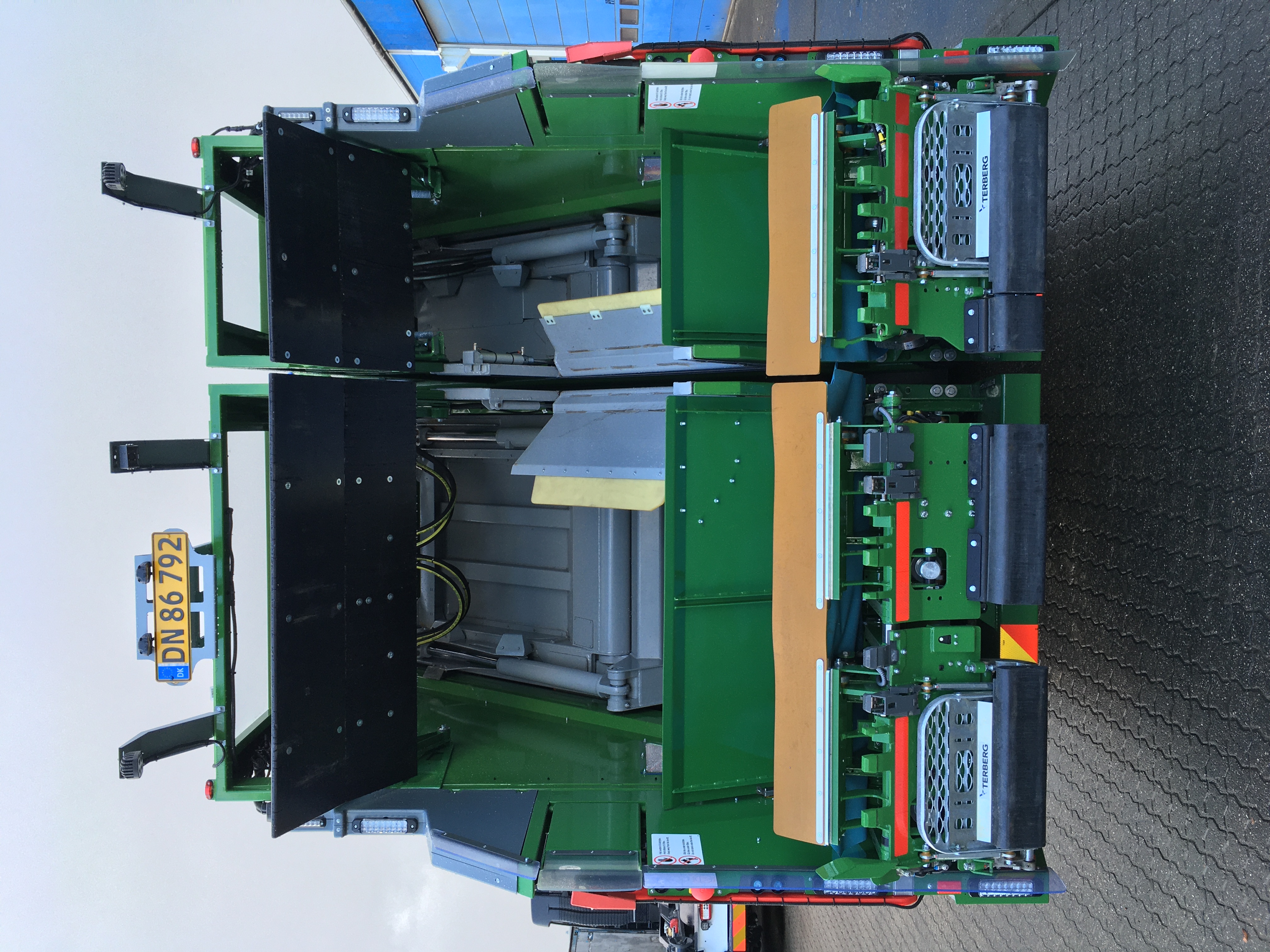 Opbygningen er et to-delt renovationsaggregat med fuldautomatisk Terberg lift.