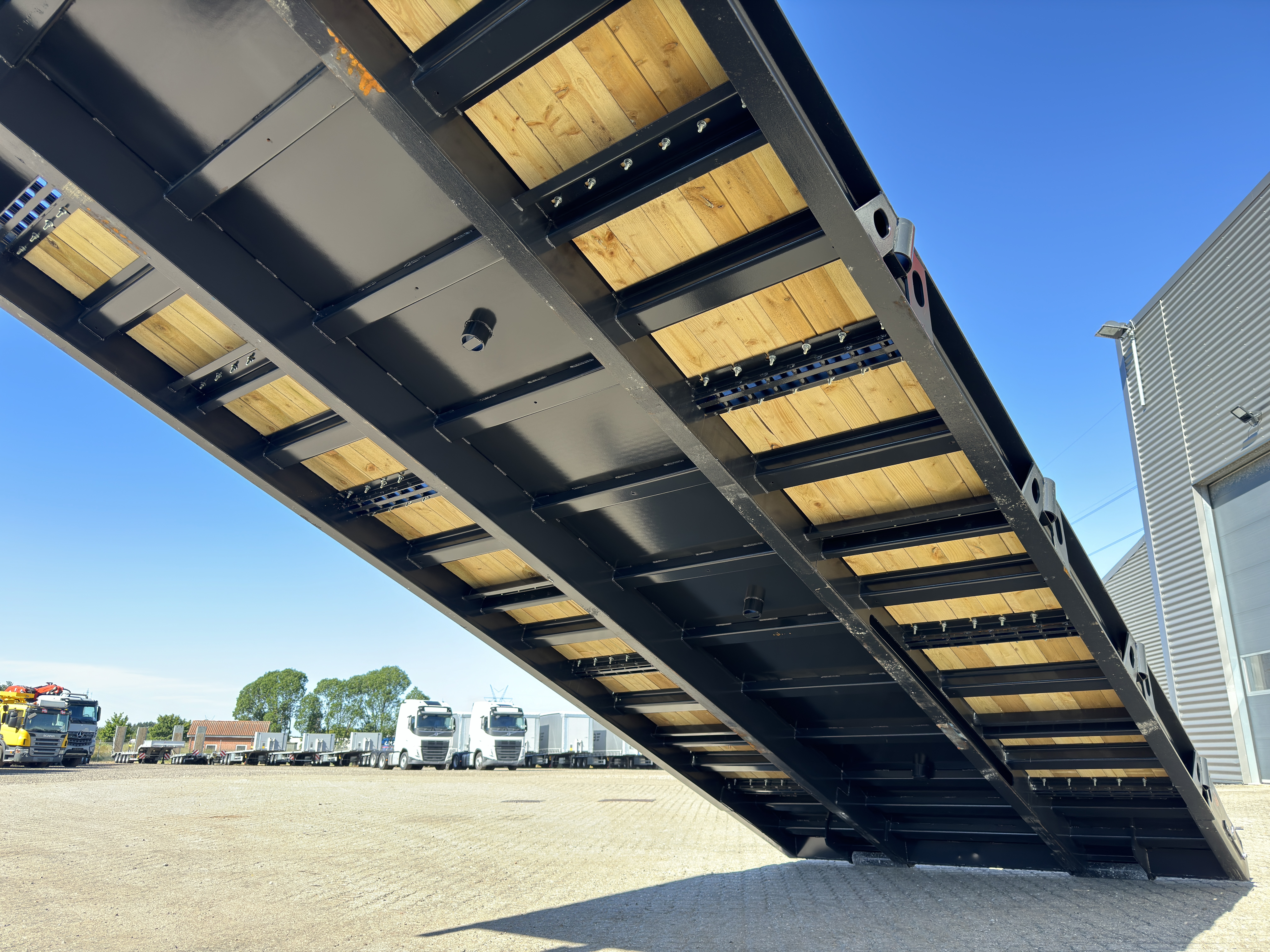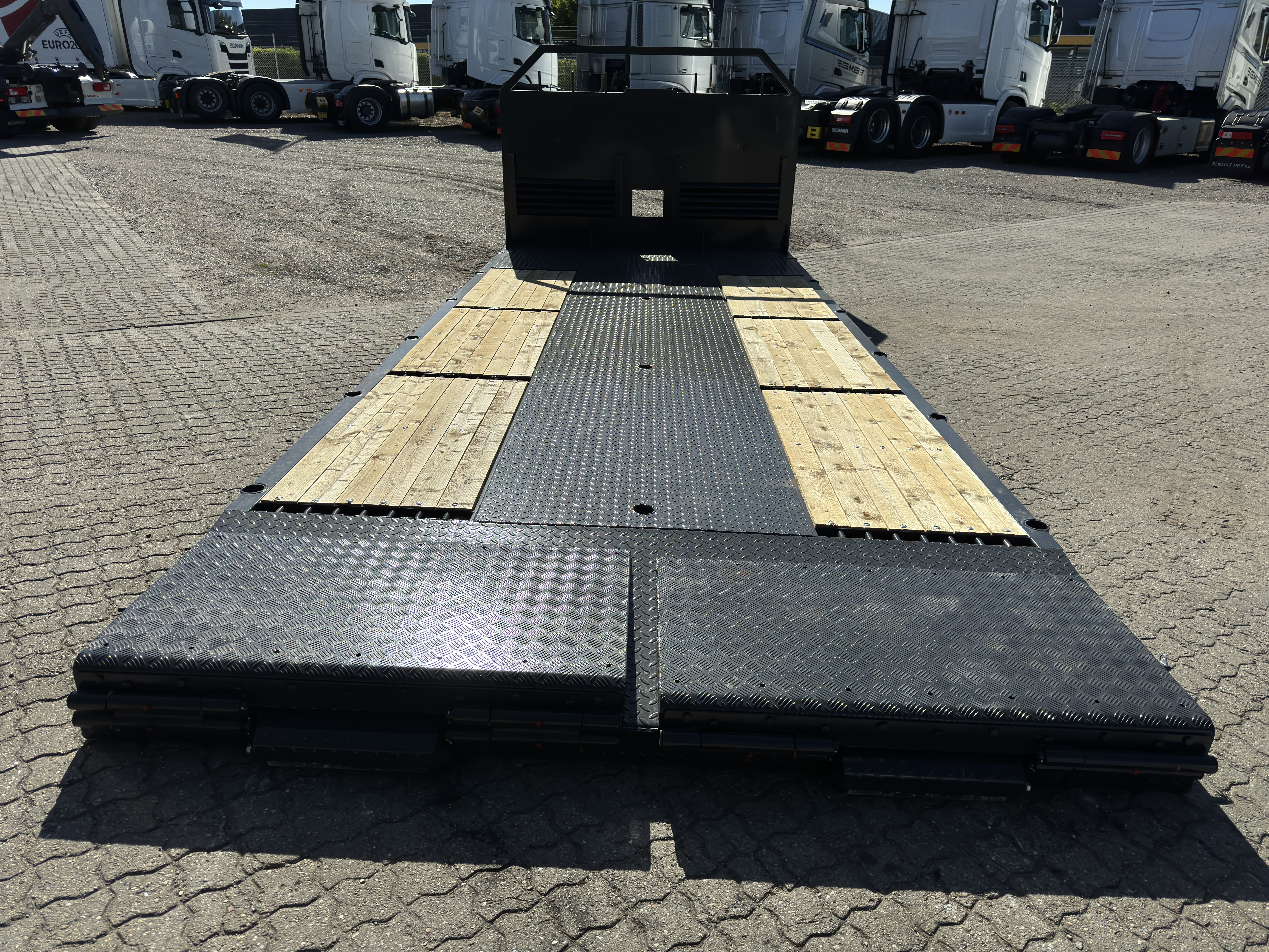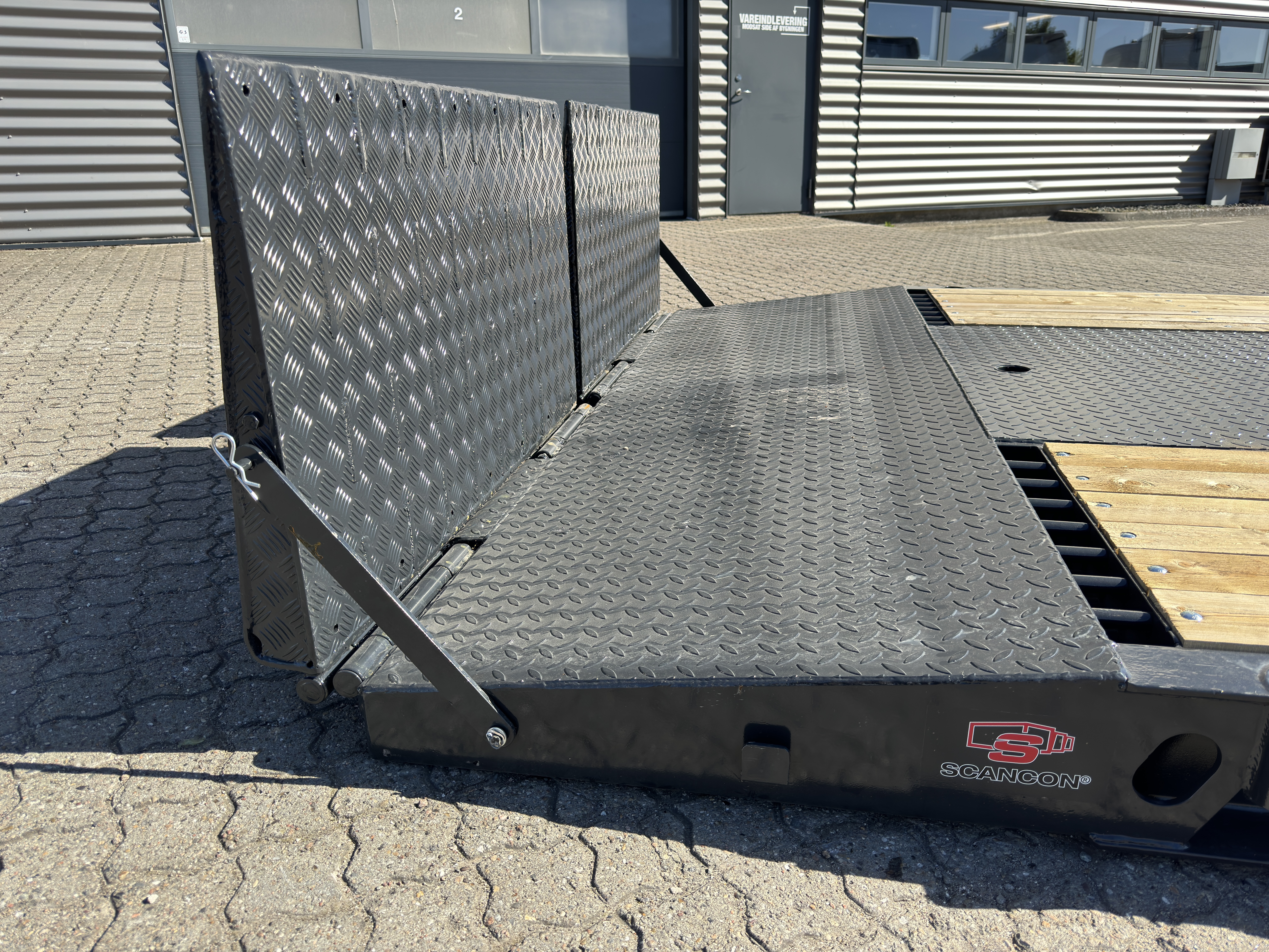 Bemærk lav opkørselsvirkel på kun ca. 7 grader, når ramperne er slået ned + et gennemgående fladt lad, når de er slået op.