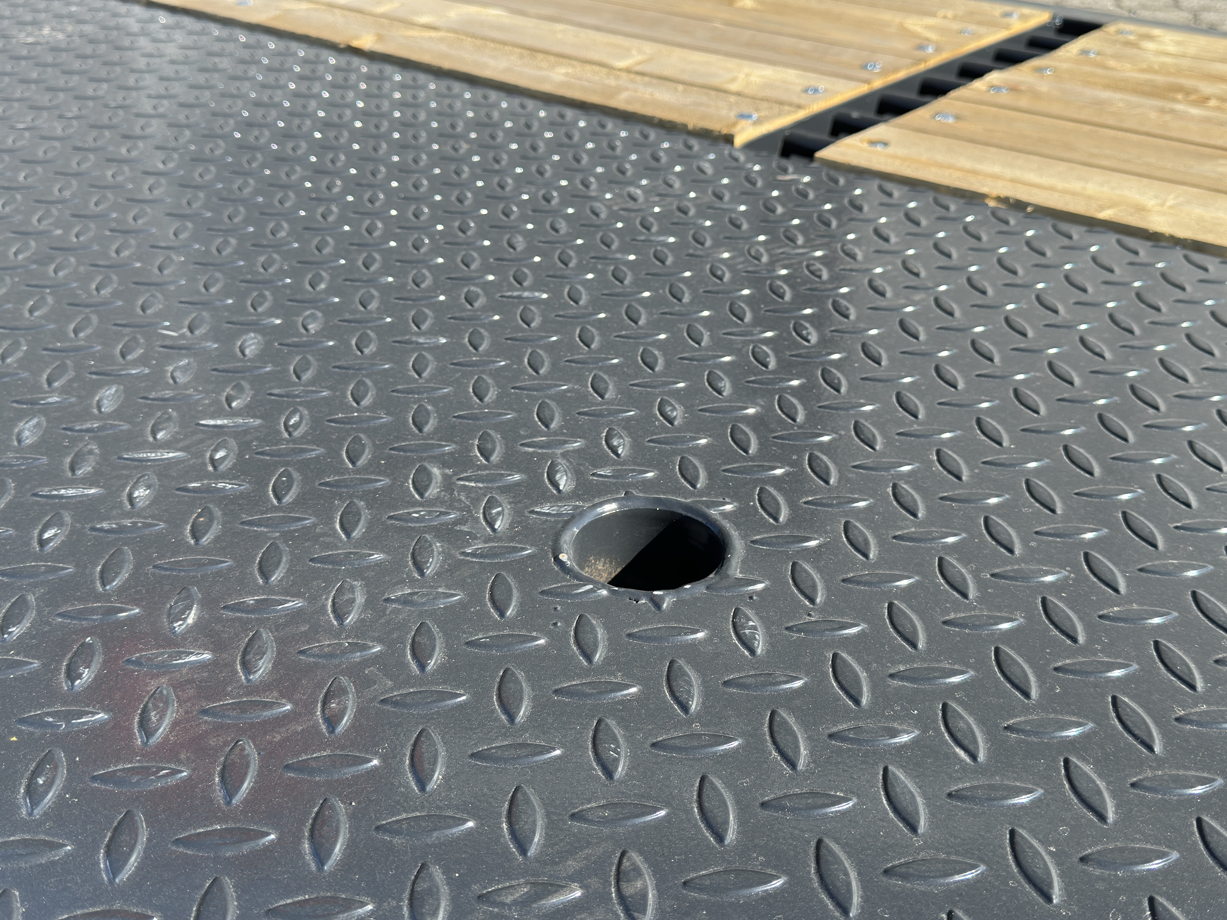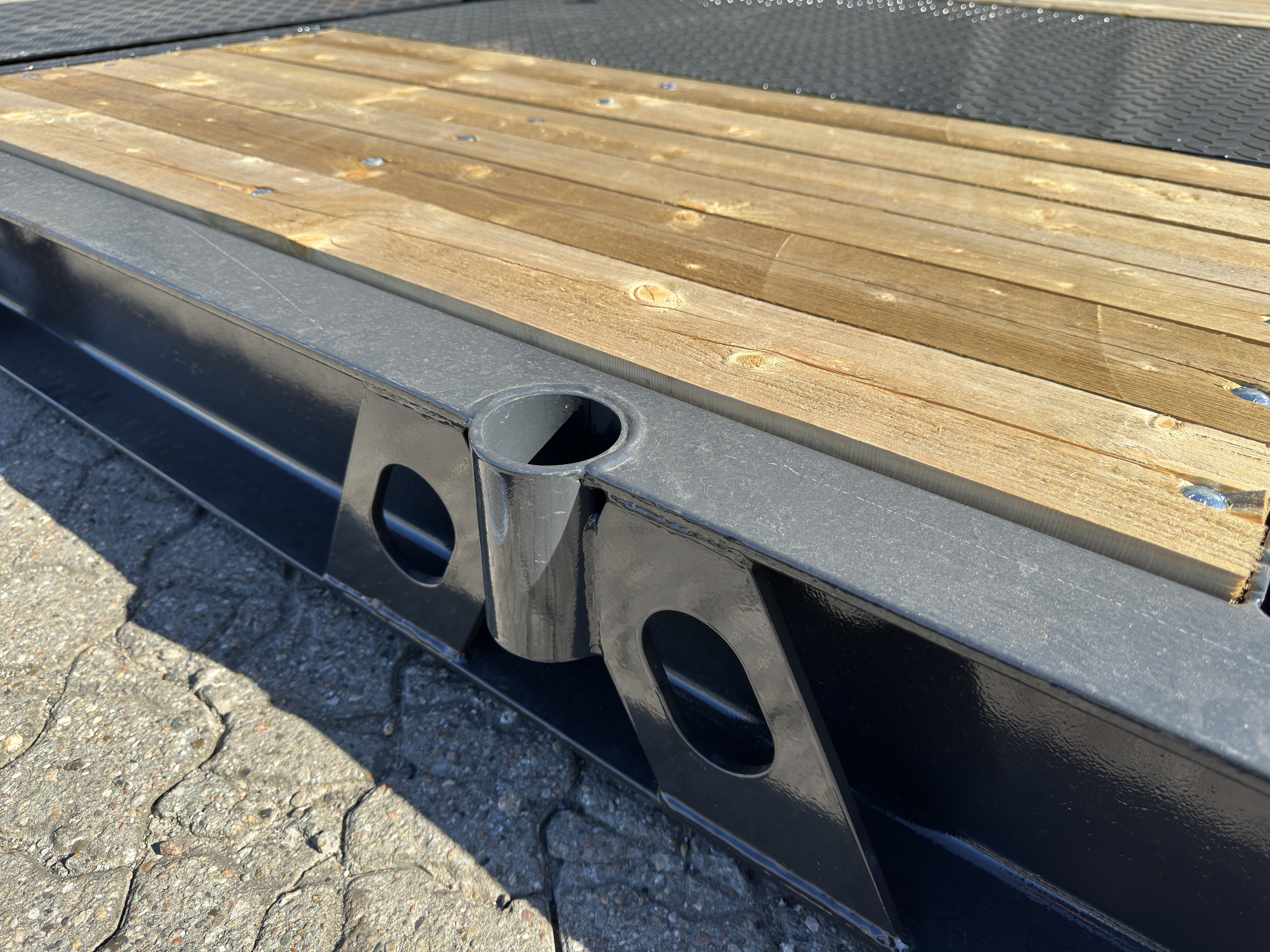 - 16 stk. runde stokkehuller langs sider + midt