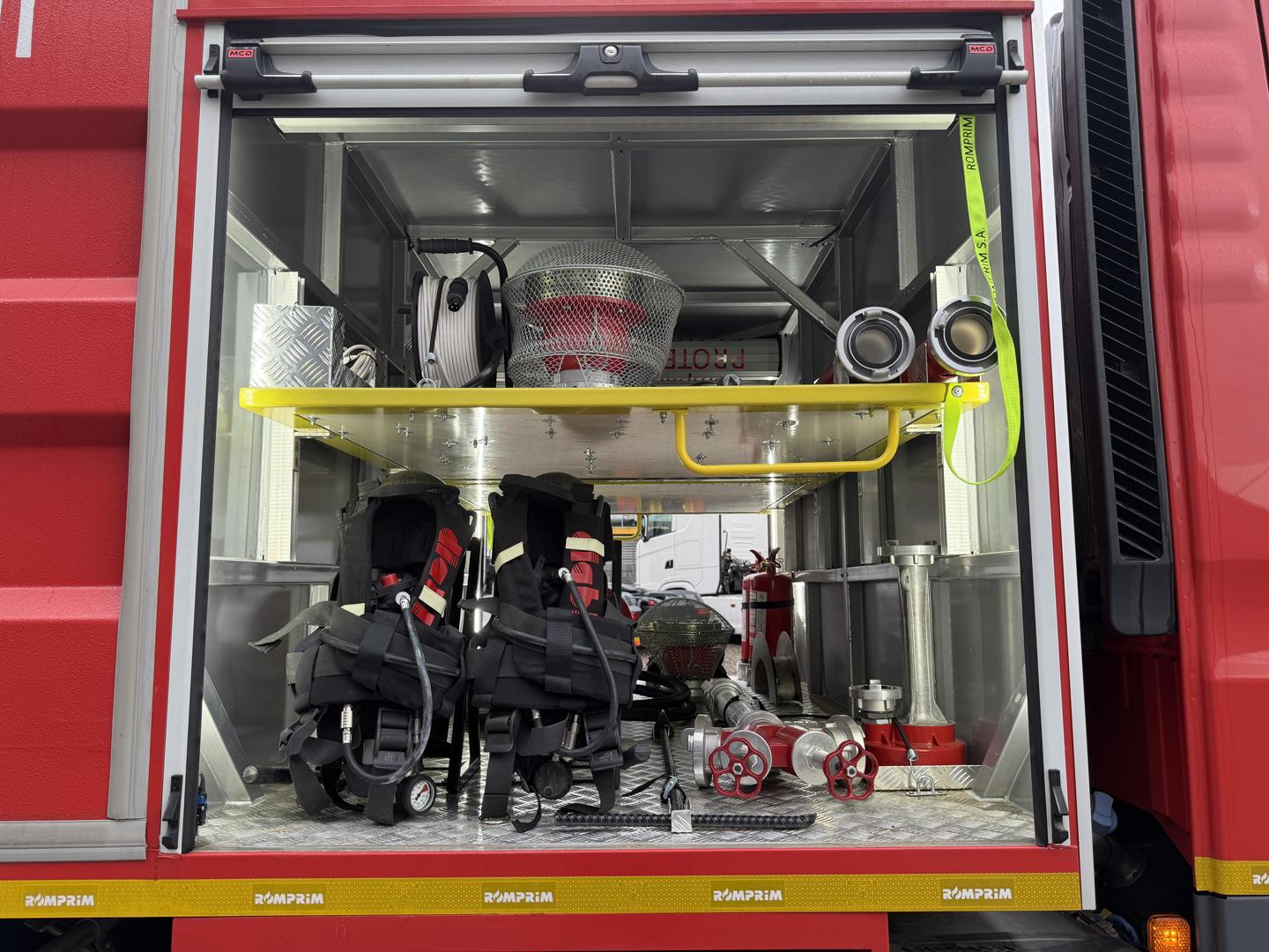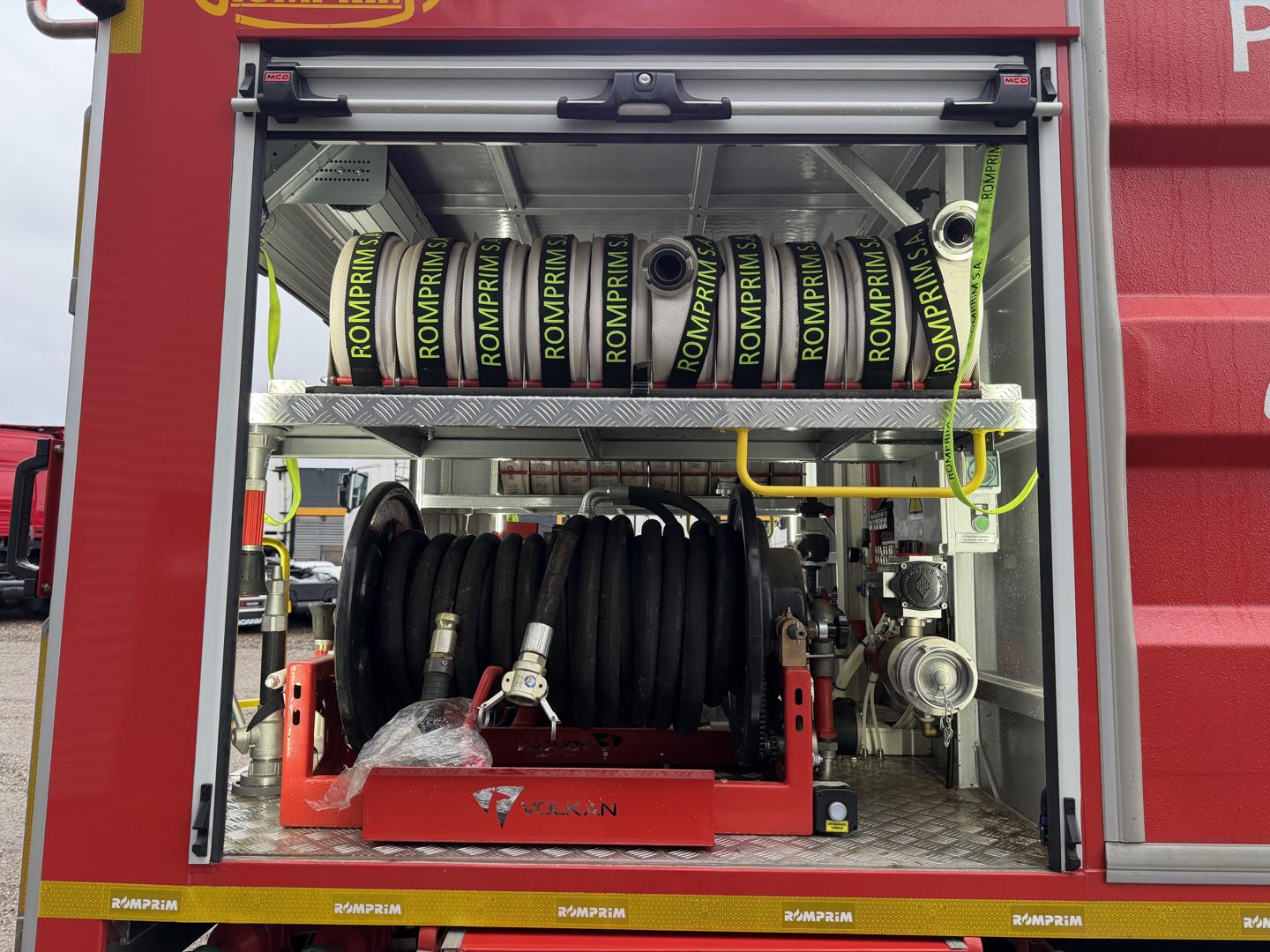 Brandbilen leveres fuldt udstyret med alt nødvendigt materiel, herunder slanger, pumper, generator, værktøj, iltflasker m.m. Den står i samme stand, som da den kørte ud fra fabrikken – helt ubrugt siden første indregistrering i 2020.