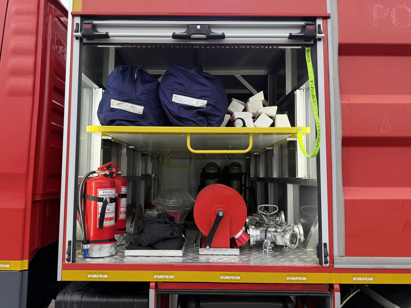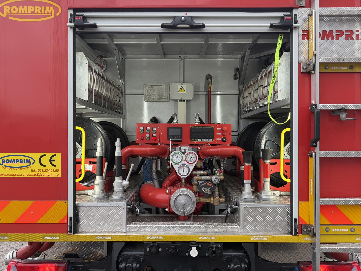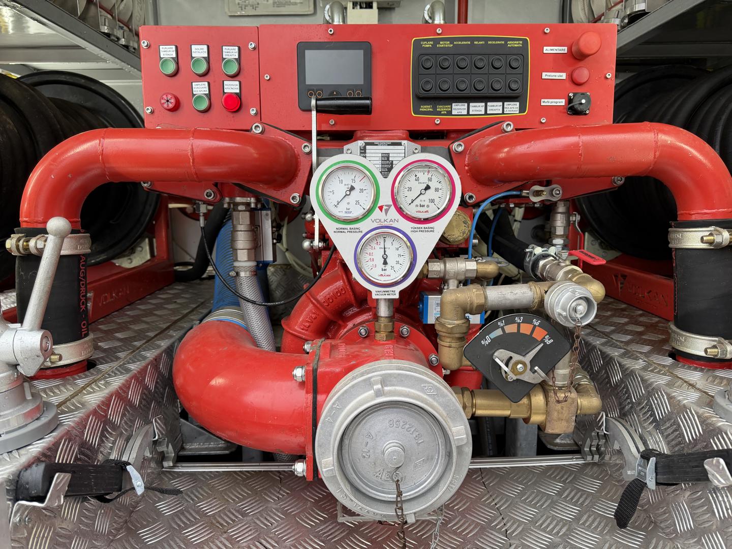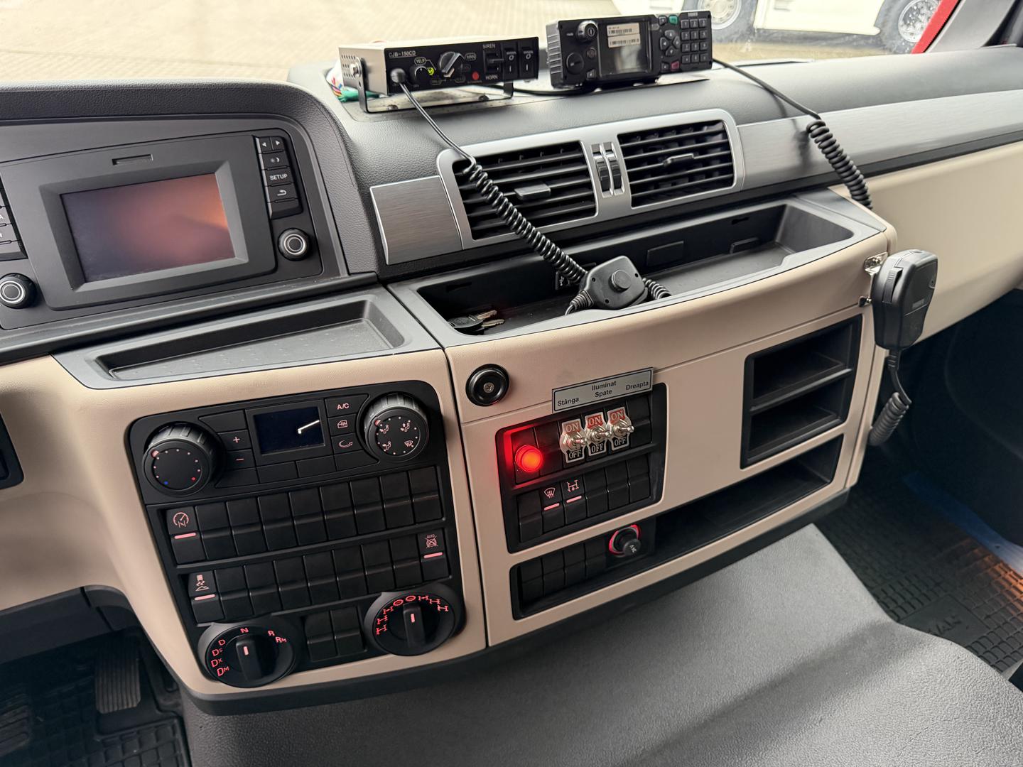 Bilen er udstyret med permanent firehjulstræk med differentialespær og har både en 3.500 liters vandtank og en 350 liters skumtank. Kabinen rummer seks siddepladser, og fartpilot.