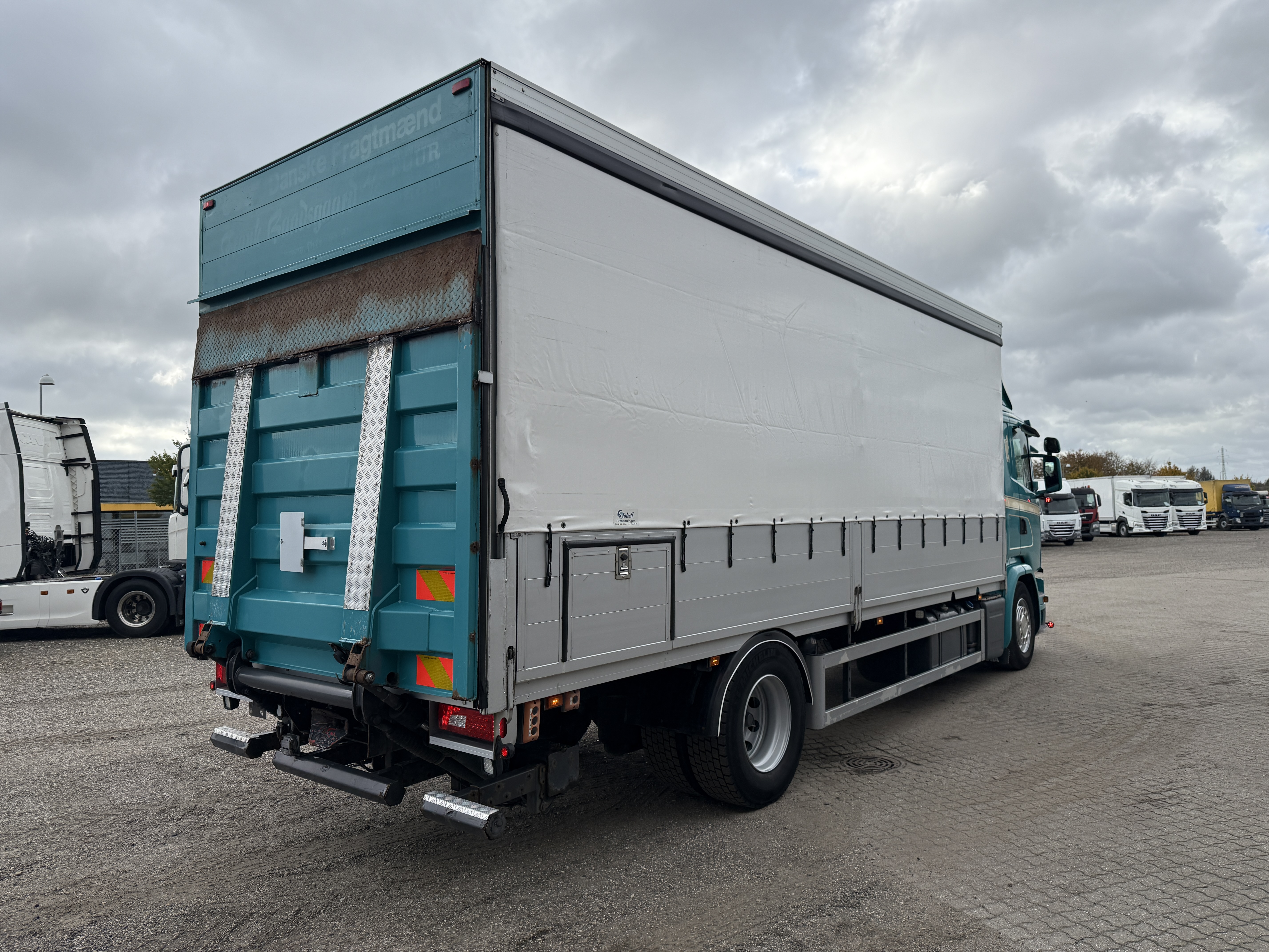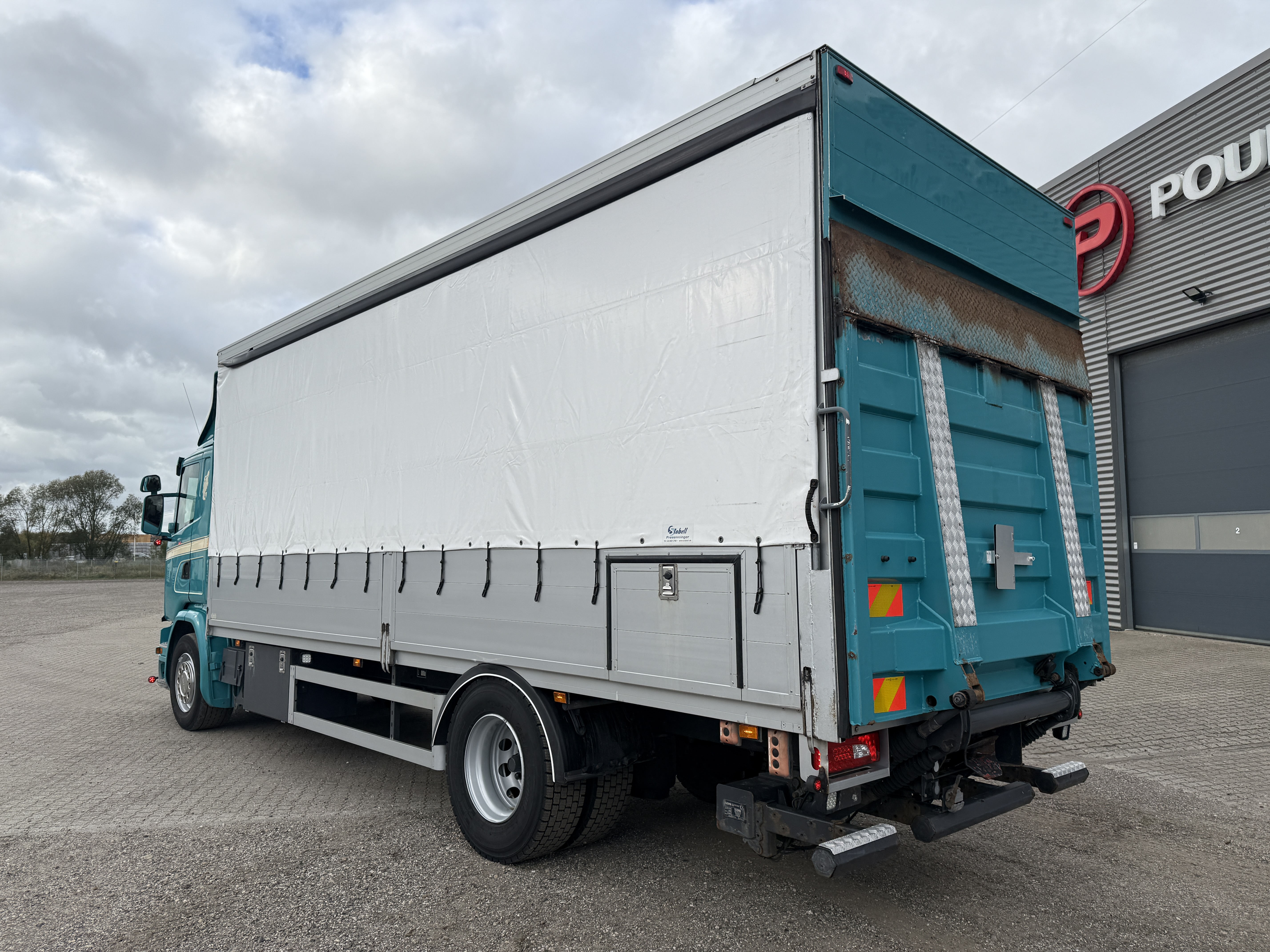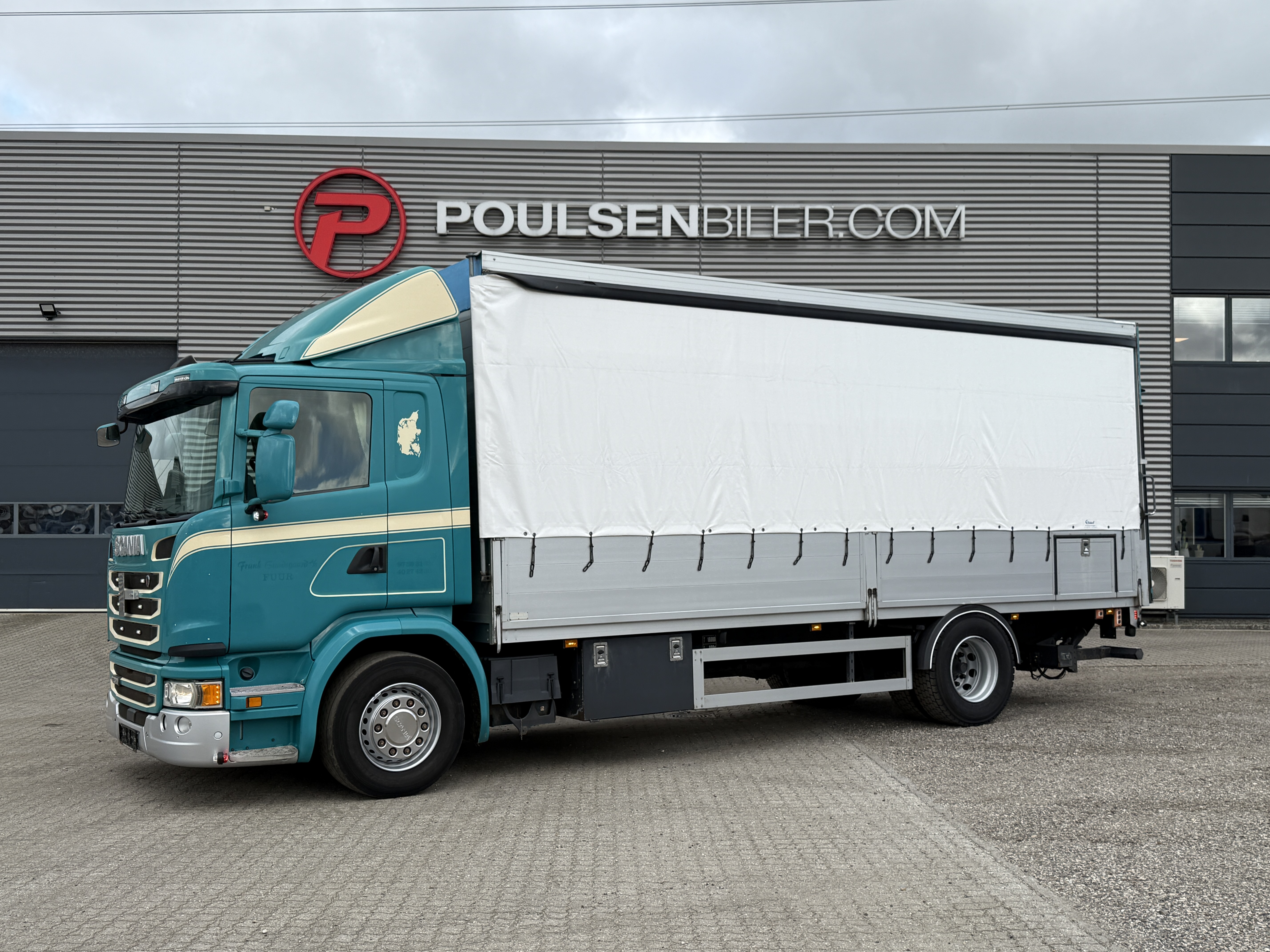 Scania G320 med gardinopbygning og Zepro 2.500 kg lift