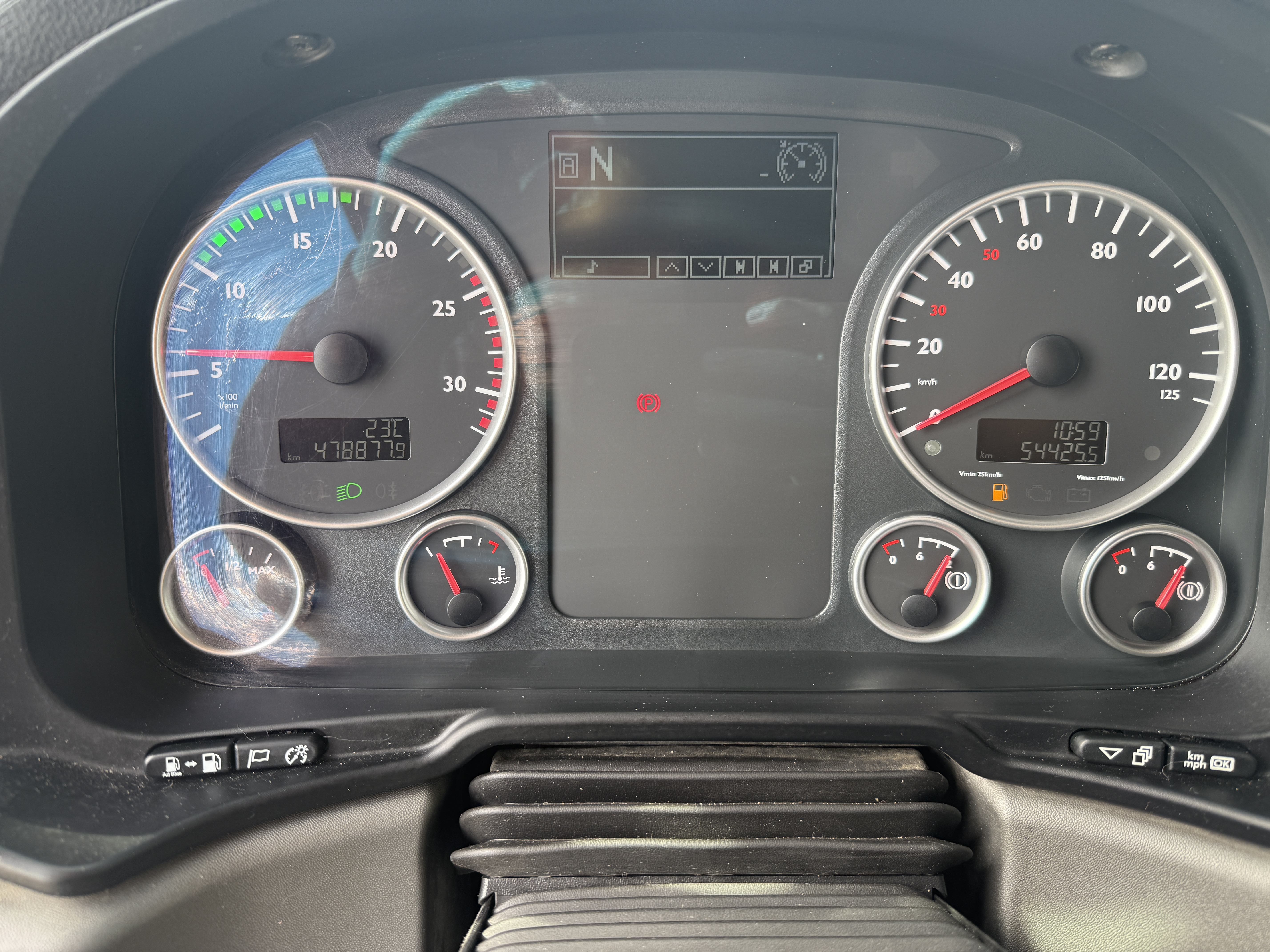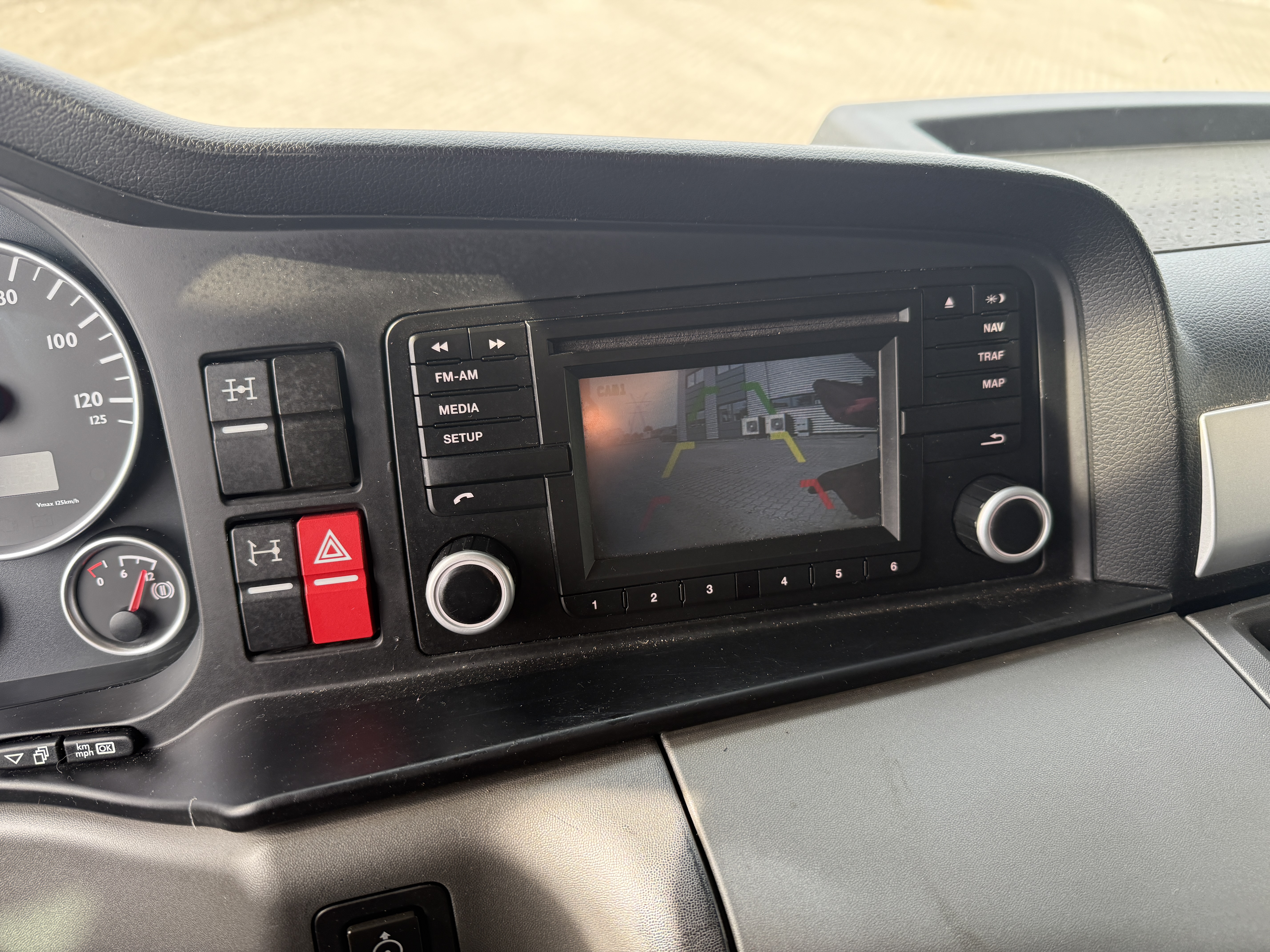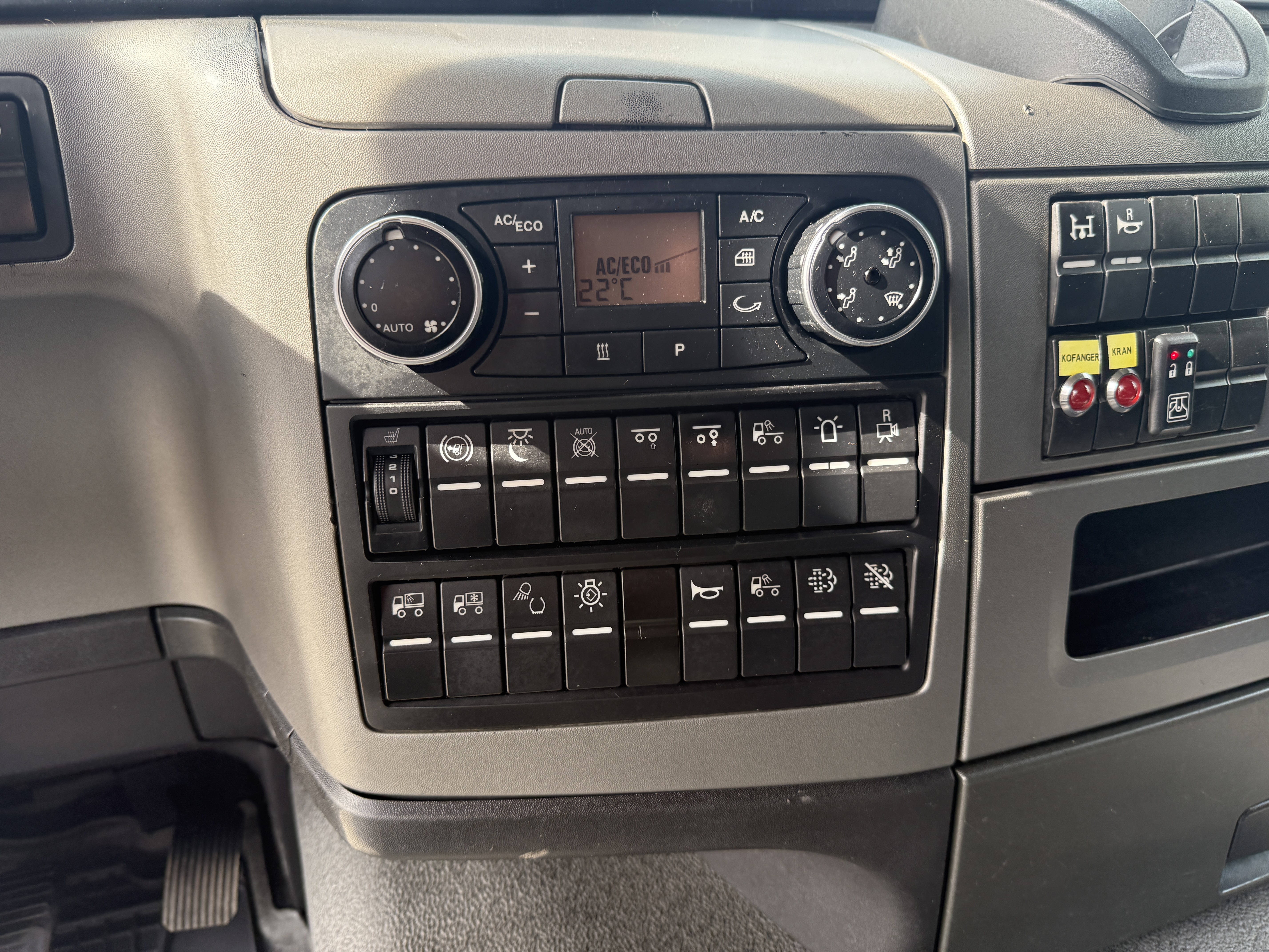 Førerhuset er udstyret med navigation, bakkamera, arbejdslys, slingerlamper, rotorlys, fartpilot, sædevarme, automatisk klimaanlæg, aircondition, radio og walkie.