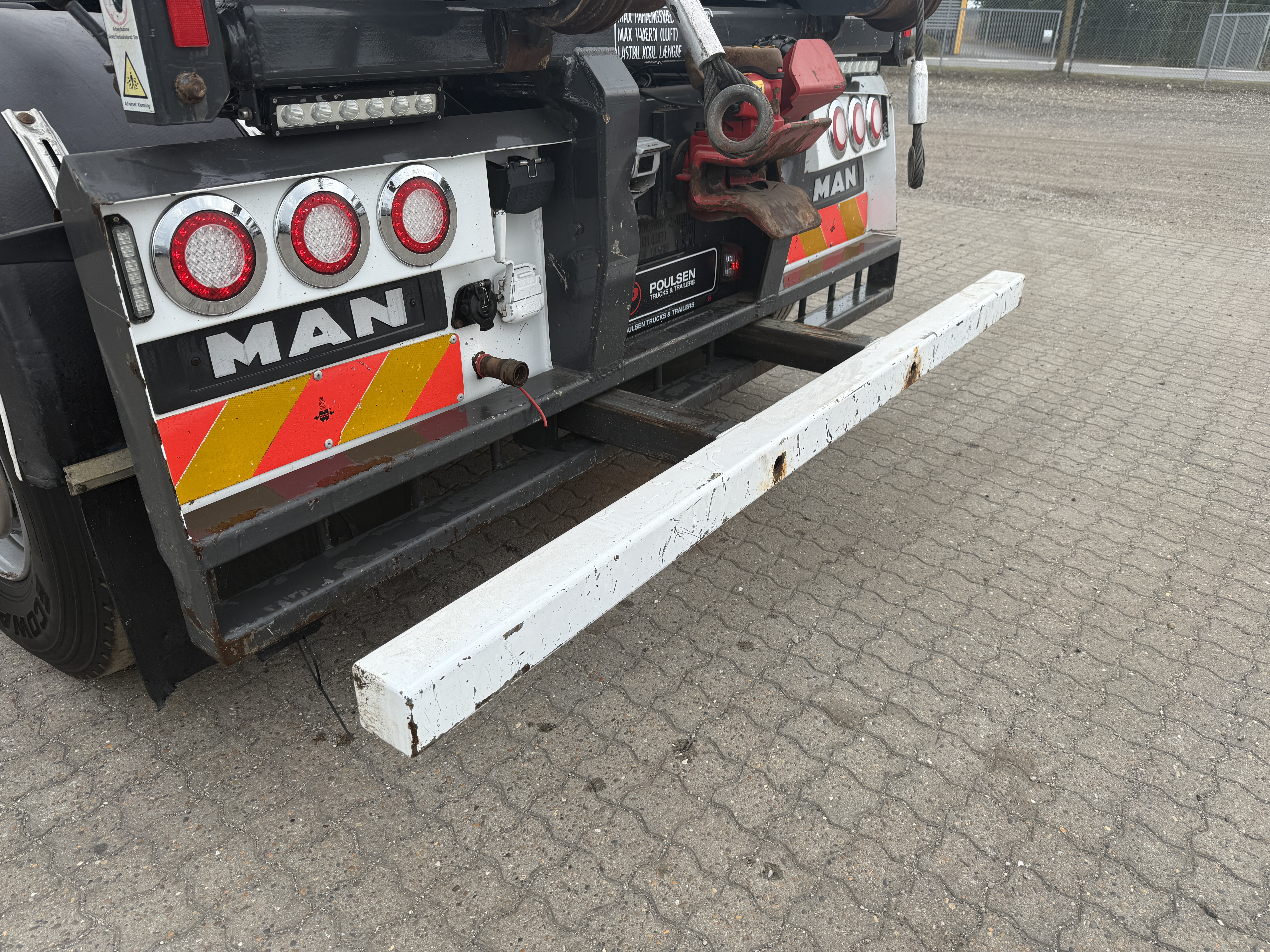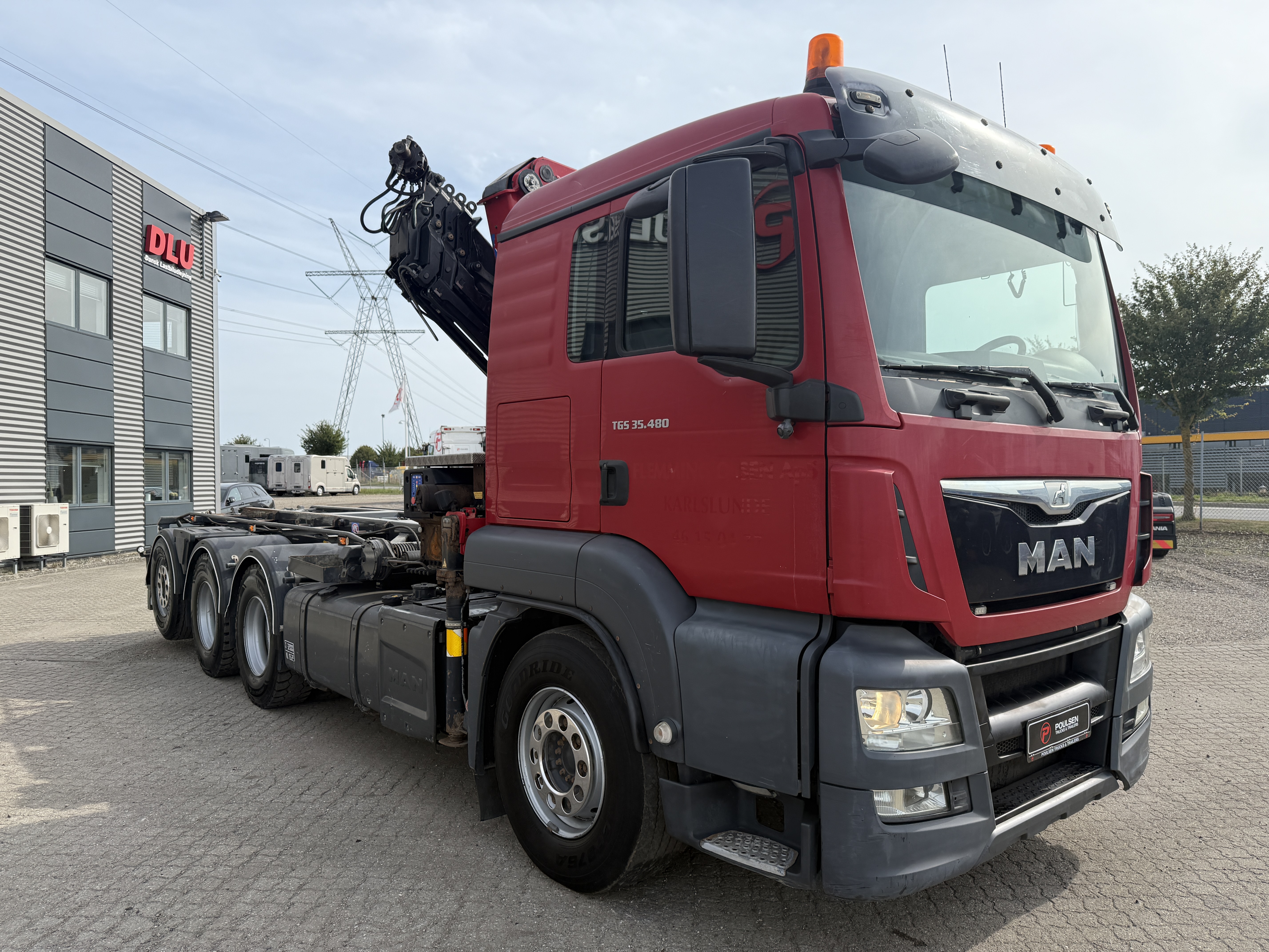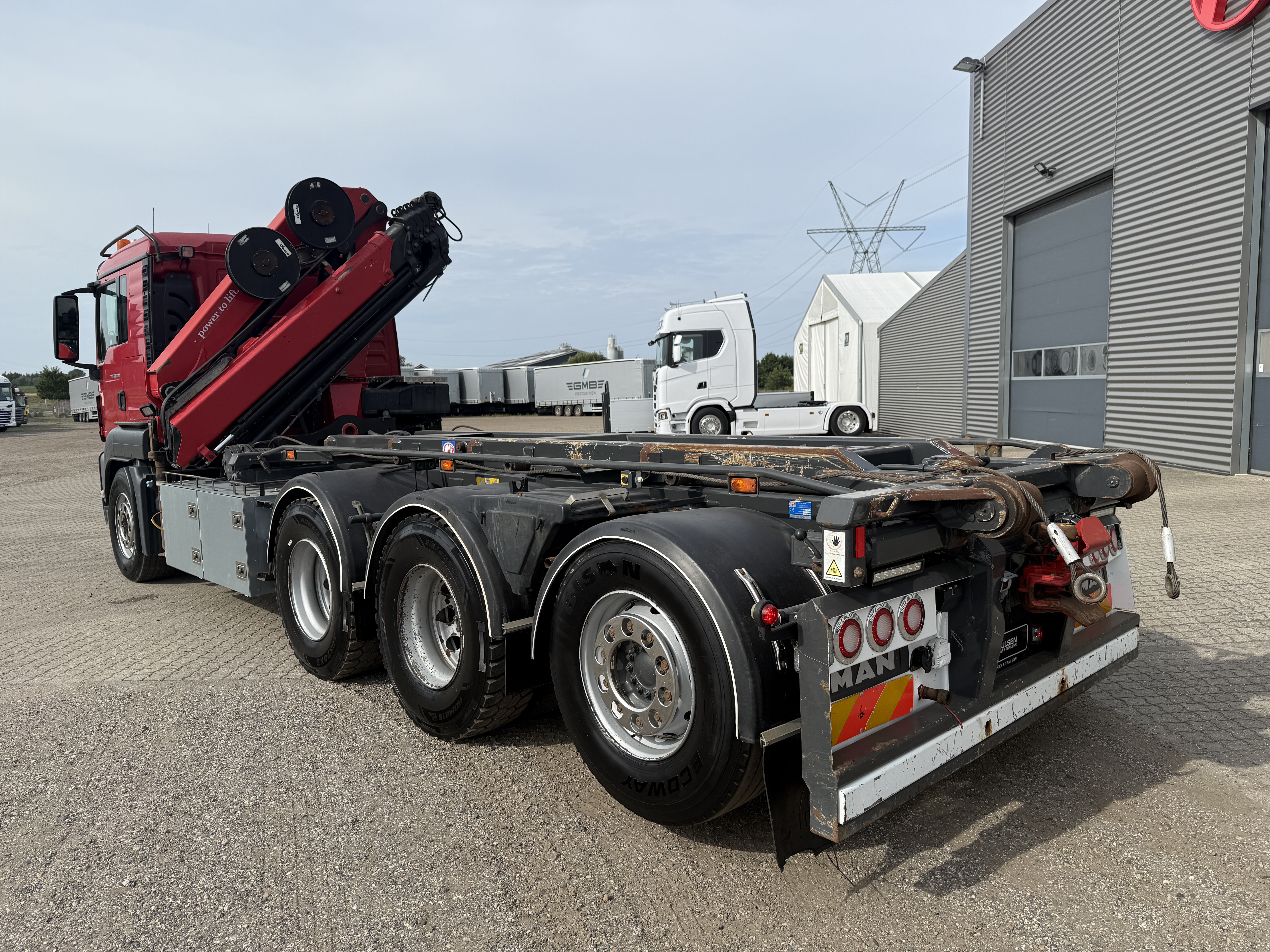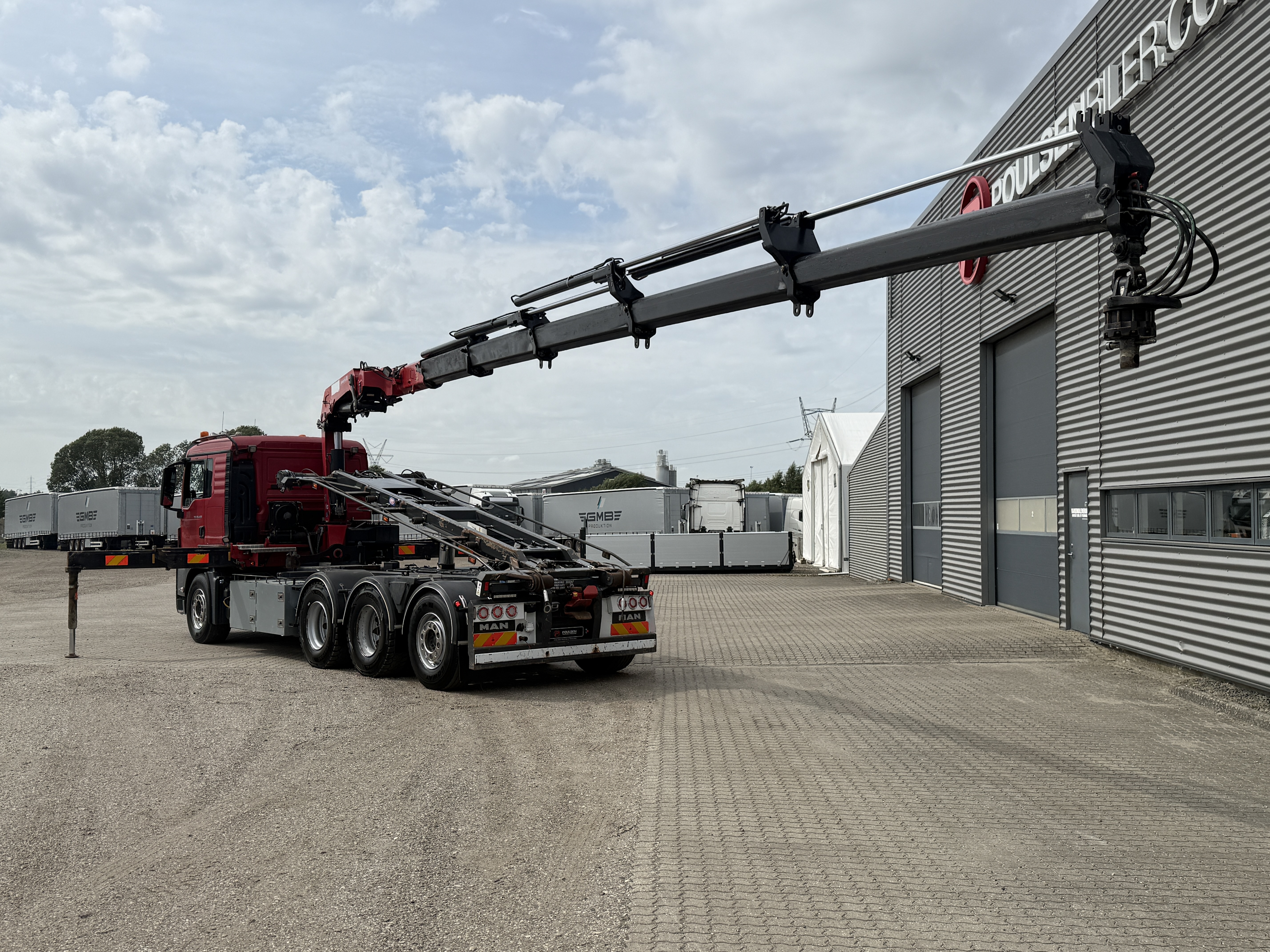 MAN TGS 35-480 8x4*4 fra april 2015 med HMF 2620-K5 kran og HMF wirehejs har kørt 479.000 km. Lastbilen er veludstyret og bygget til alsidige opgaver. Den er blandt andet forsynet med et VBG luftbetjent træk, hydraulisk udskudskofanger på 400 mm samt fjernbetjening til hejset. yderligere funktioner hører både luftudtag til automatbagsmæk og olieudtag til pendelside.