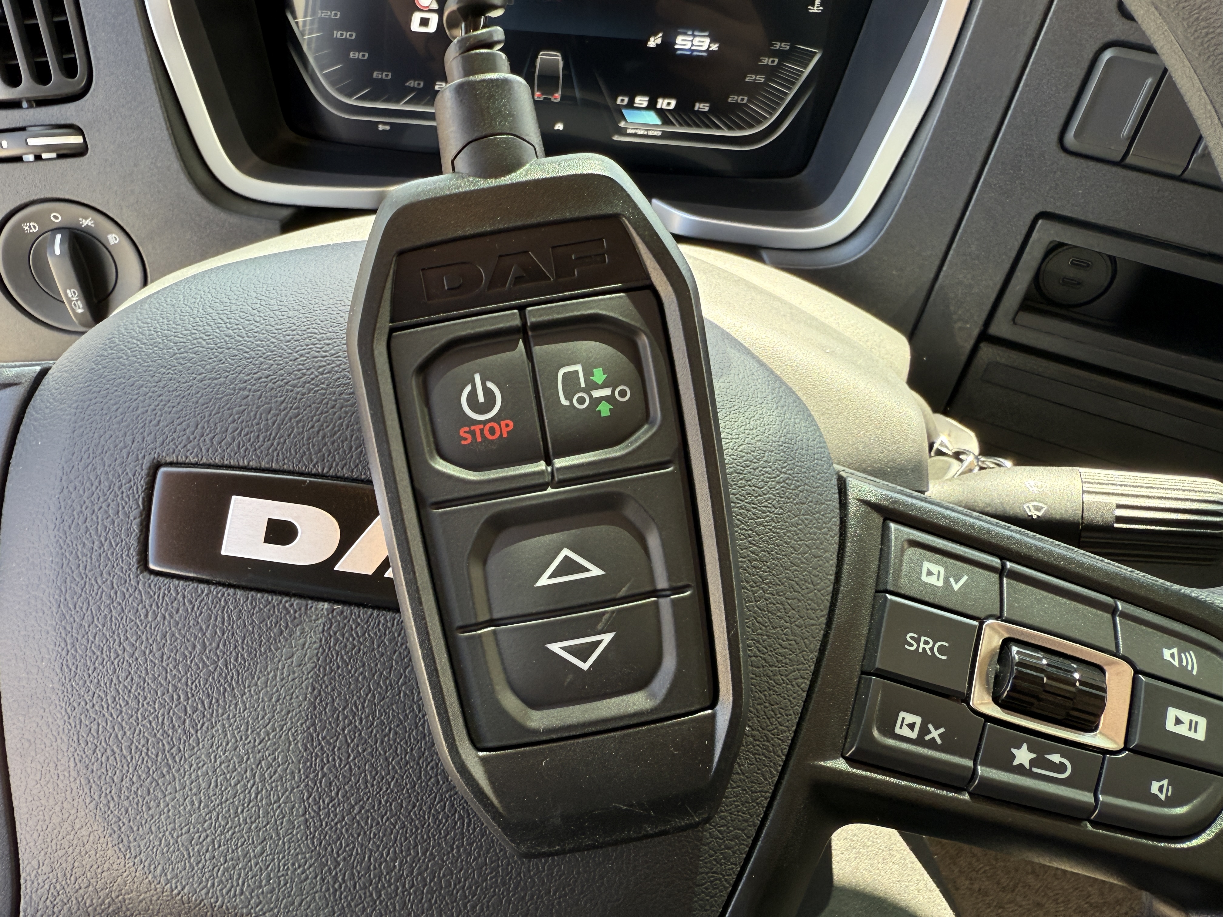 Lastbilen er professionelt opbygget med en SAXAS kasse og udstyret med en Dhollandia lift med en kapacitet på 1.500 kg. Liften betjenes nemt via spiral kabel. Sikkerheden er i top med ACC afstandsradar og nødbremsefunktion, og komforten for chaufføren er sikret med et luftaffjedret førersæde med varme samt en TraXon automatgearkasse.