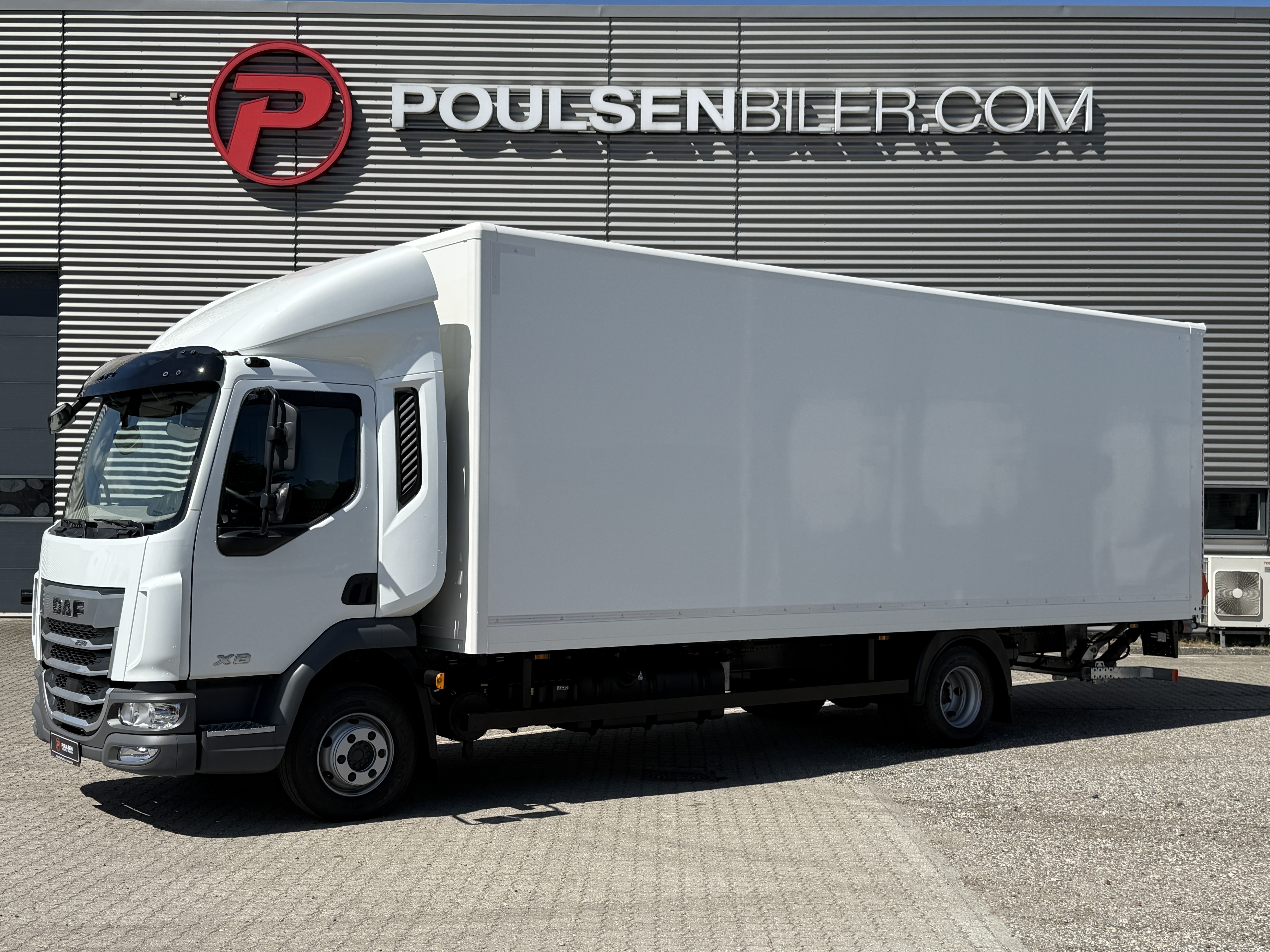 Vi tilbyder en fabriksny DAF XB230 4x2 fastkasse med bagdør – fri for kilometerafgift.