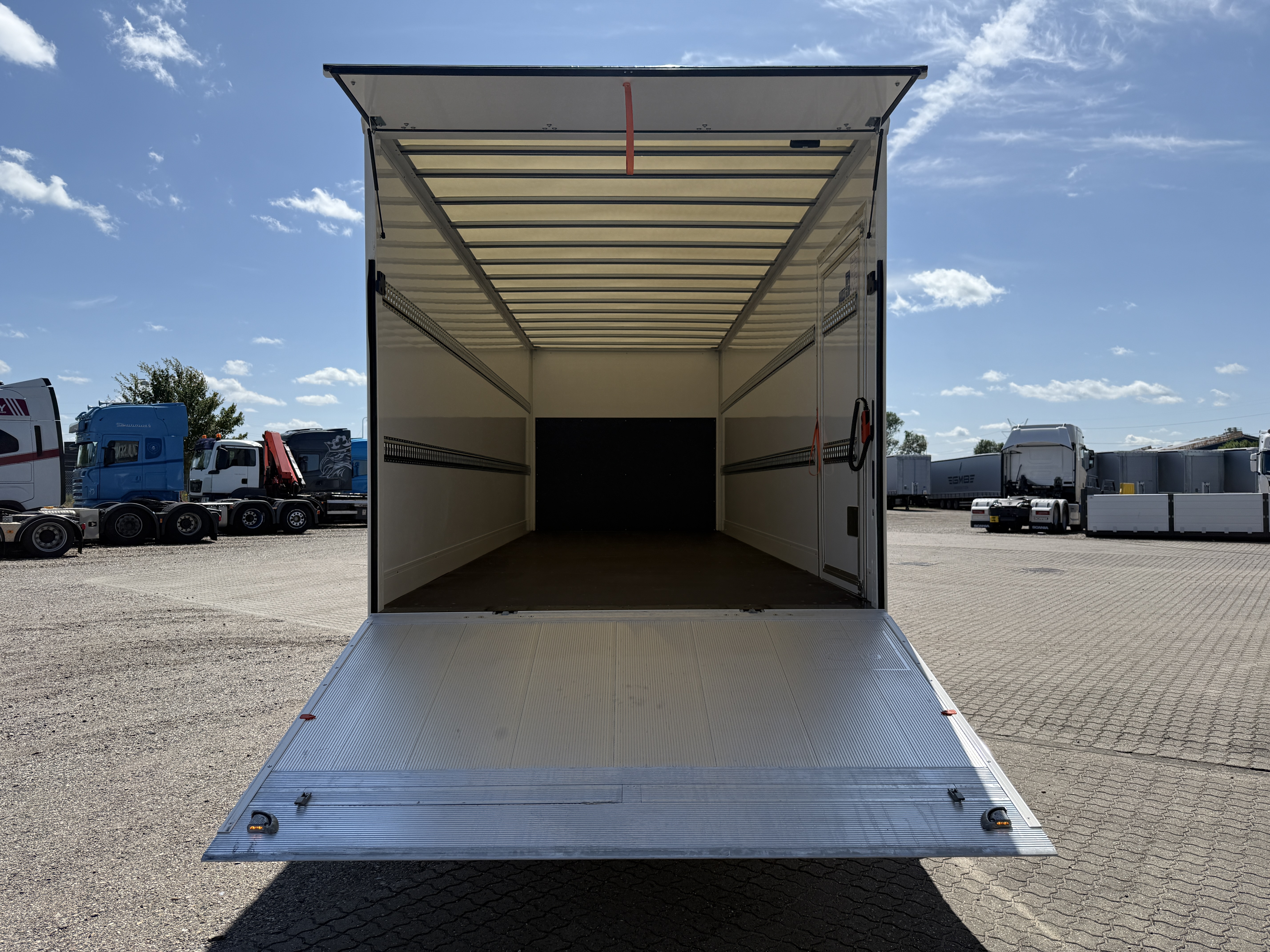Der er bakkamera for bedre overblik, og kassen er forsynet med surringsrækker i to højder, hvilket gør det let at sikre lasten. De indvendige mål i kassen er 7.200 mm i længden, 2.500 mm i bredden og 2.390 mm i højden.