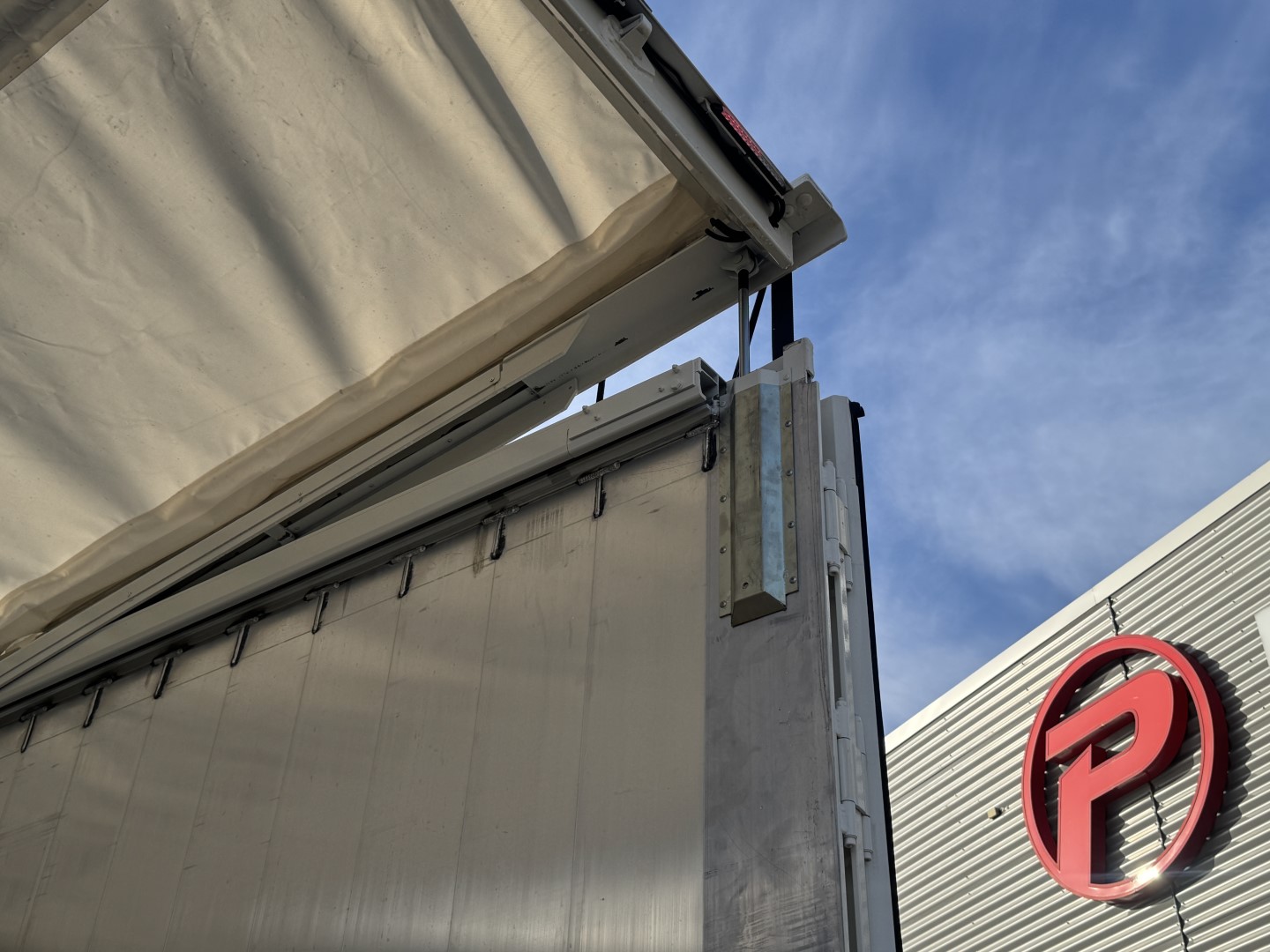 Der er integrerede stormsikringer til tagdugen i sidevæggen.