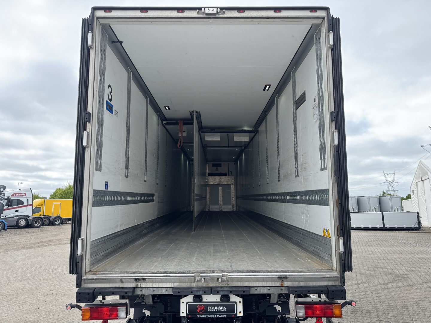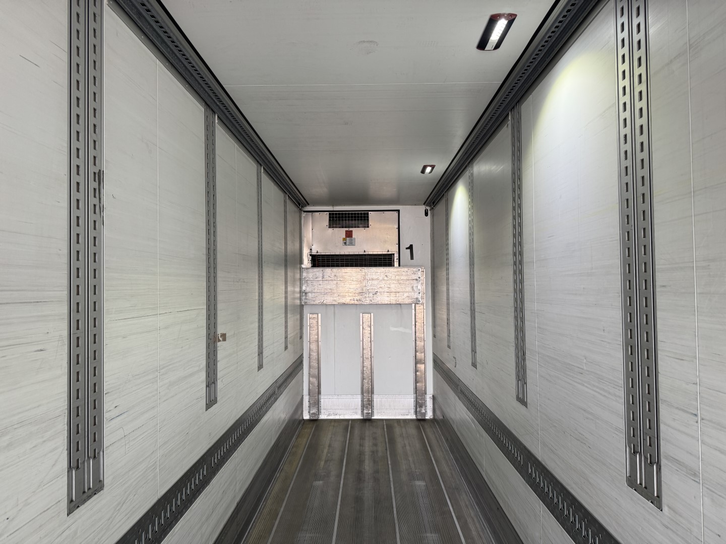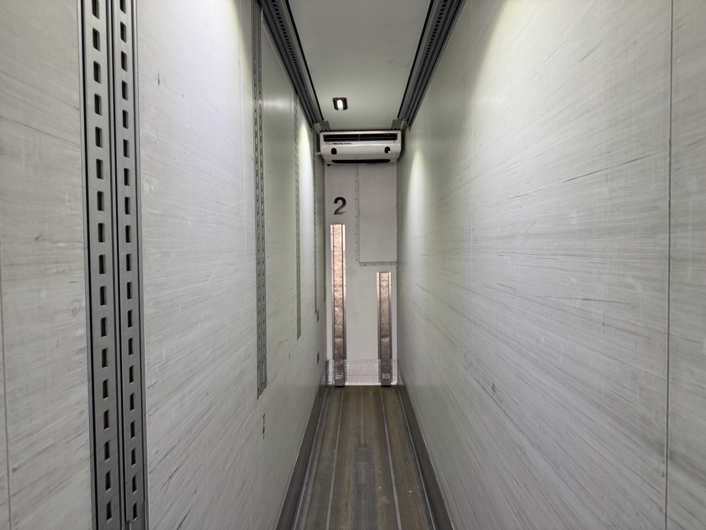 Den kraftige Thermo King SLXi Spectrum kølemaskine har kørt 18.333 timer på diesel og 45 timer på el. Der findes ligeledes et betjeningspanel til kølemaskinen praktisk placeret indvendigt i traileren. Traileren er udstyret med 2 flytbare skillevægge, for simpel og nem inddeling af rummene.