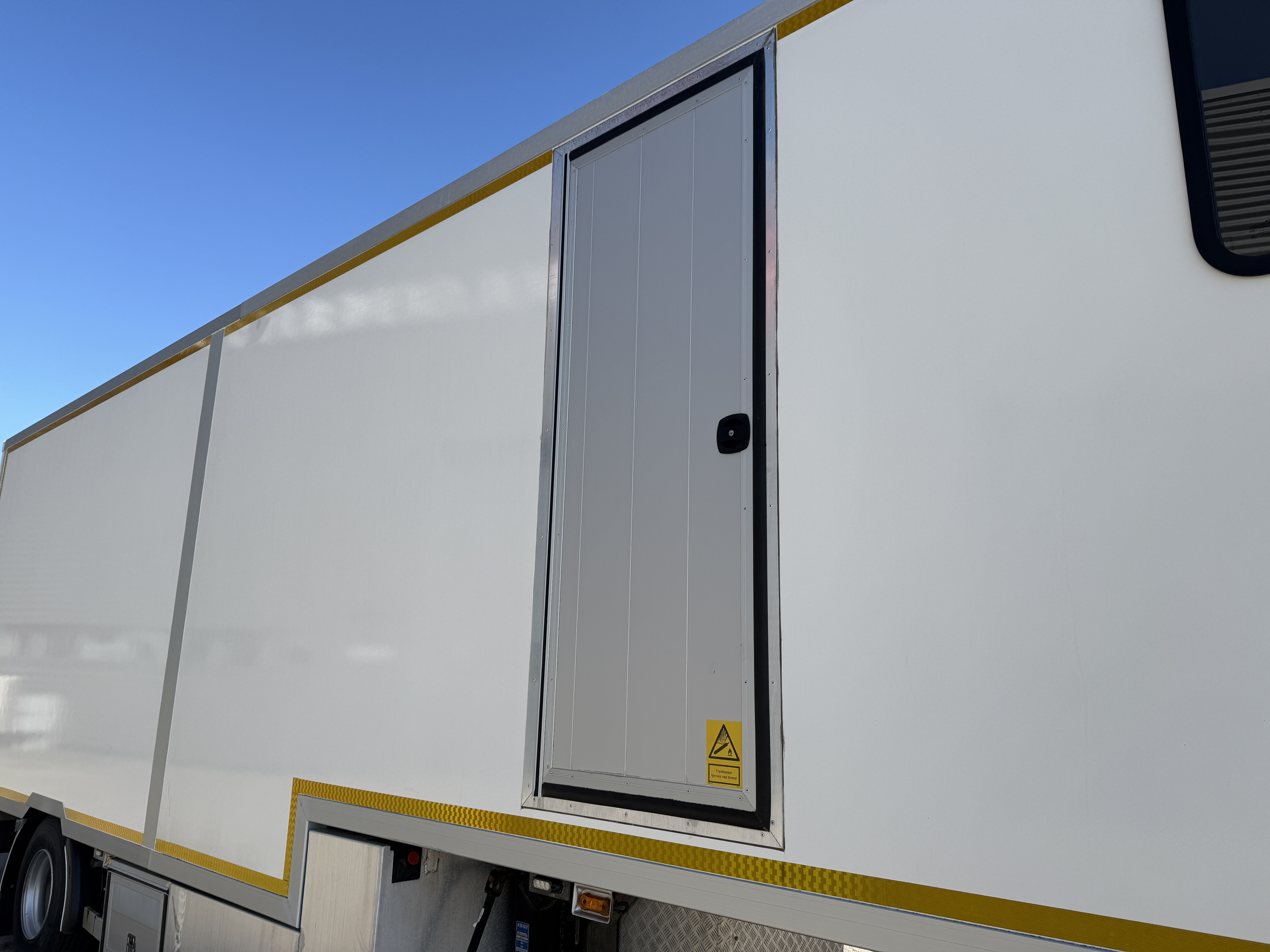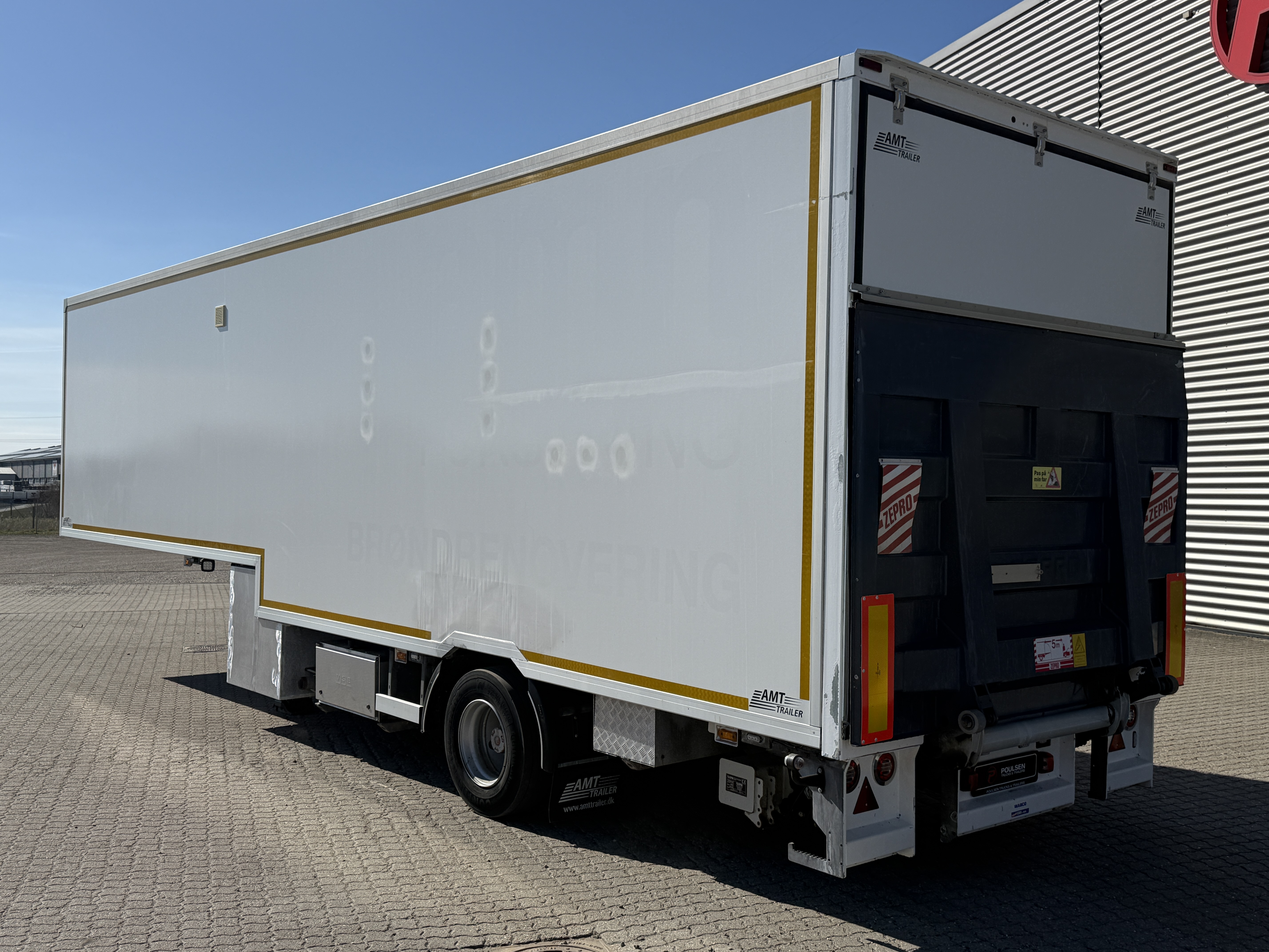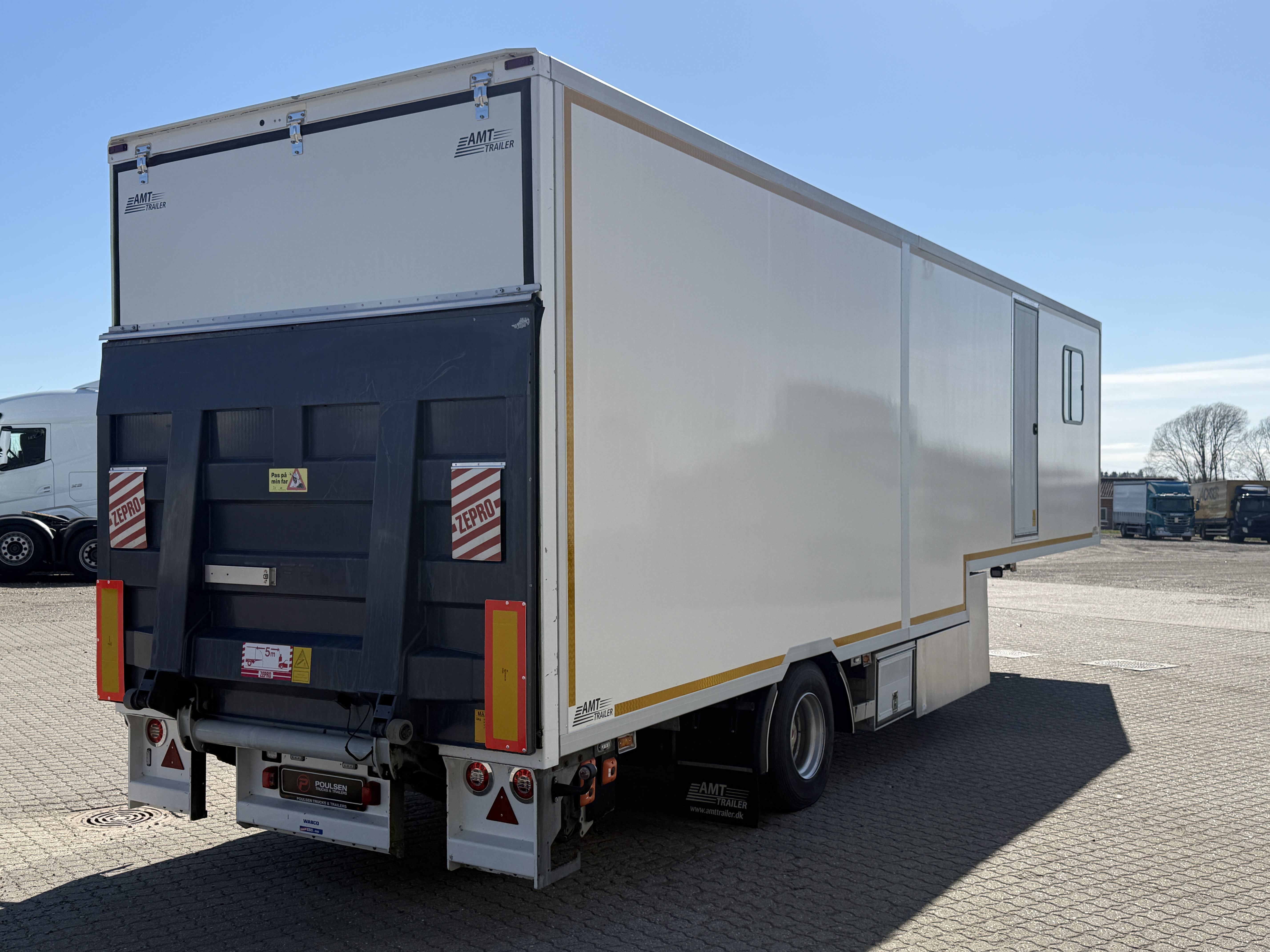 Traileren er yderligere udstyret med udvendige blitzlys, Zepro 2500kg lift og dør i højre side, som giver nem adgang til både værksted og ophold.