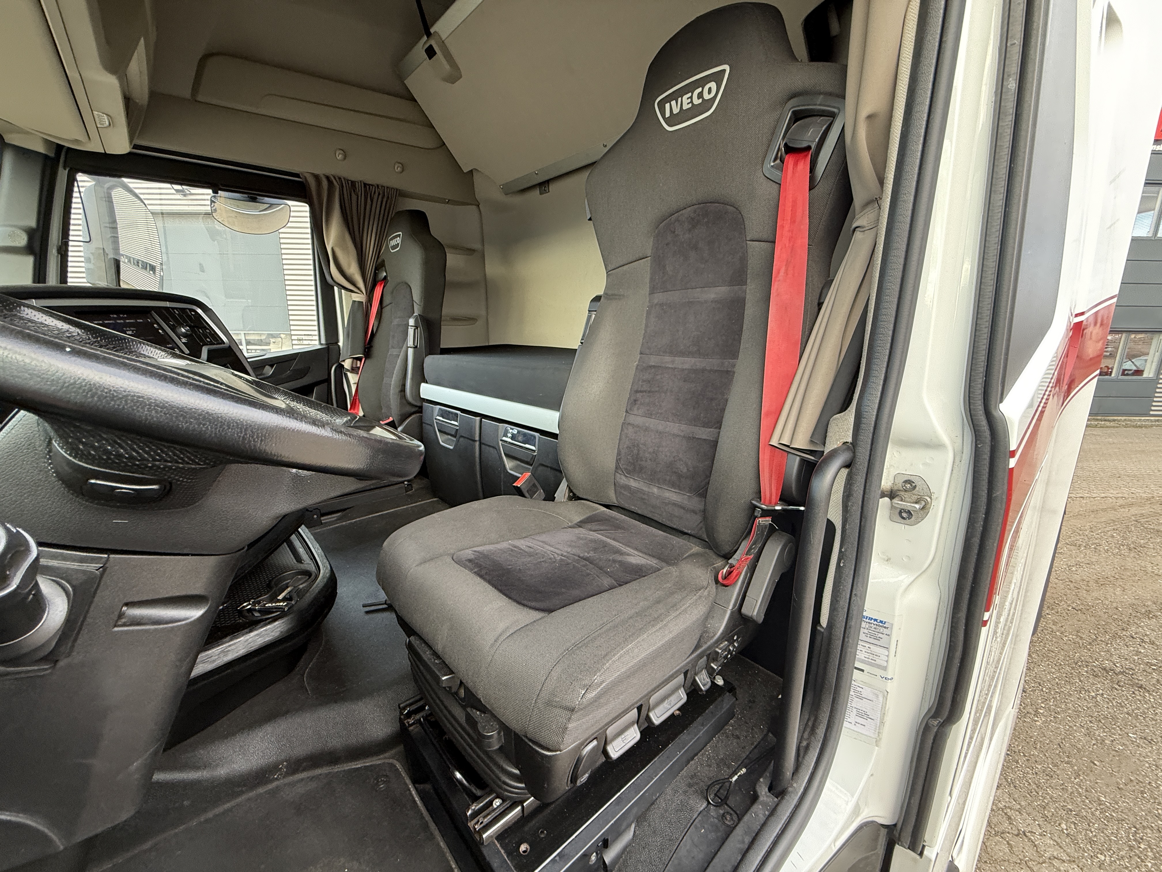Kabinen er udstyret med luftaffjedret førersæde med varme og ventilation, kaffemaskine, køleskab og navigation. Derudover er der aircondition, automatisk klimaanlæg, adaptiv fartpilot og sporassistent.