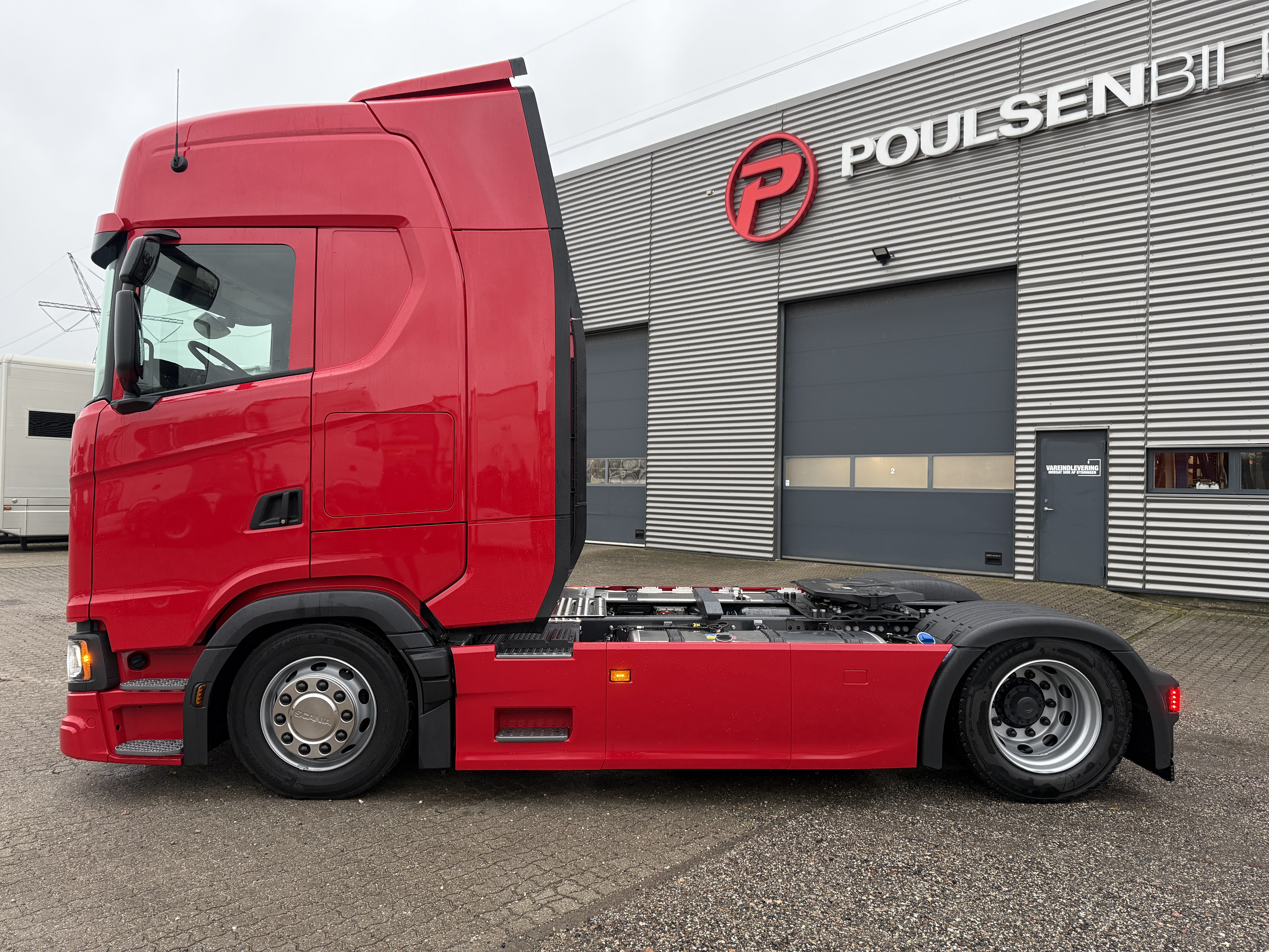 Scania S460 mega trækker står klar til nye opgaver. Den er fuldt luftaffjedret og udstyret med trailerbeskytter. Lastbilen har både ACC, sporassistent og retarder.