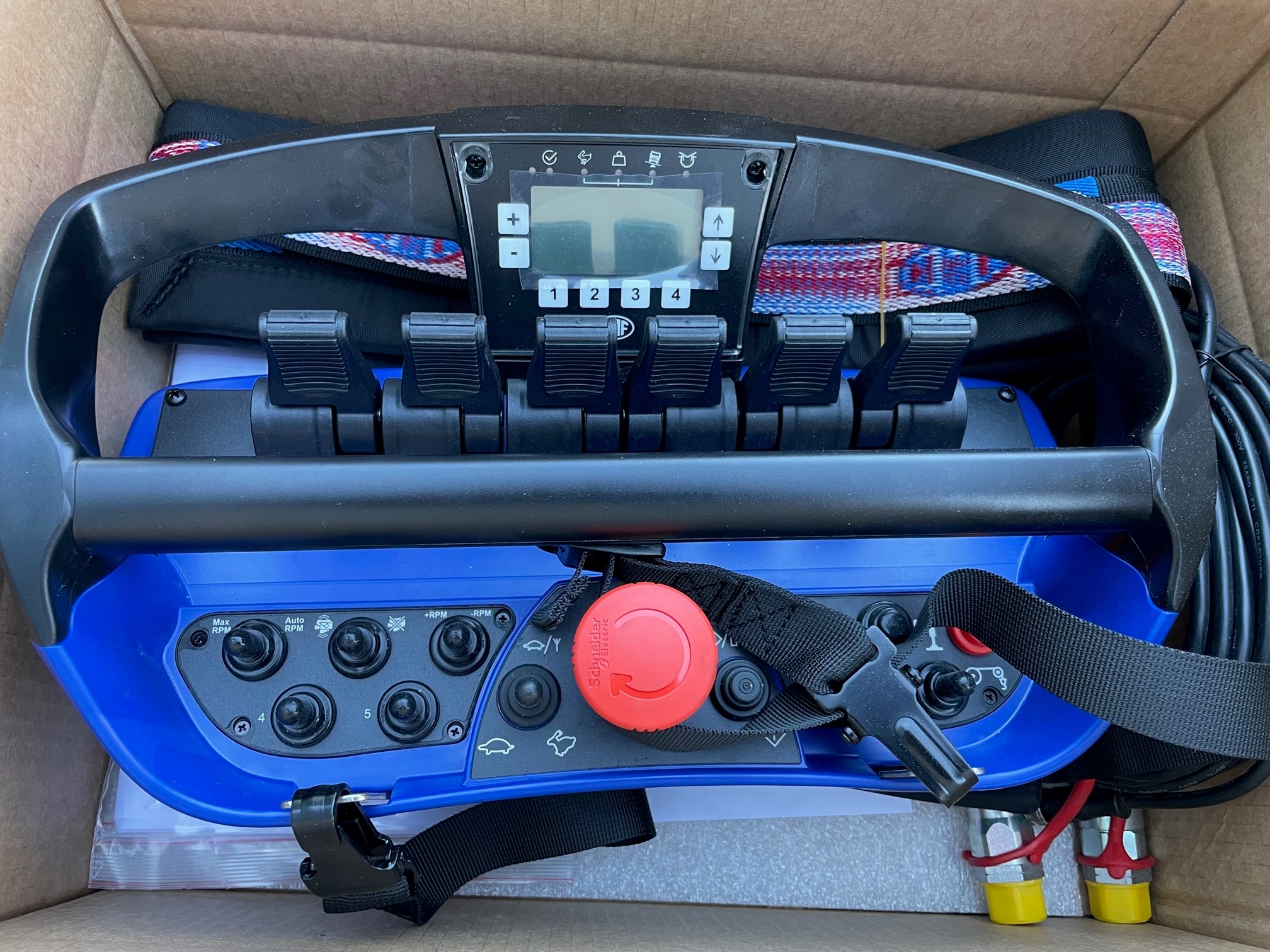 - HMF SC radiofjernstyring med infocenter, lineære håndtag, 6 funktioner, type L-MAX og ekstra digitale udgange