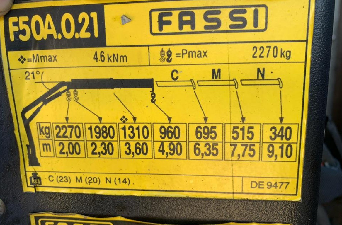 7 Tons kran bil med tvillingehjul. Fasso 50 lift med et udskud og rotator. 2x blitz lys i front og 2x i bag.