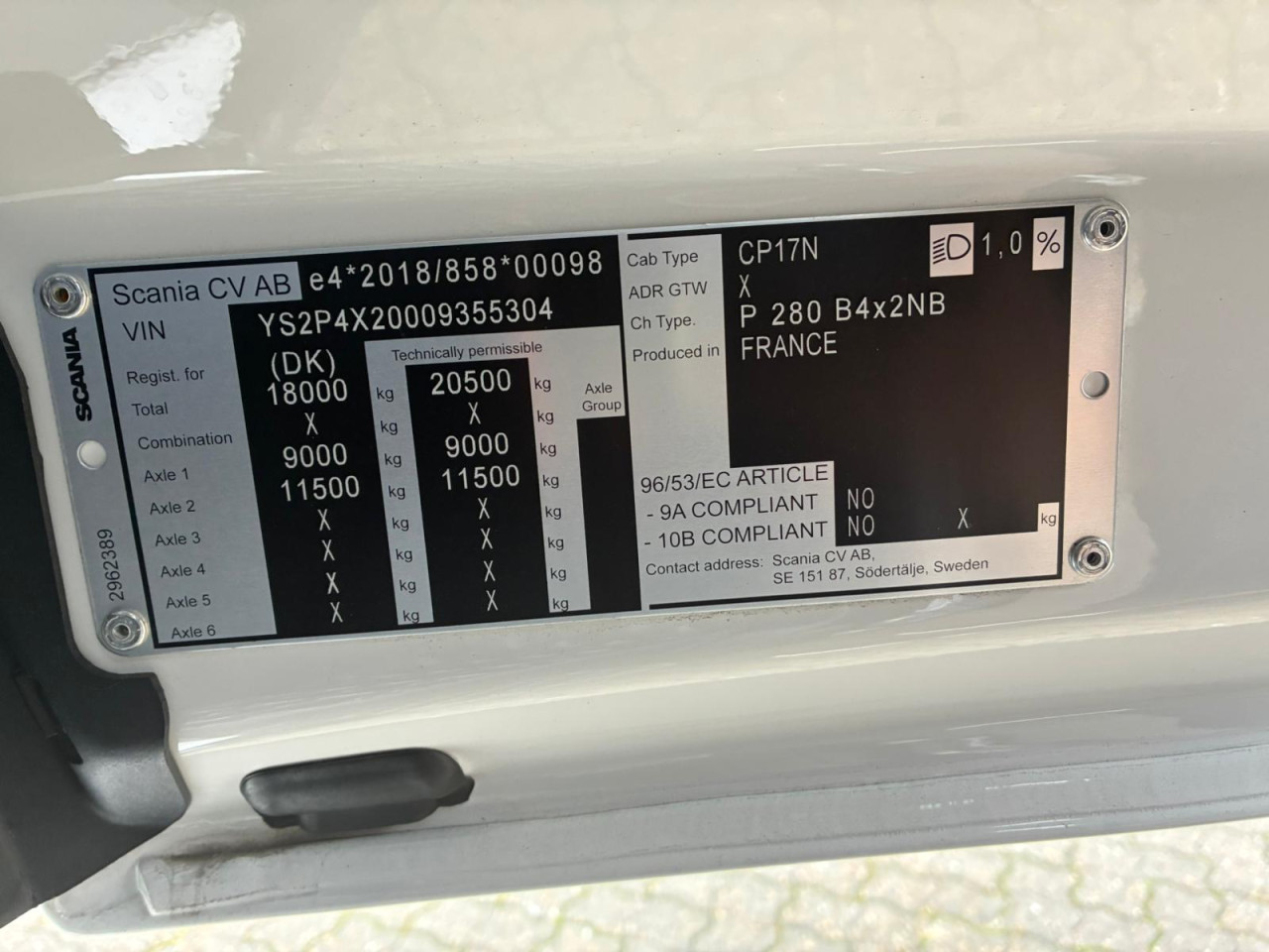 Nyttelast: 8.000 kg, Tilladt totalvægt: 18.000 kg, Brændstofstank: 395l, Akselafstand: 5.350 mm