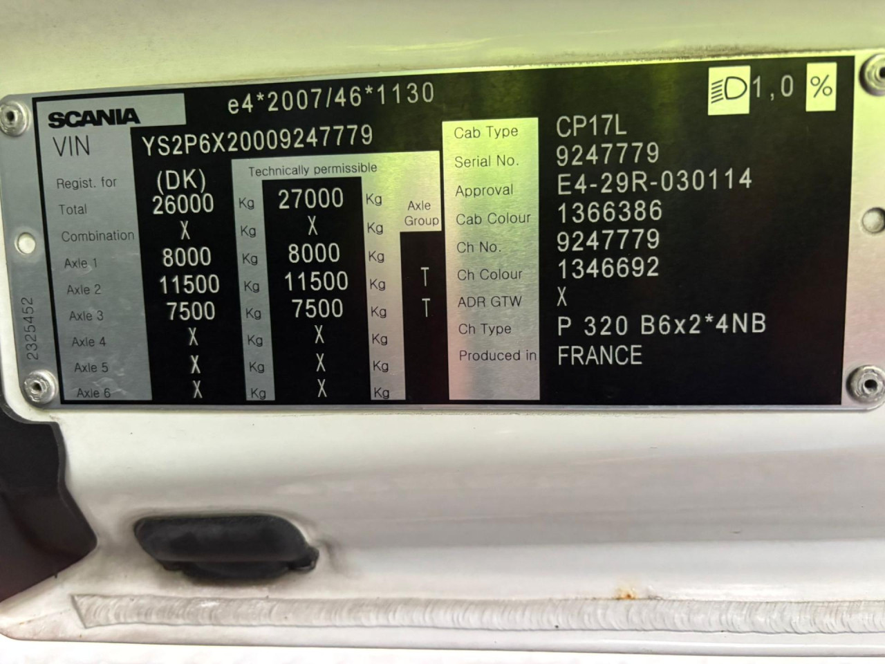 Nyttelast: 12.200 kg, Tilladt totalvægt: 26.000 kg, Brændstofstank: 400l, AdBlue-tank: 80l, Akselafstand: 5.950 mm