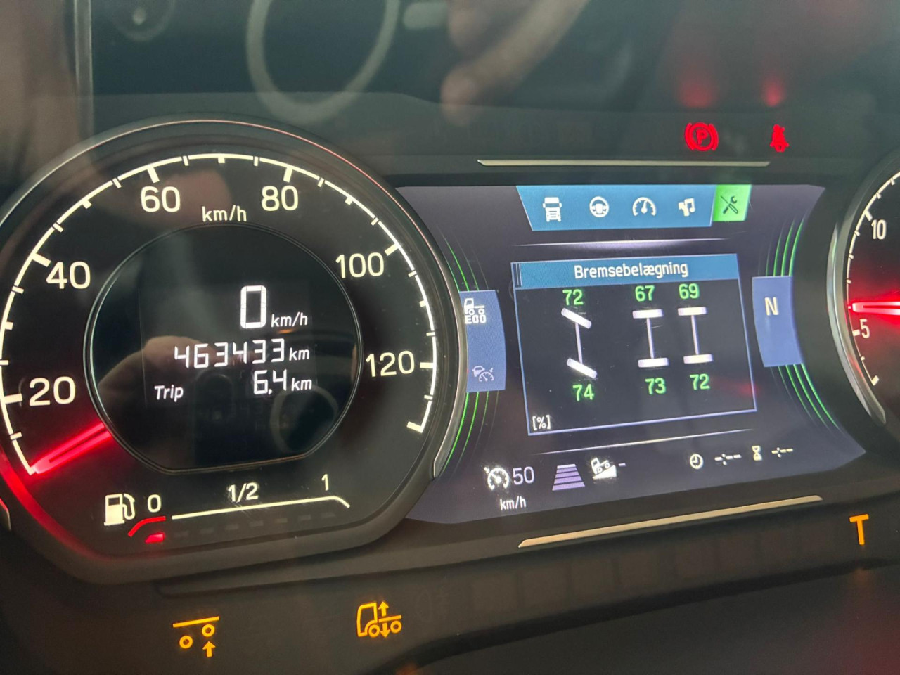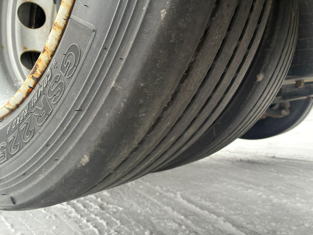 1. Achse: 385/65 R22.5, Profildybde: 6 mm / 6 mm, 2. Achse: 295/80 R22.5, Profildybde: 5 mm / 5 mm, 3. Achse: 295/60 R22.5, Profildybde: 5 mm / 5 mm