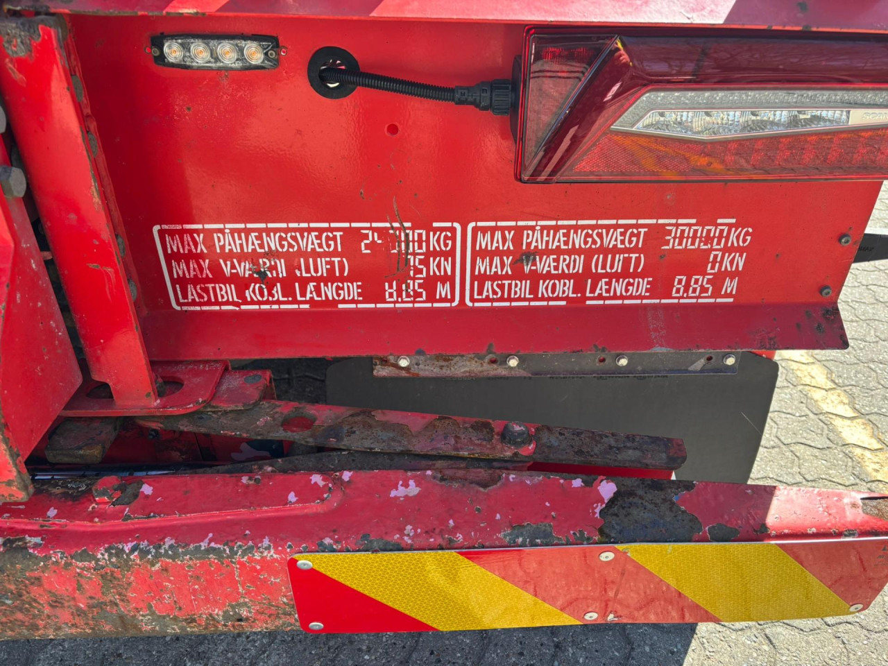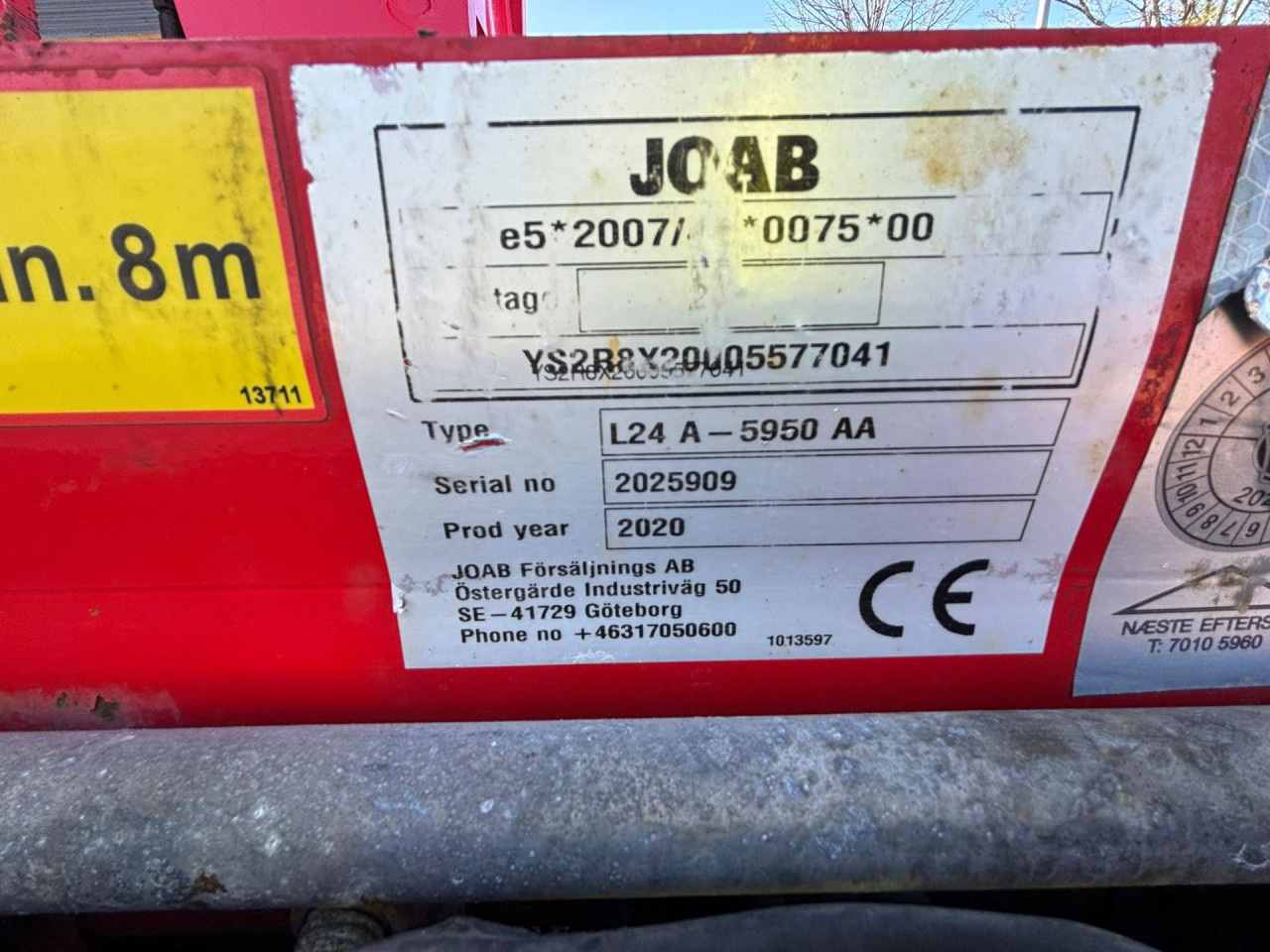Opbygget med JOAB L24A (24 tons) kroghejs til 6 meter kasser, Udskudskofanger, Blits bjælke, Horn på tag
