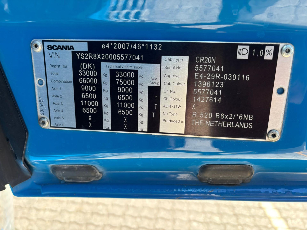 Nyttelast: 18.325 kg, Tilladt totalvægt: 32.000 kg, Brændstofstank: 400l, AdBlue-tank: 80l, Akselafstand: 5.150 mm