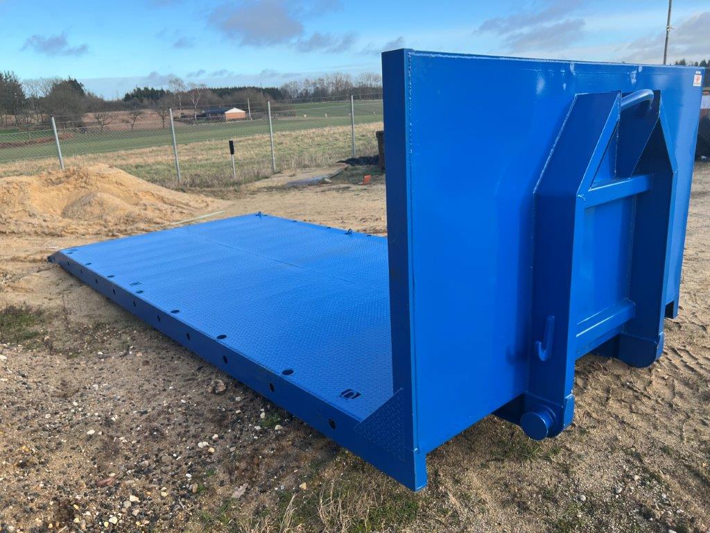 Maskinlad til både wire og kroghejs - indvenlige mål ca. L:6000 mm - B : 2550 mm - surrings ringe i bunden af lad - skrå i bag - kæpstokke i hver side - kan leveres i valgfri RAL farve