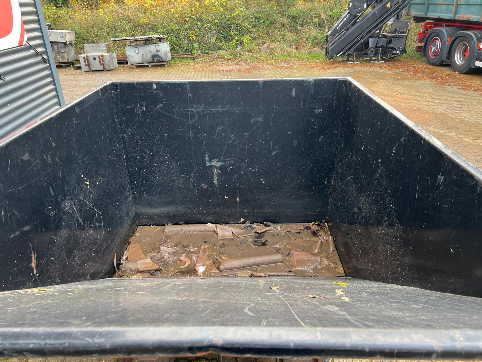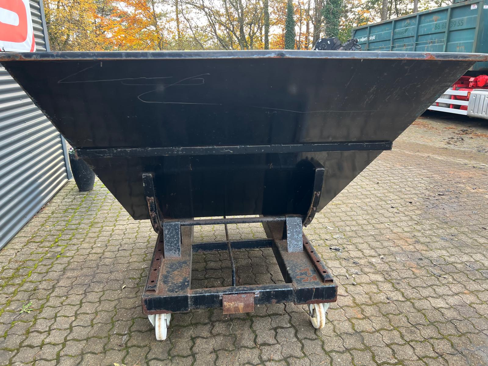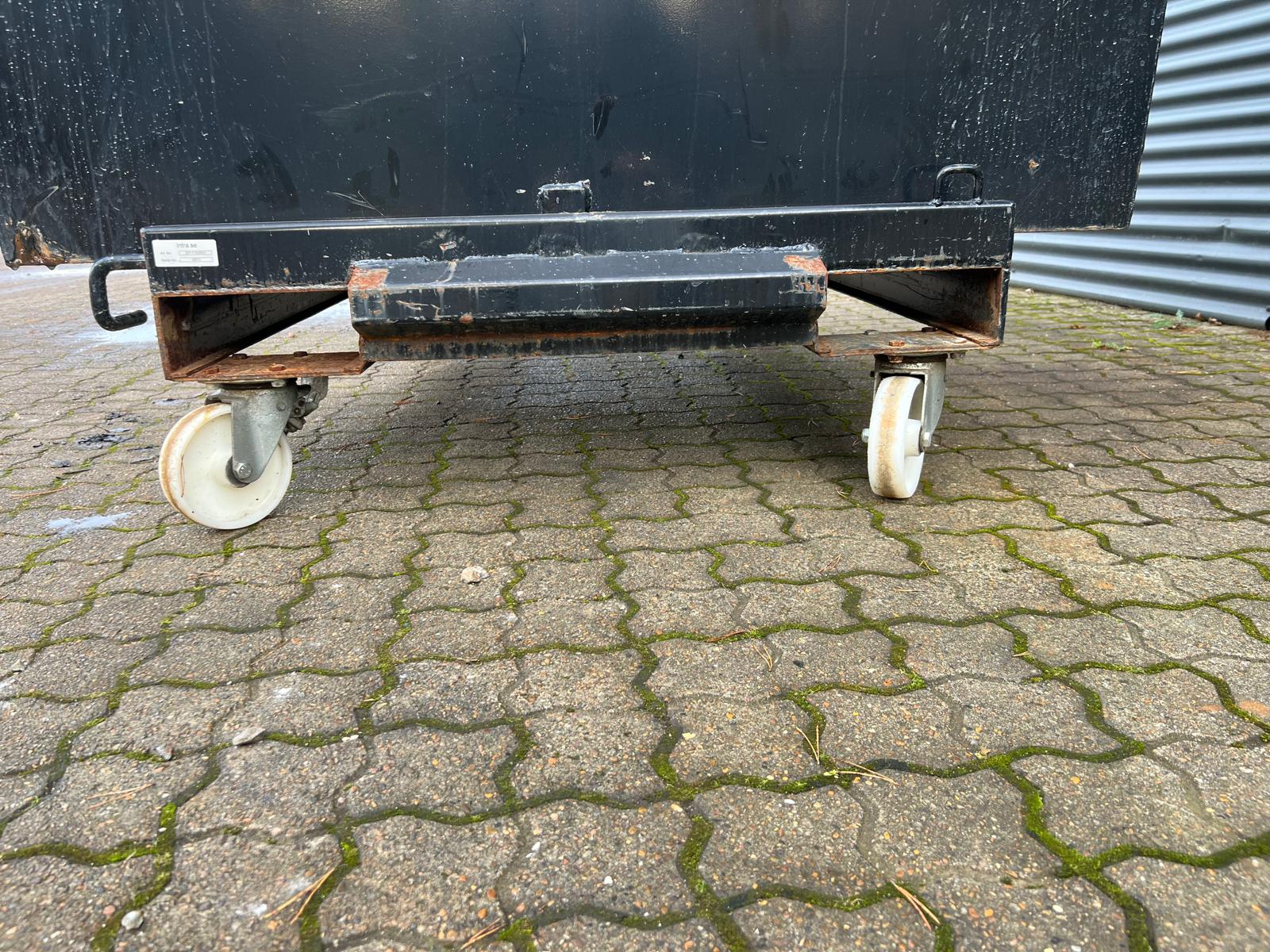 Tip / Vip med container med gaffellommer og transport hjul