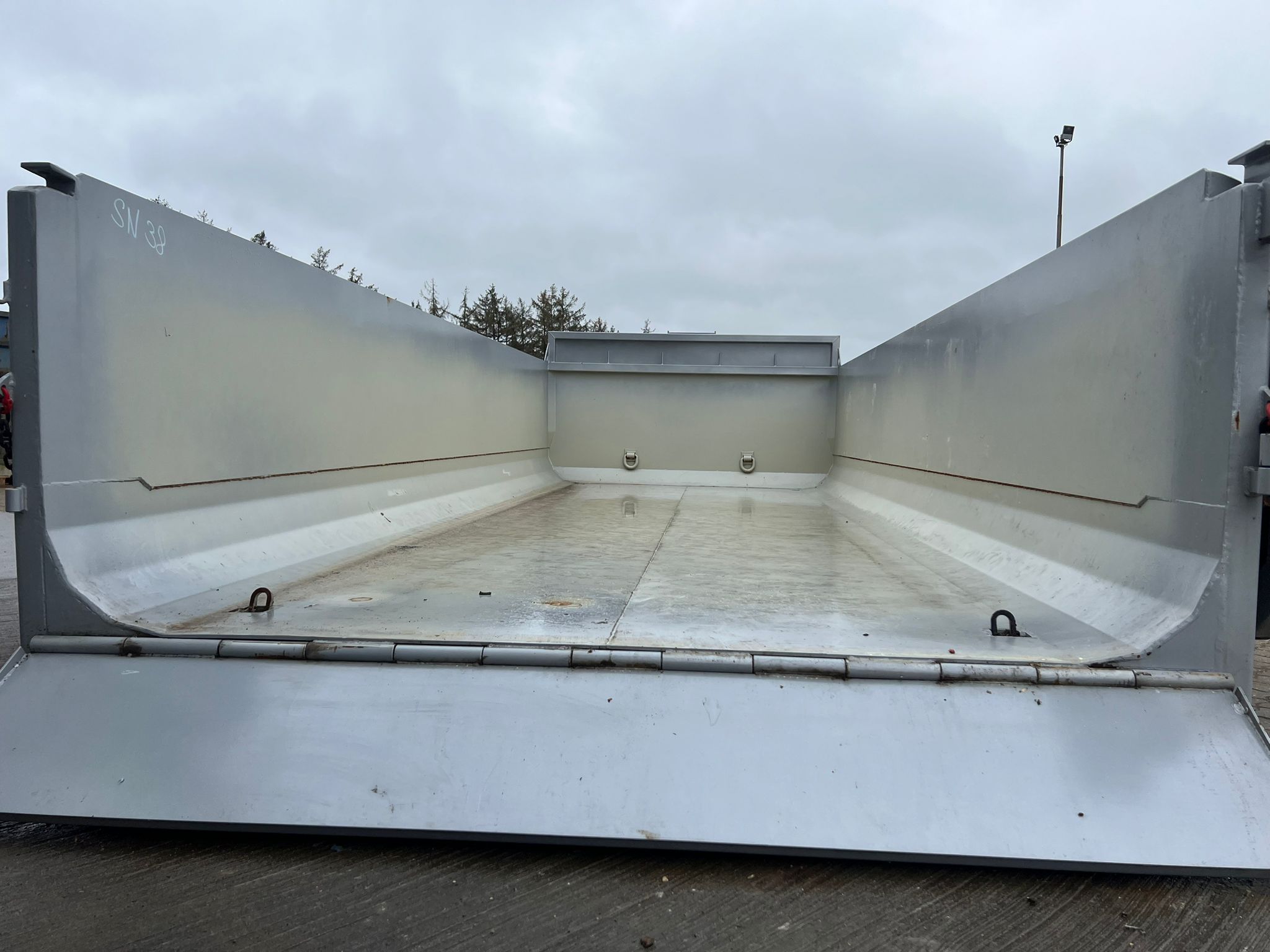 Opbygget med følgende indvendige mål: L 6000 mm (5900 mm ex. tophængt bagsmæk) X B 2370 mm X H 1000 mm - udvendig længde: 6350 mm - rumindhold 14 m3