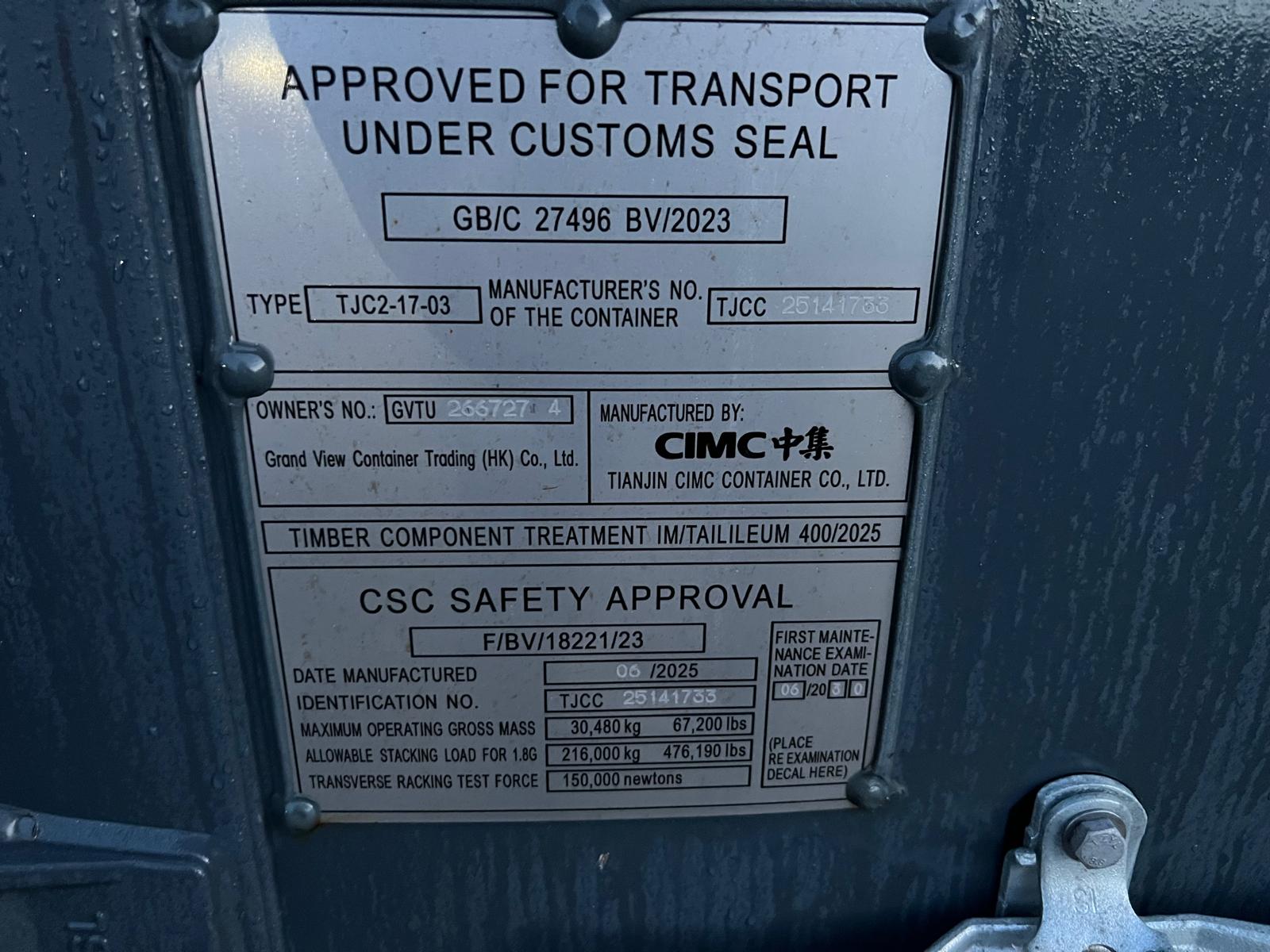 Indvendige lad mål: L 5870 x H 2400 x B 2335 mm - lys mål 2290 mm - udvendig ca. mål: L 6060 x H 2590 x B 2438 mm