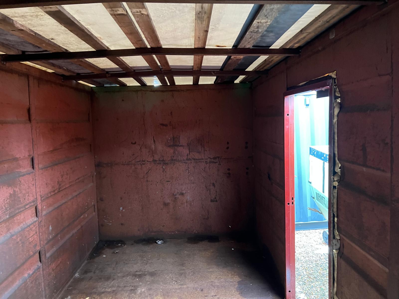 Bagdøre er afmonteret og der er laver en fast bagende 1200 mm inde i kasse - fast afstiveret tvær stål stivere + presennings tag - sidedør H 2000 x B 950 mm fremstillet 1600 mm fra forenden