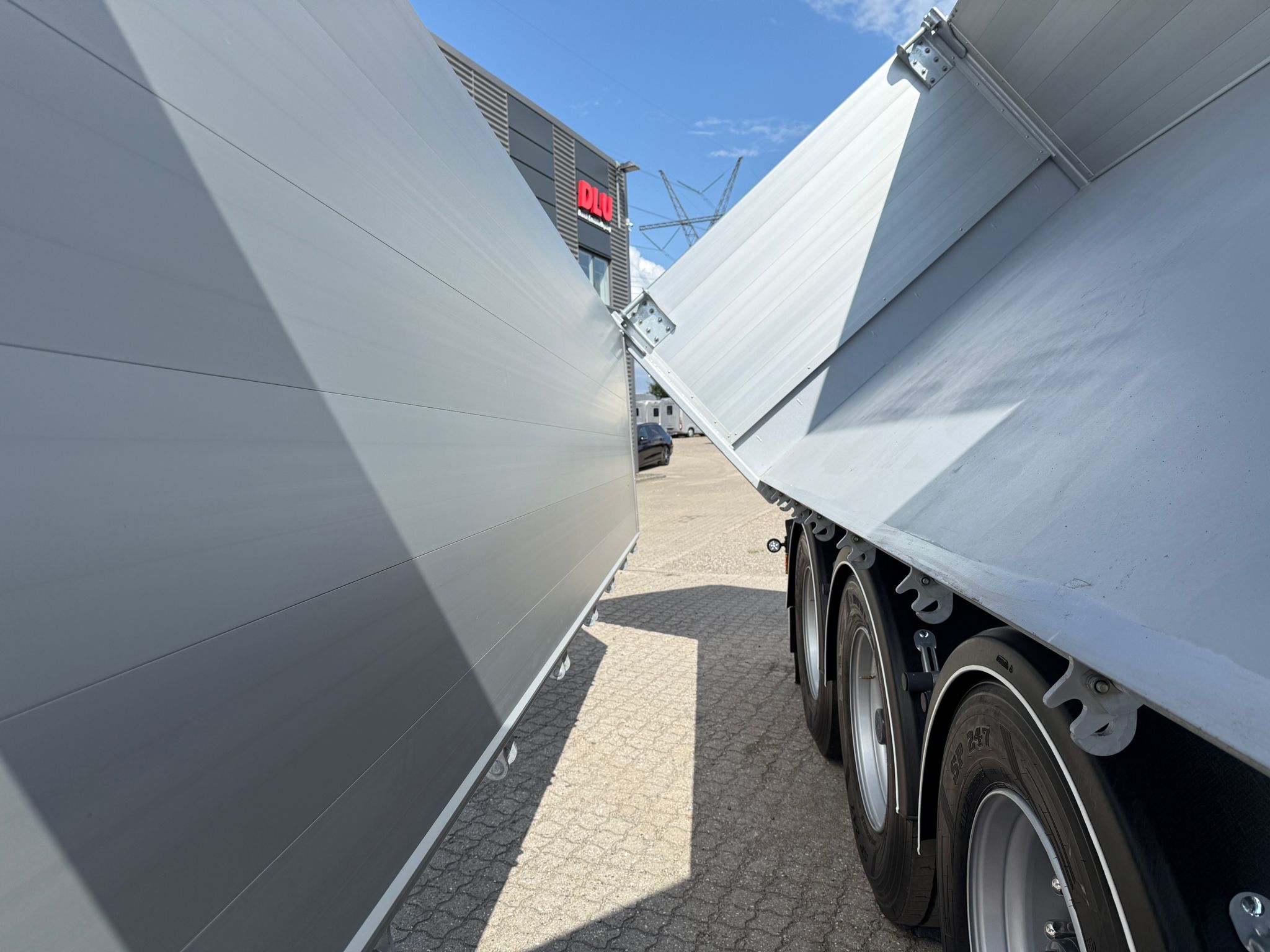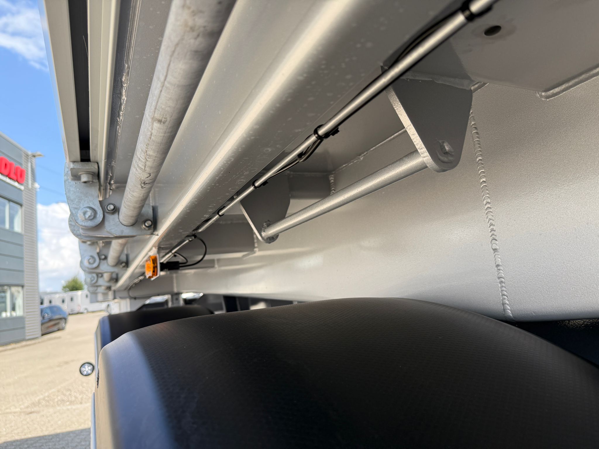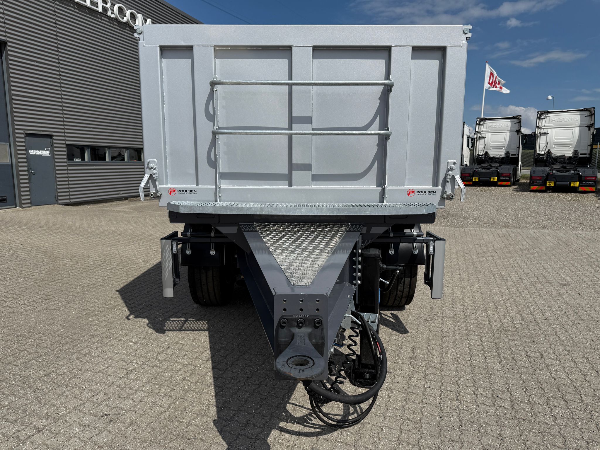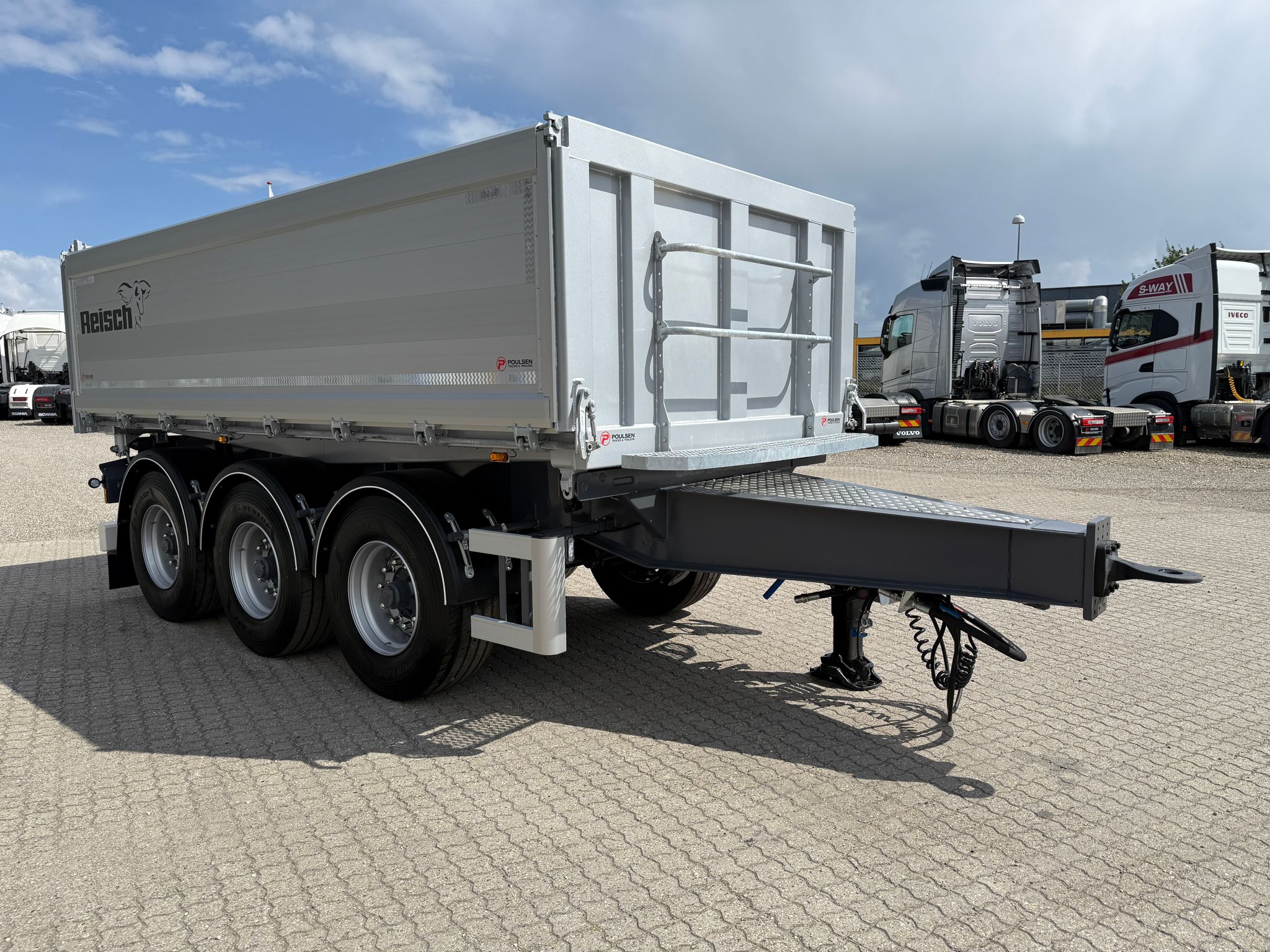 Denne REISCH 15m3 3-vejs metalliseret tipkærre, er udstyret med en kraftig 5 mm Hardox 500 TUF bund, som sikrer en robust og langtidsholdbar løsning.