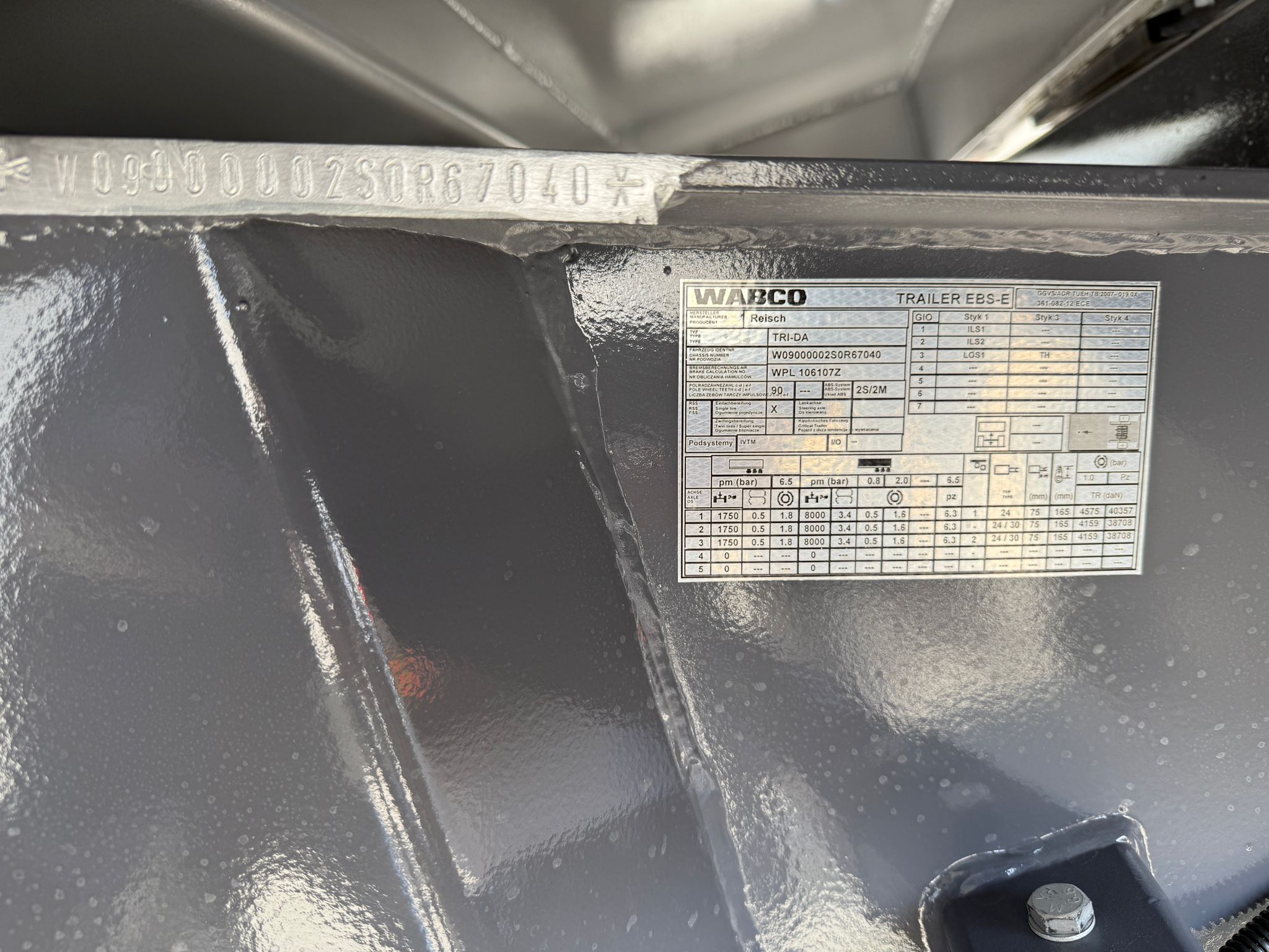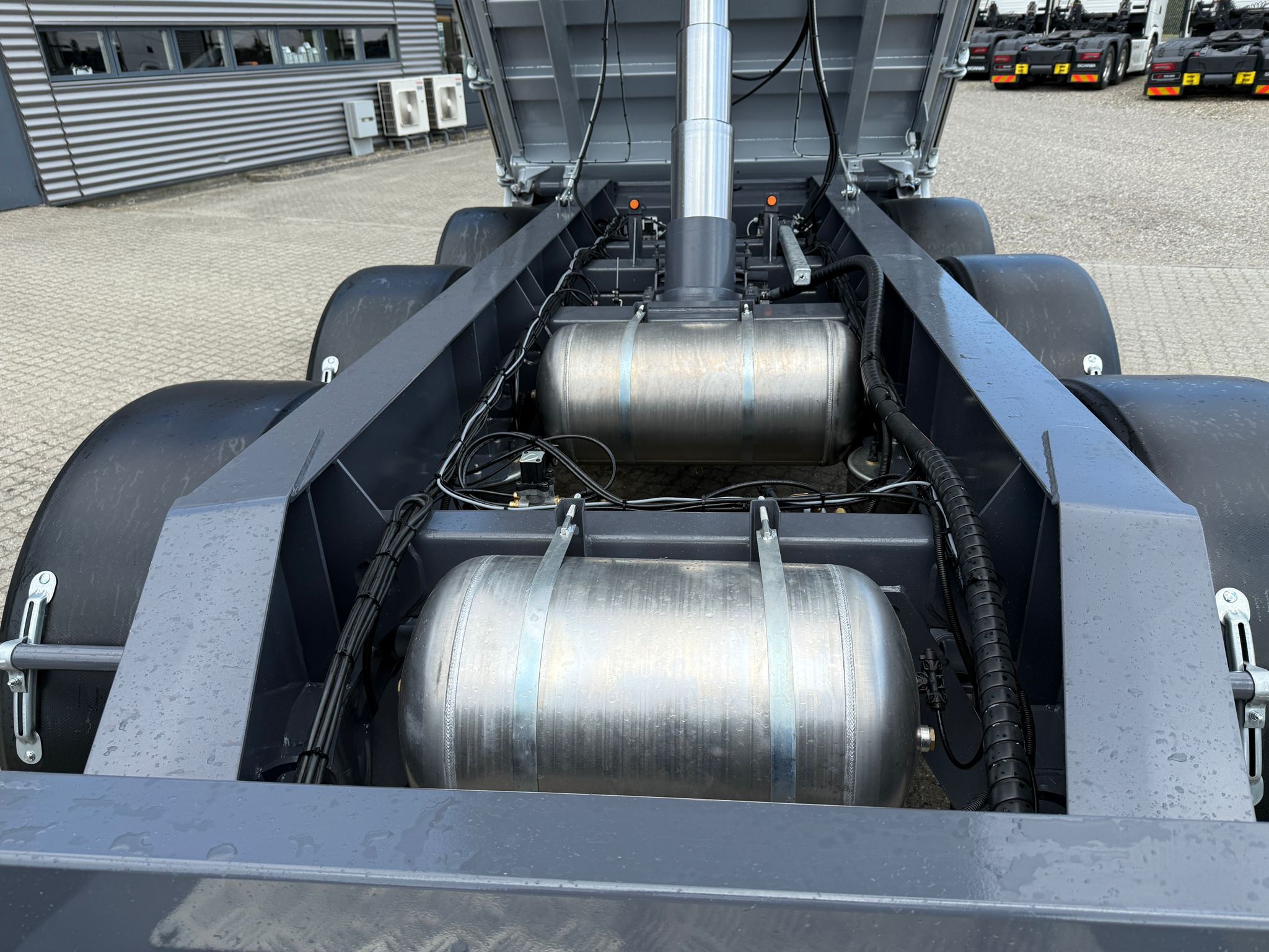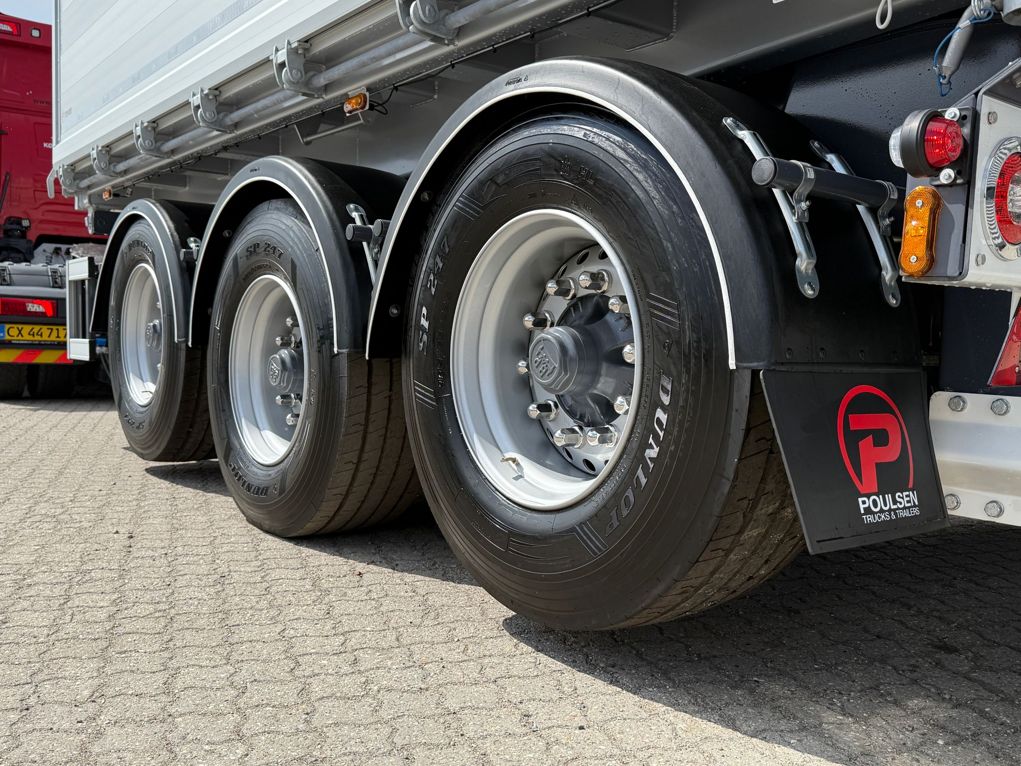 Dækkene er af størrelsen 385/65 R22,5" og monteret på stålfælge.