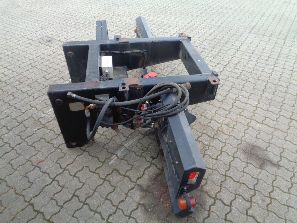 Aftagelig HMF 14,2 t/m krankonsol med VBG 760 57mm phv. - træk HMF underbygget træktravers med D værdi 190 kN - V - værdi 70 kN iht. HMF dokumentations skema - Mål: 770 mm fra center til center mellem vanger på gaffelbredde som går ind over kranophængs beslag - 50 mm ophængs bolte - 475 mm fra nederste bolt til øverste blot - 1250 mm langt - baglygter