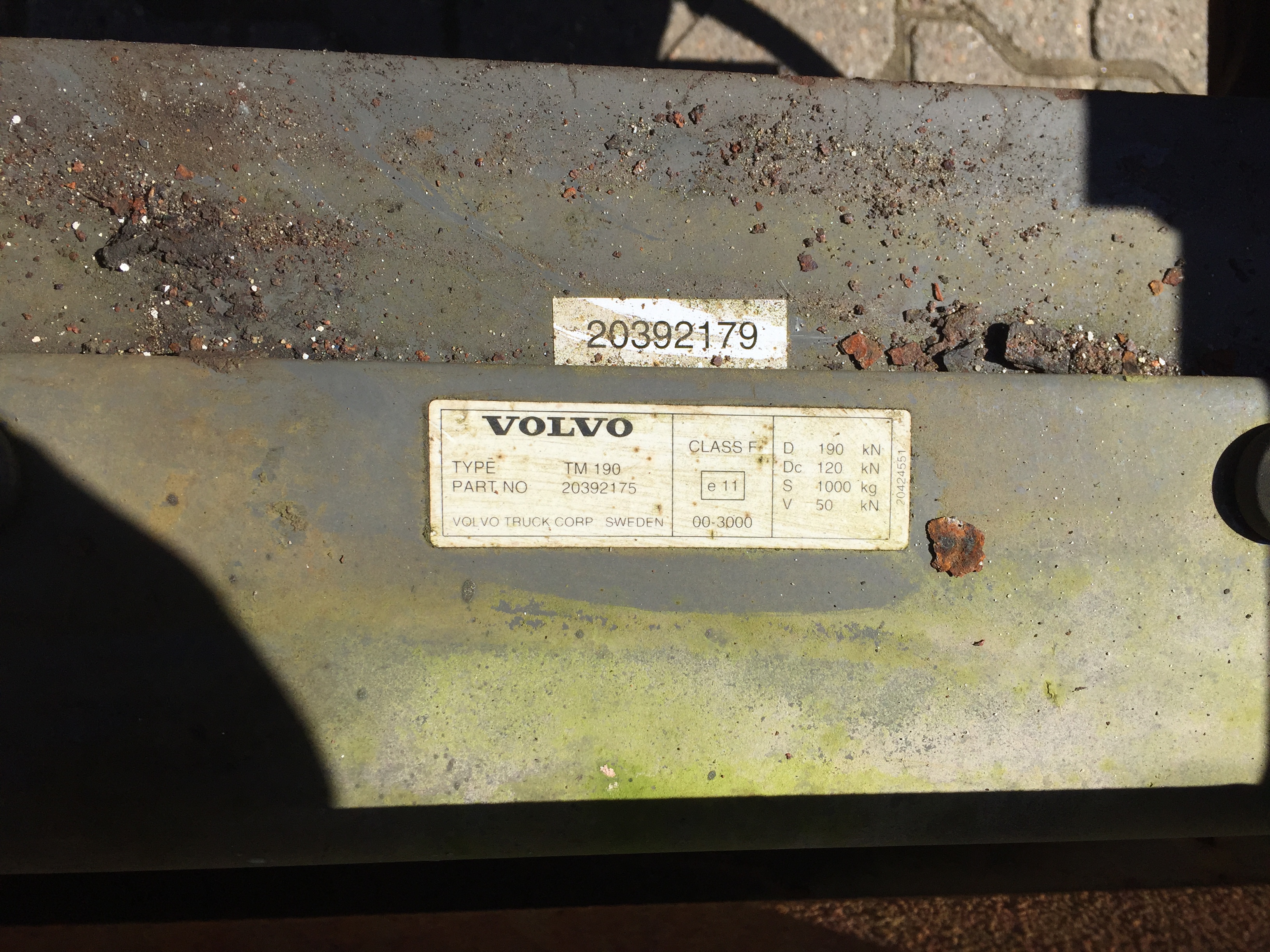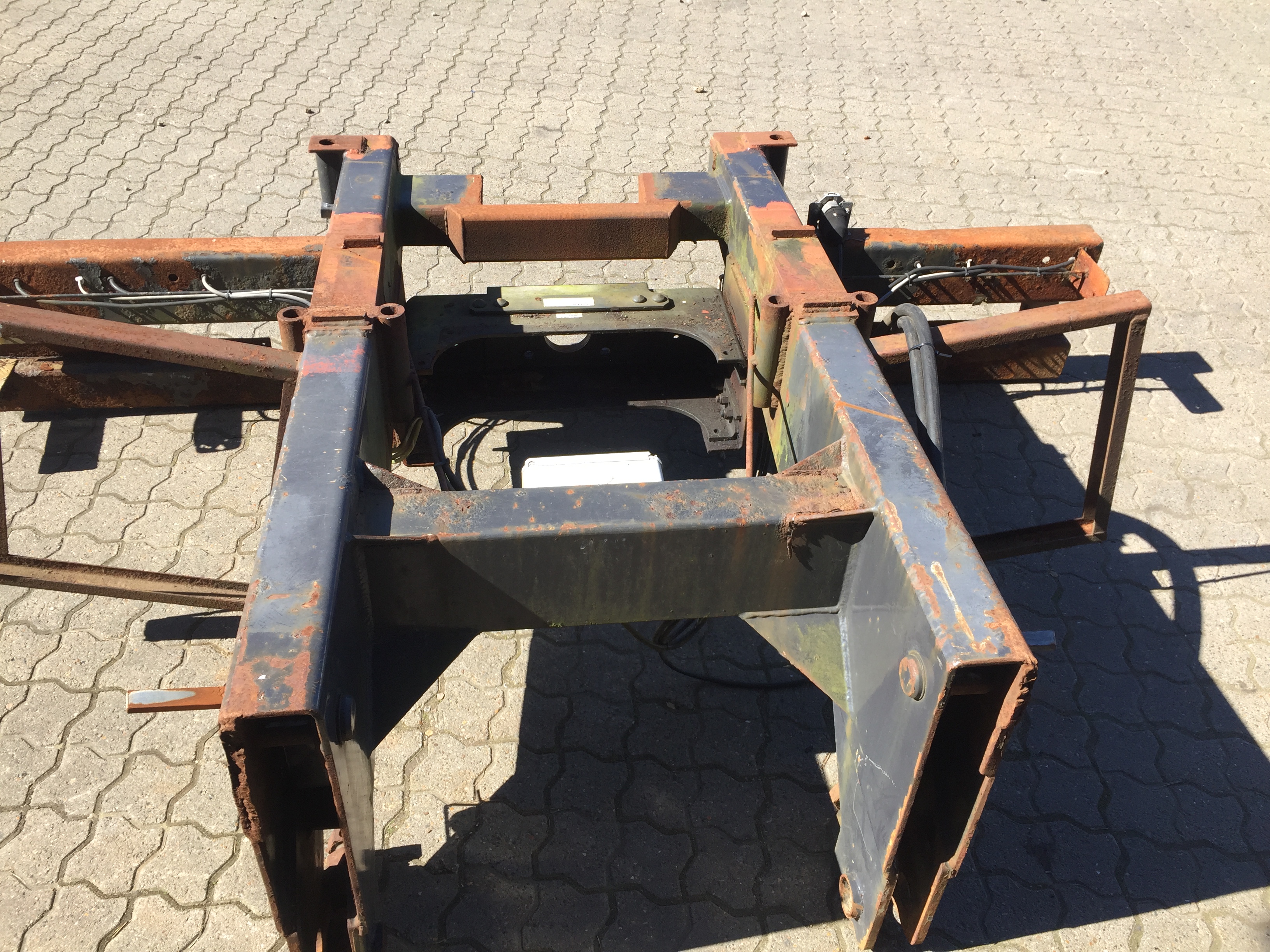 Aftagelig HMF 14 t/m krankonsol med Volvo træktravers med D værdi - 190kN - V -værdi 50kN - lys, luft og trukket med bagud - støttebens pladeophæng i begge sider - Mål: 770 mm fra center til center mellem vanger - gaffelbredde 600mm som går ind over kranophængs beslag - 50 mm ophængs bolte - 475mm fra nederste bolt til øverste - 1500 mm langt.