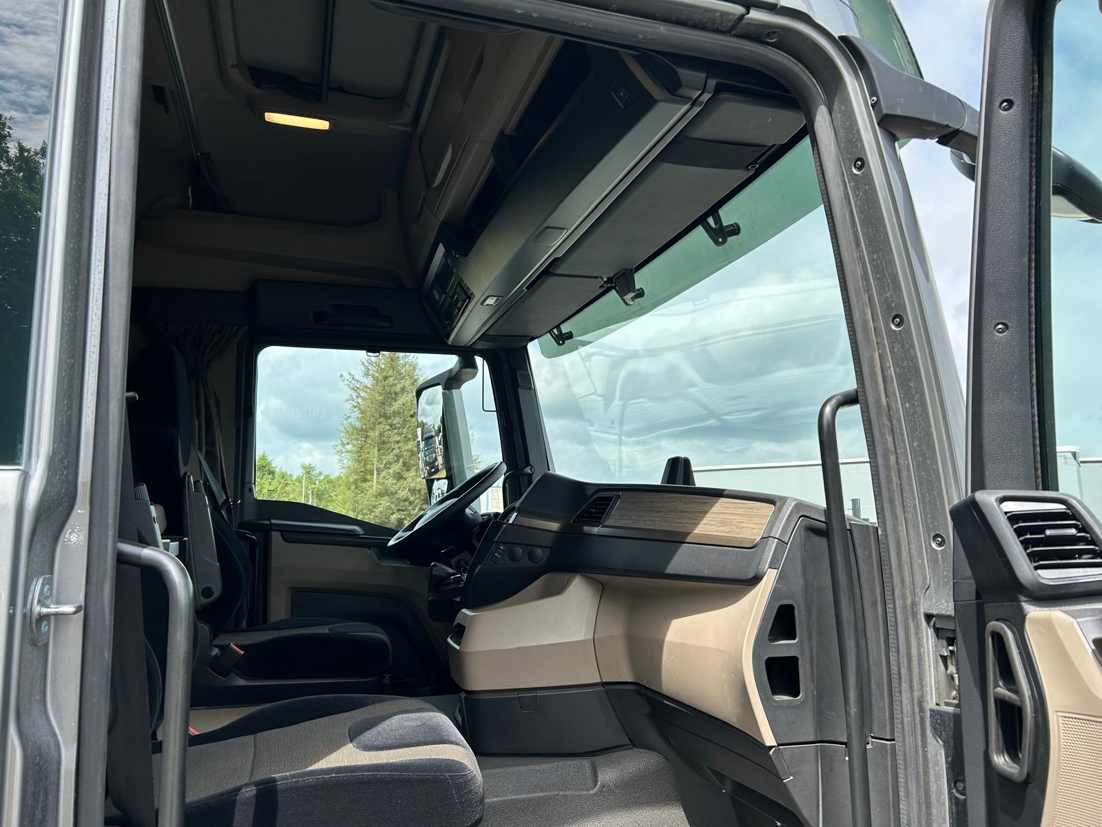 Sovekabine førerhus med højt tag - luft affjedret førerhus - 1 køje - klima anlæg - oliefyr - overskabe på bagvæg - køleskab under køjen  - inverter 24/220 volt - Bliz lys - bak kamera - 2 LED lygter i trinkasse + 2 stk. under førerhus i for + 2 stk. bag