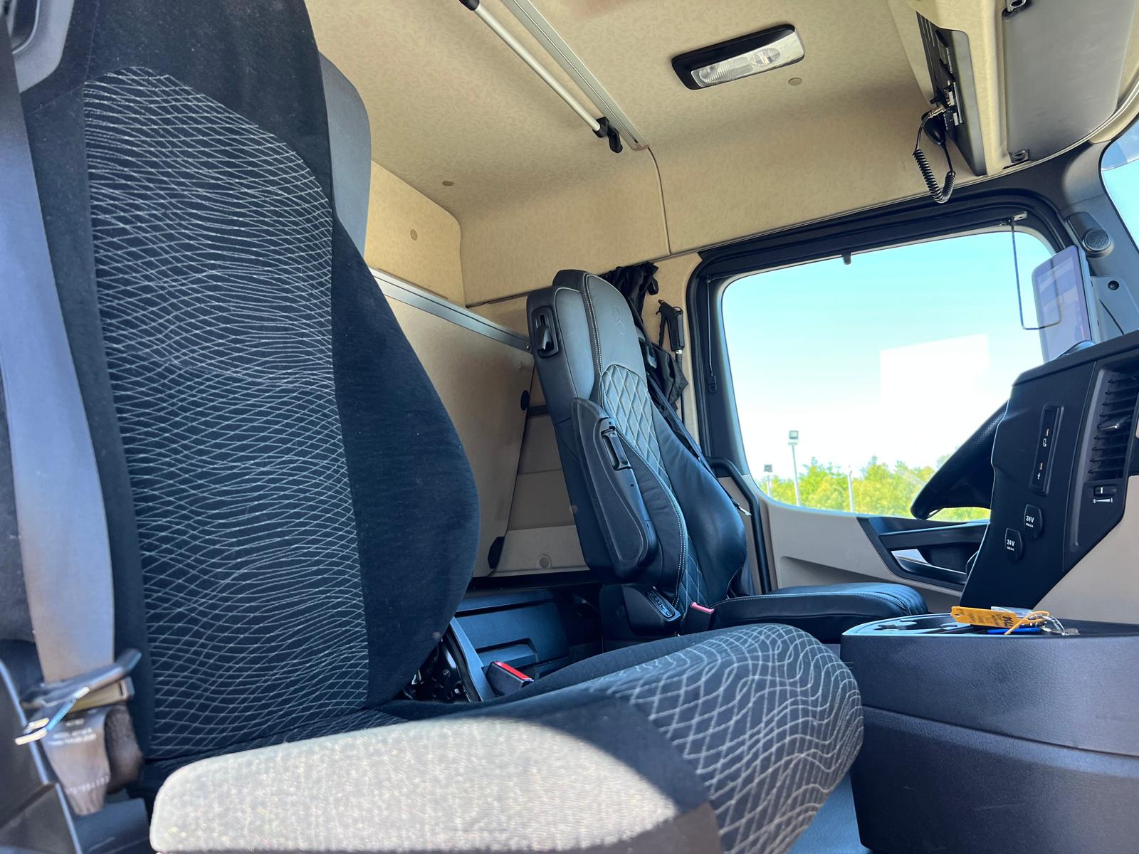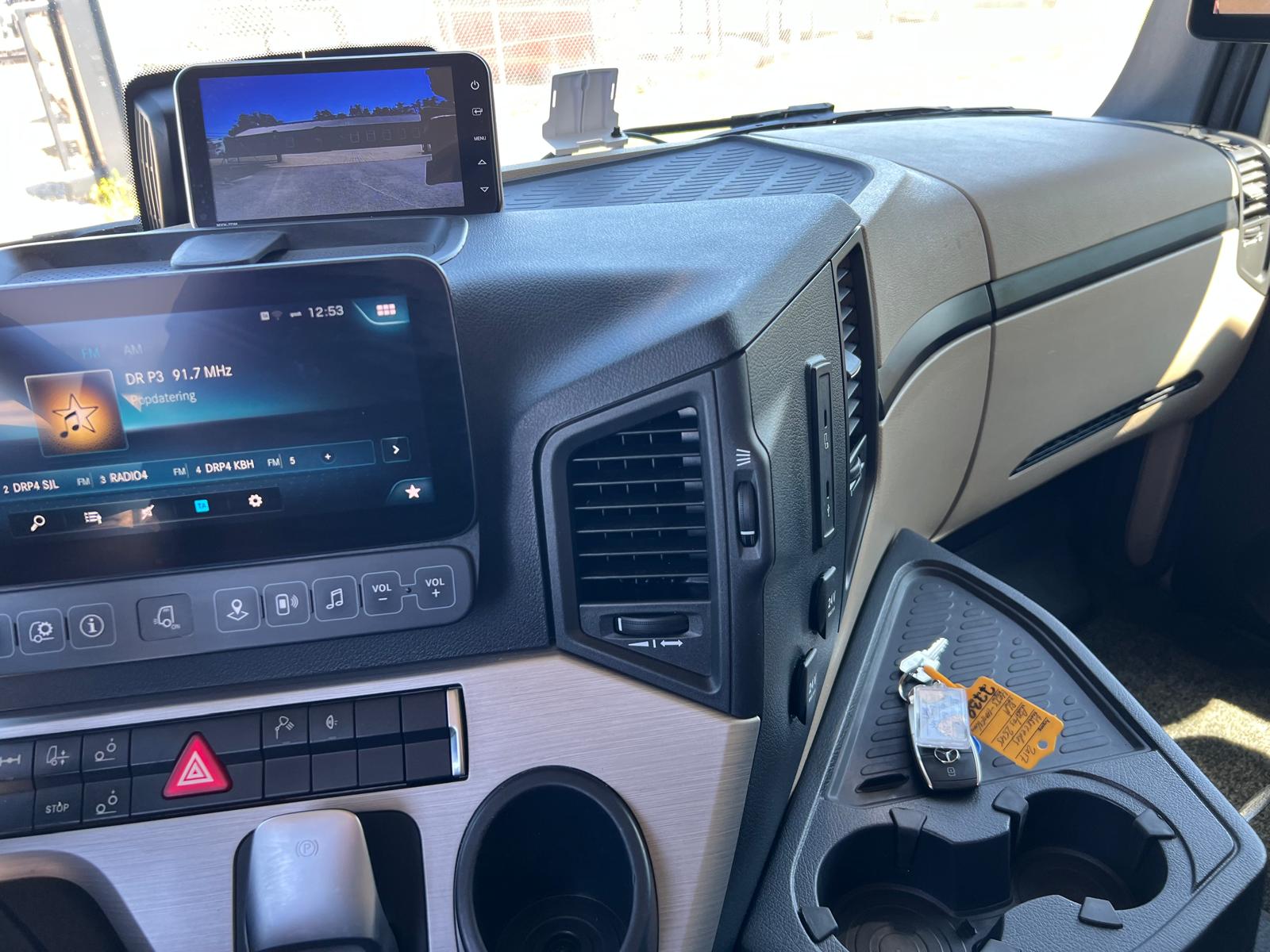 M-cab - 1 køje - luftaffjedret hyt - kabinevarmer - klimaanlæg - køleskab - walkie - radio - blizbom - bliz lamper - masser af arbejdes lys i trinkasse - bag kran + bagi  - bak kamera + læssekamera med skærm i hytten + BEMÆRK ny model med digitale spejlkamera - førerhus lakeret i beige med foliebelagt i RAL 5017