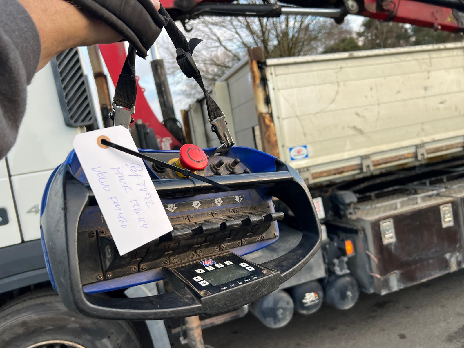 HMF 1320K kran med dobbelt rørføring til grab og drejemotor - slangeruller - radiostyring - lys på kranarm - rækkevidde 12,7 mtr. = 760 kg løfte kapacitet - 11,3 ton/meter løfte moment - kranen er år 2015