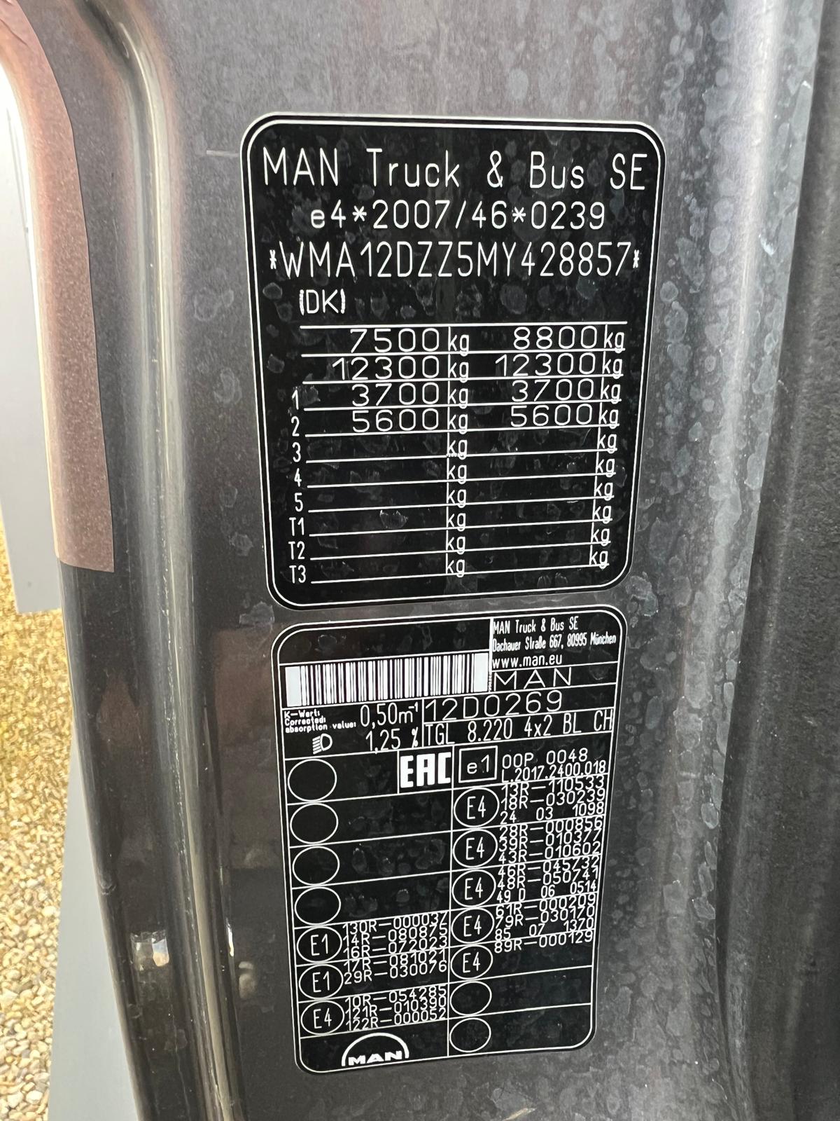 MAN TGL 8-220 4x2 BL incl. 2 stk veksellad