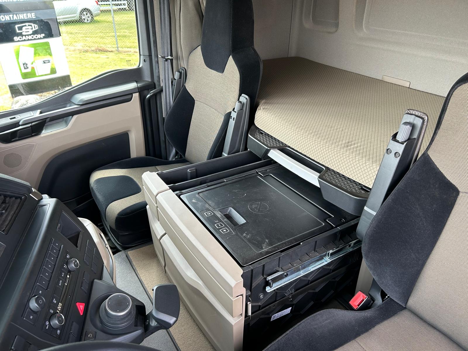 Sovekabine førerhus med højt tag - luft affjedret førerhus - 1 køje - klima anlæg - oliefyr - overskabe på bagvæg - køleskab under køjen - inverter 24/220 volt - Bliz lys - bak kamera - 2 LED lygter i trinkasse + 2 stk. under førerhus i for + 2 stk. bag