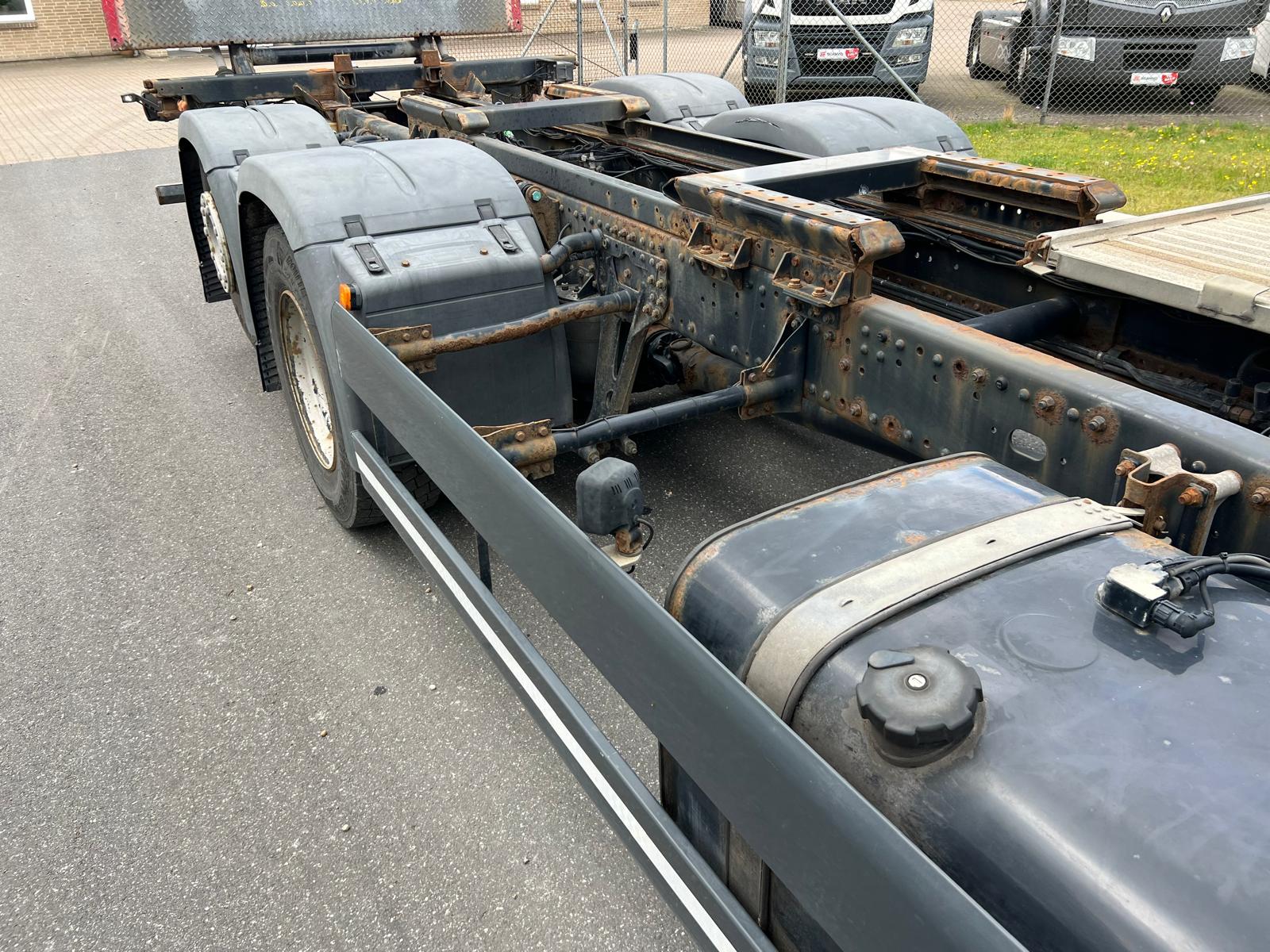 7450 mm veksellads ramme med containerlåse 800 mm til forrest stop + 5850 mm imellem låse + 800 mm til bagkant chassis
