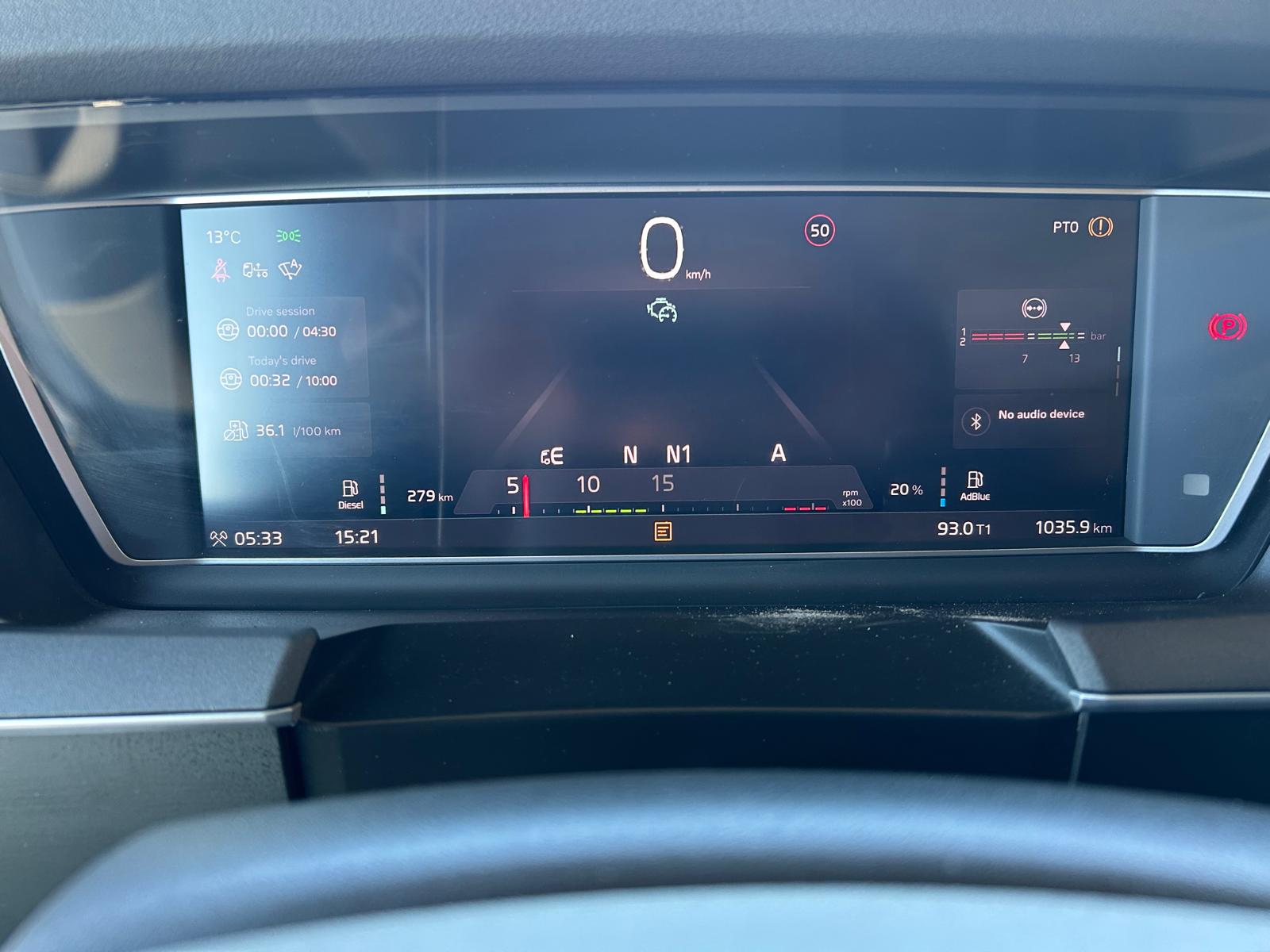 I-shift aut gear shift - 4300 mm aksel afstand - fuld luftaffjedring - 10.000 kg foraksel = 34.000 kg totalvægt på forvognen - Alcoa poleret alu fælge - VDS dynamic steering - hydraulisk styr/løftbar bogieaksel - 490 ltr dieseltank + 64 ltr ADblue tank
