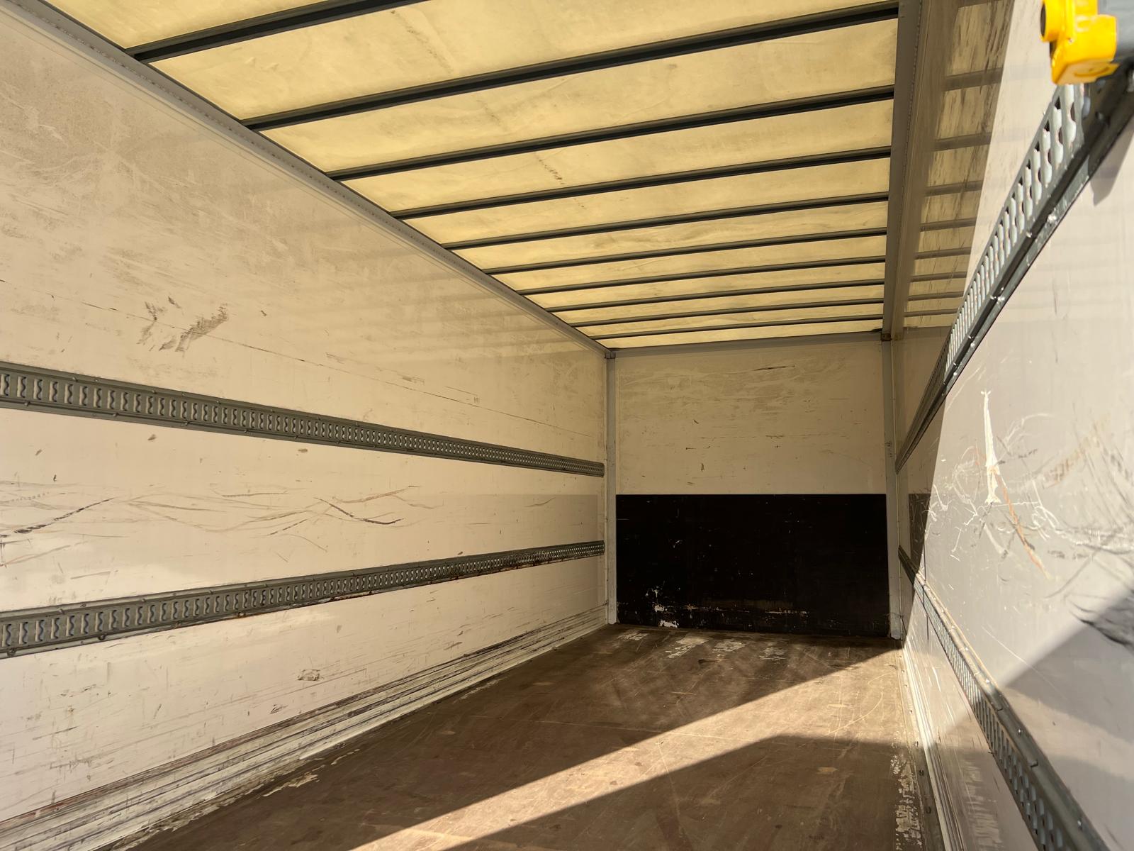 - 2 binderækker - 2 x 13 stk. nedfældet surrings ringe i lad kant -- rumindhold 44 m3 - LED lysbånd i begge sider langs taget