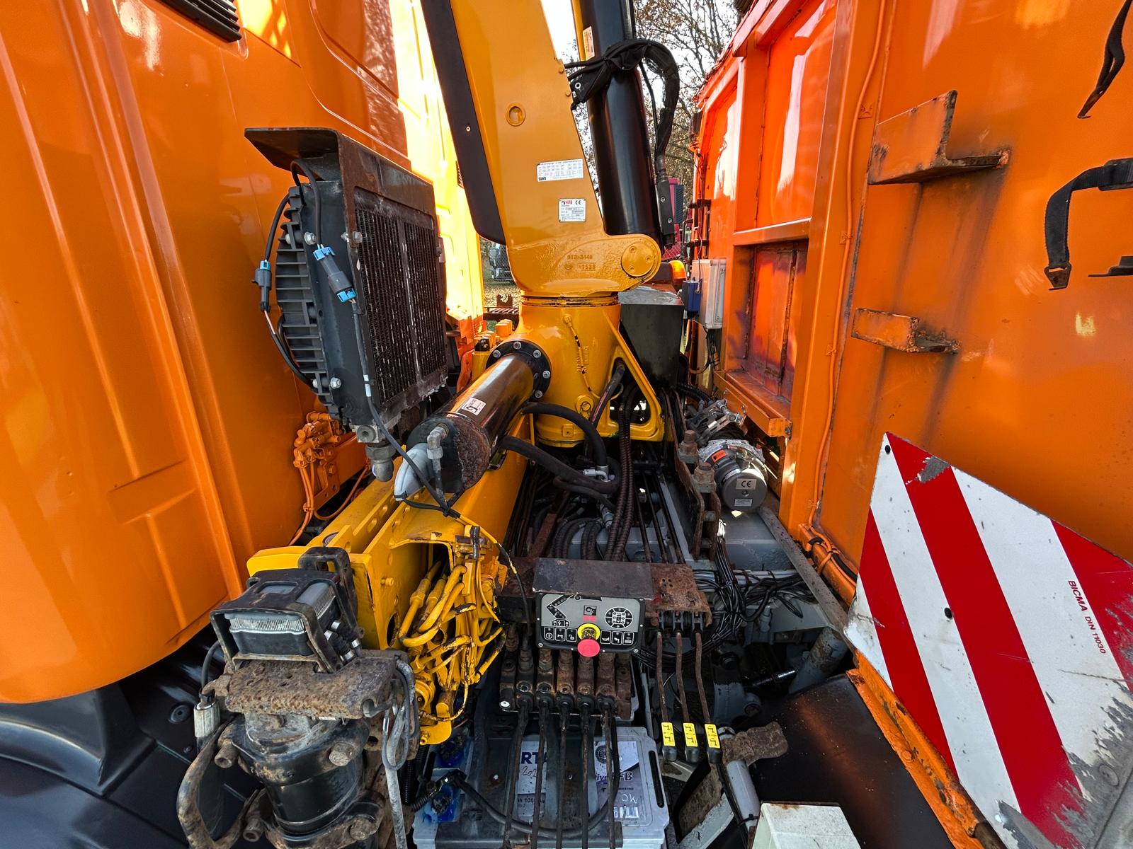 Hiab X-HiDuo 188E3 kran - radiostyring og dobbelt rørføring - 3 hydrauliske udskud rækkevidde 10,4 mtr. = løft ca 1.360 kg - fjernbetjening - lys på kran arm - krog kran